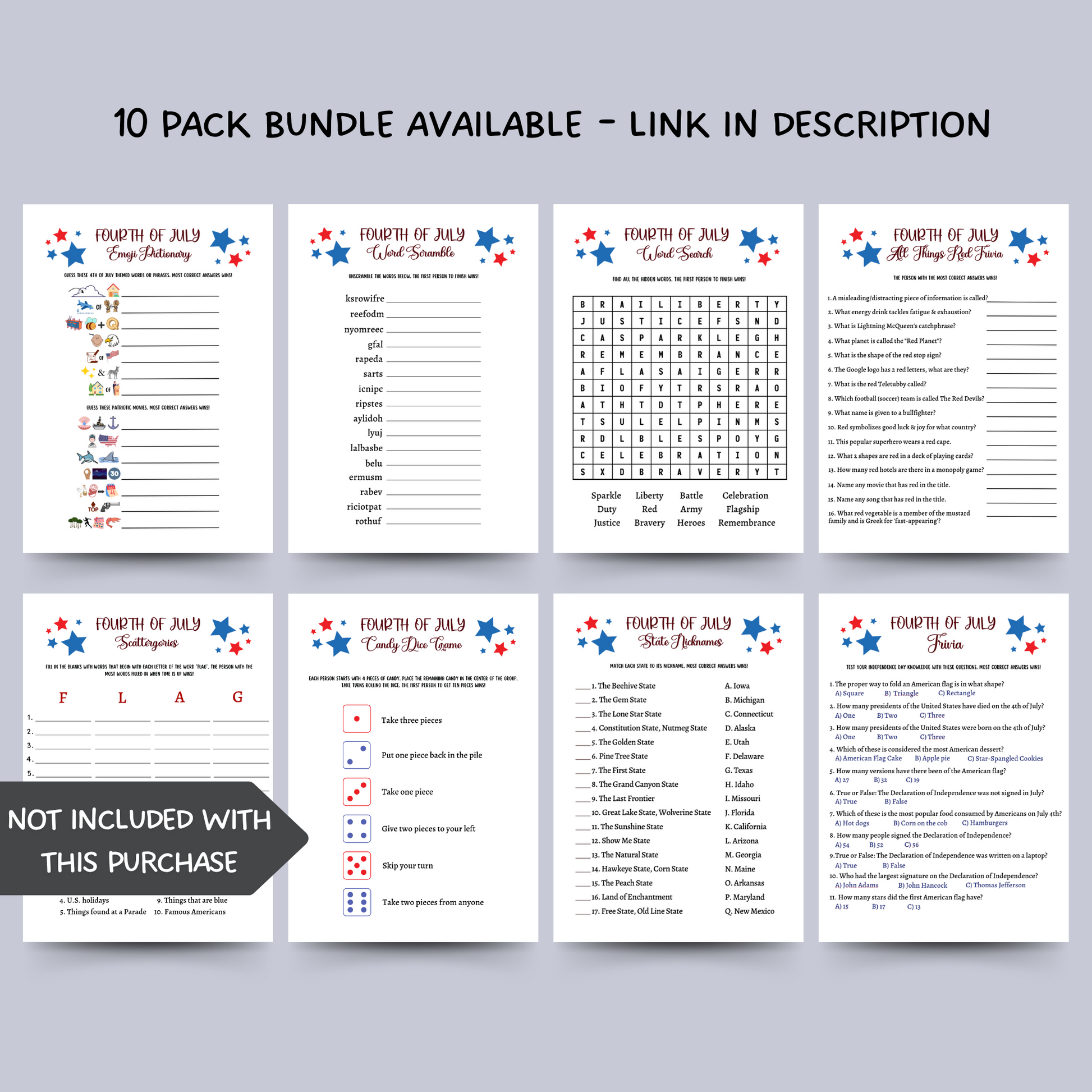 ⭐️ 10-Pack 4th of July Games Bundle: