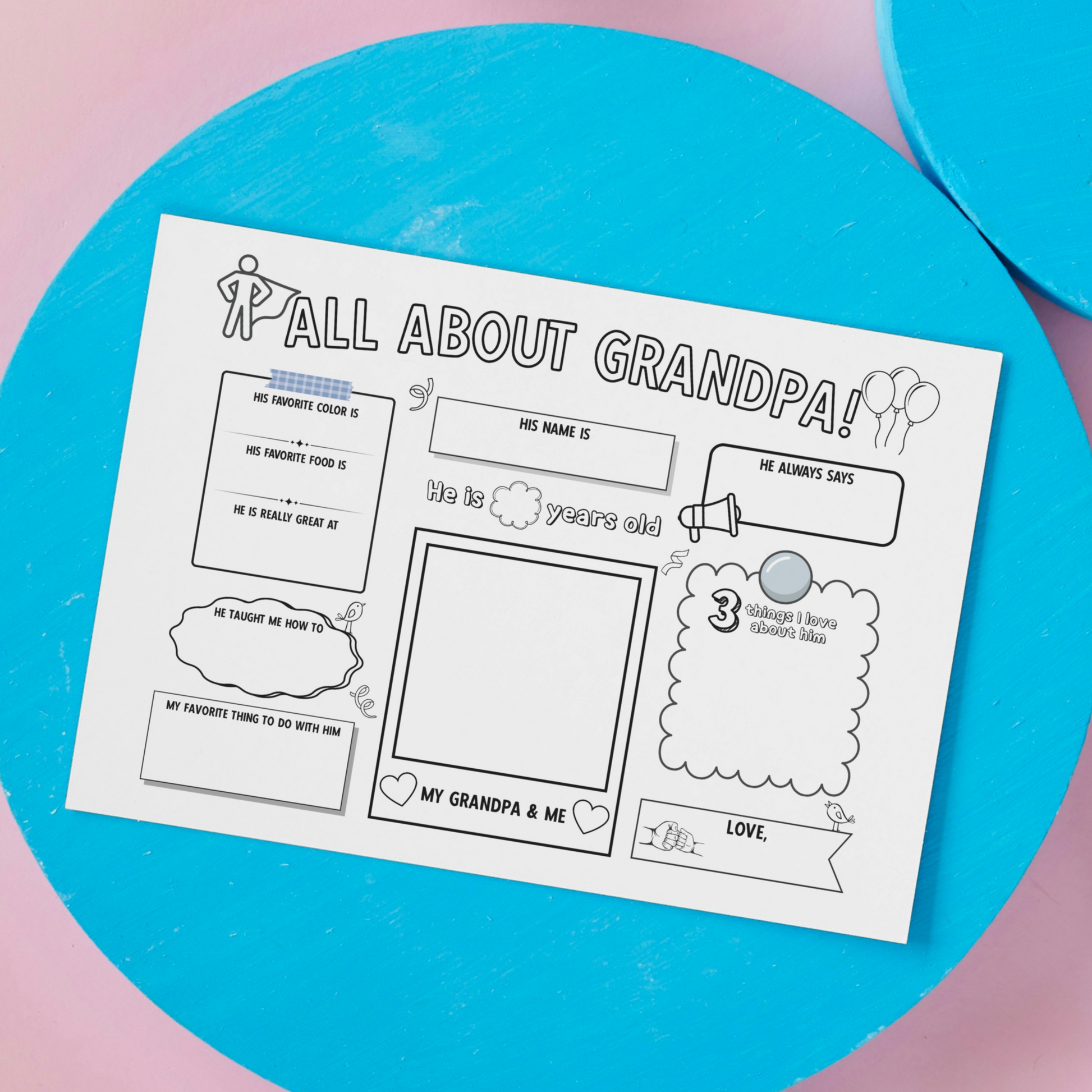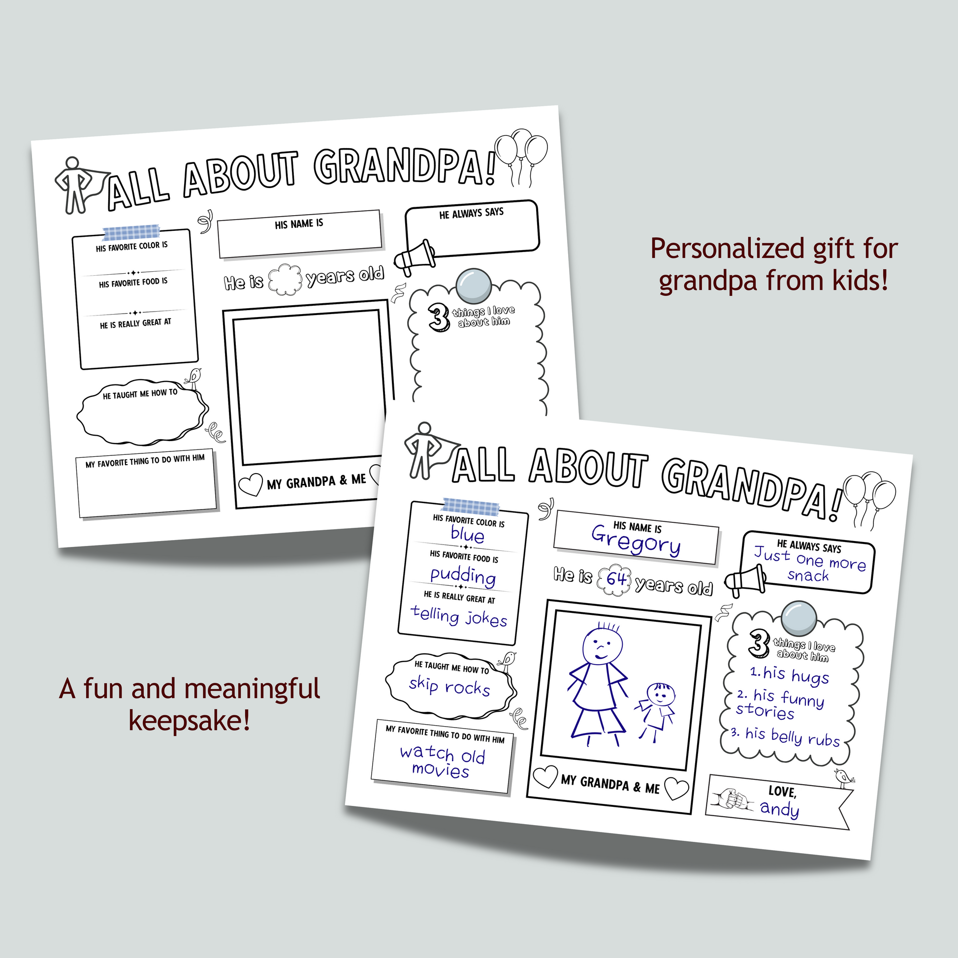 All about my grandpa printable, grandfather questionnaire gift, Father’s Day card from grandkids, printable grandpa keepsake, Grandparents Day craft idea, grandpa birthday card from kids, preschool printable for grandpa, instant download gift for grandpa, coloring page for grandpa, custom card from grandkids