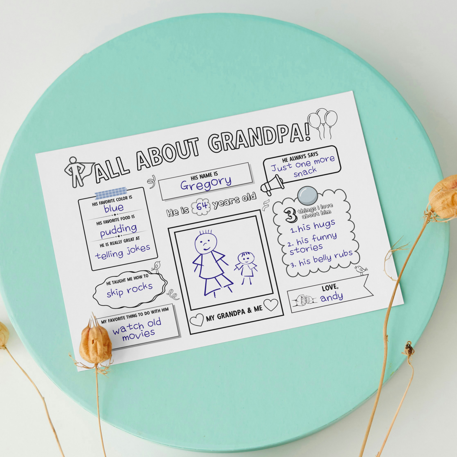 All About My Grandpa Printable Survey – Father’s Day Gift from Grandkids | Questionnaire Card | Printable Coloring Page Keepsake for Grandfather 💌