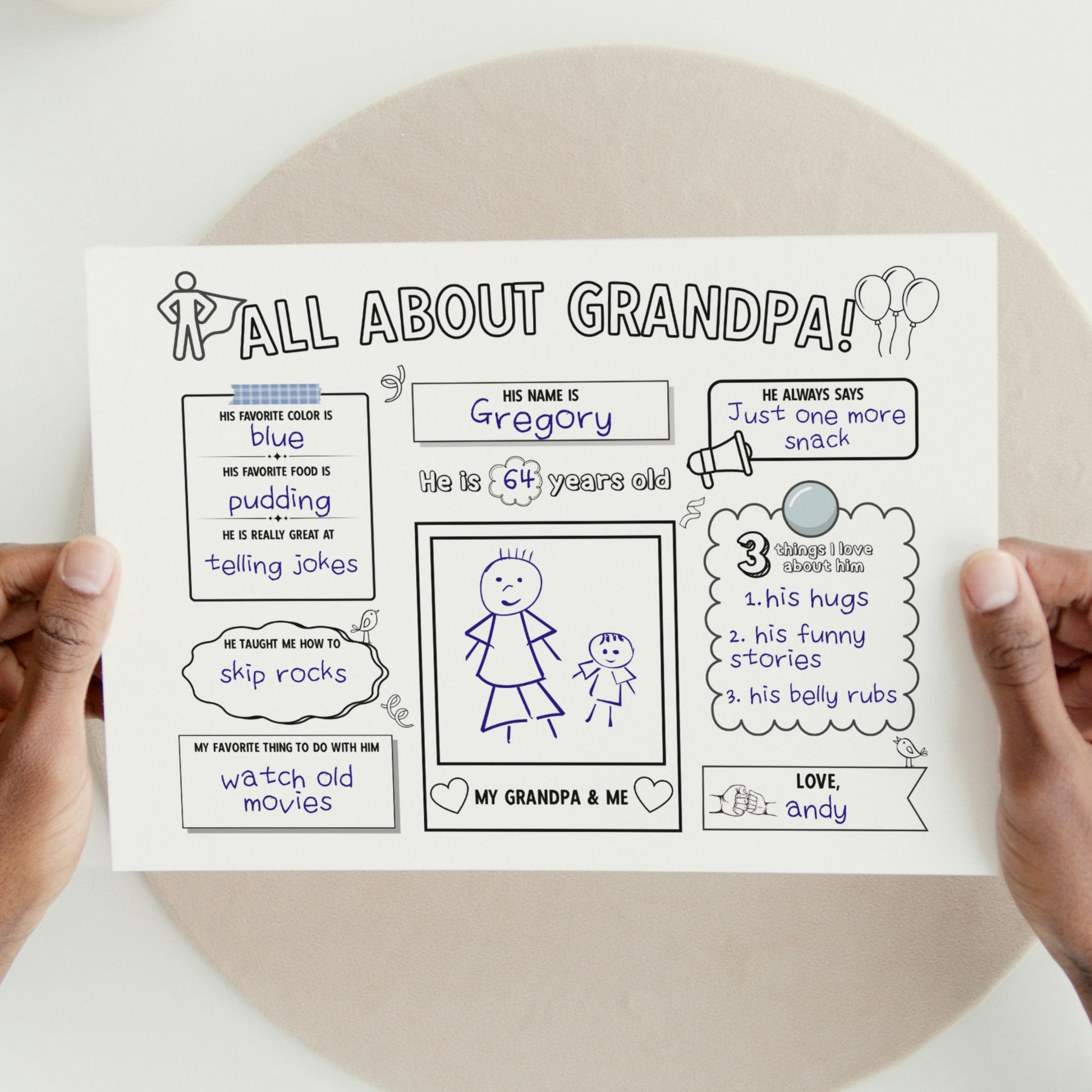 All About Grandpa Survey Printable, Grandparents Day Card Questionnaire Gift from Kids