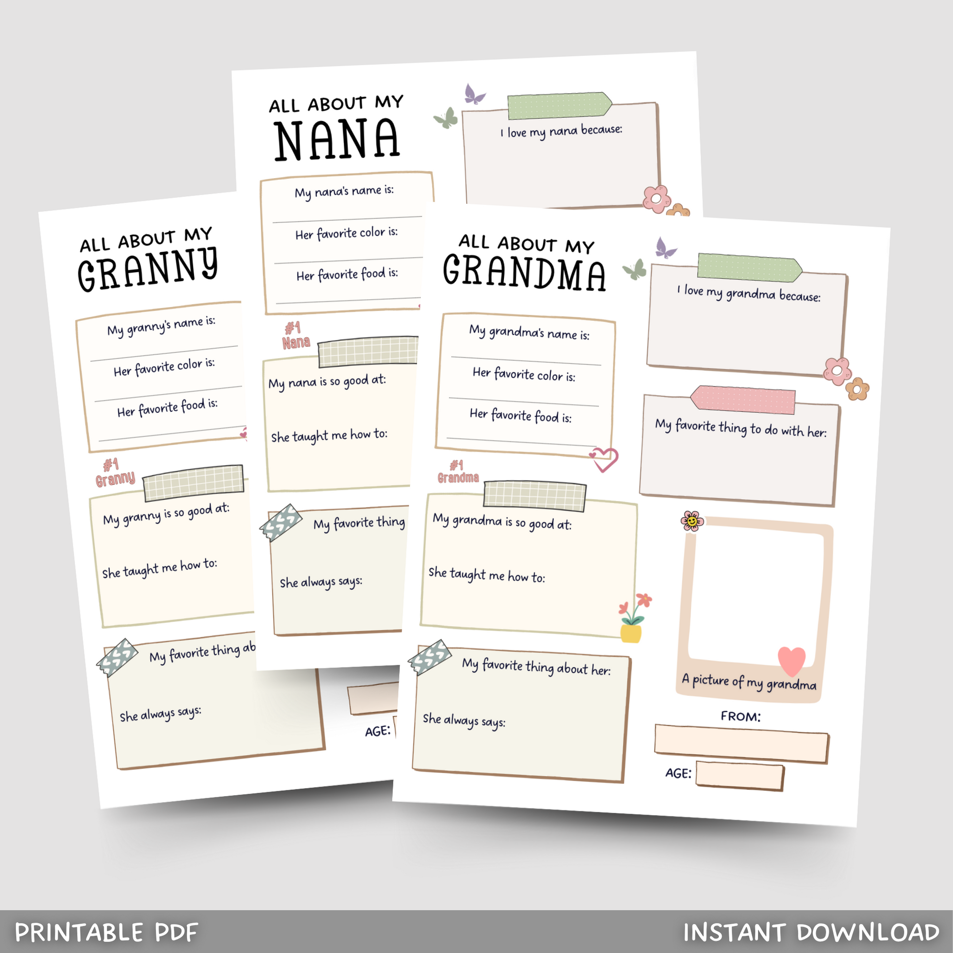 ✨ This All About Grandma Grandparent's Day survey/ questionnaire is a printable PDF and an instant digital download! It is the perfect personalized gift for your Granny and a beautiful keepsake! Just download, print, and fill in to show her how much she is appreciated! ✨