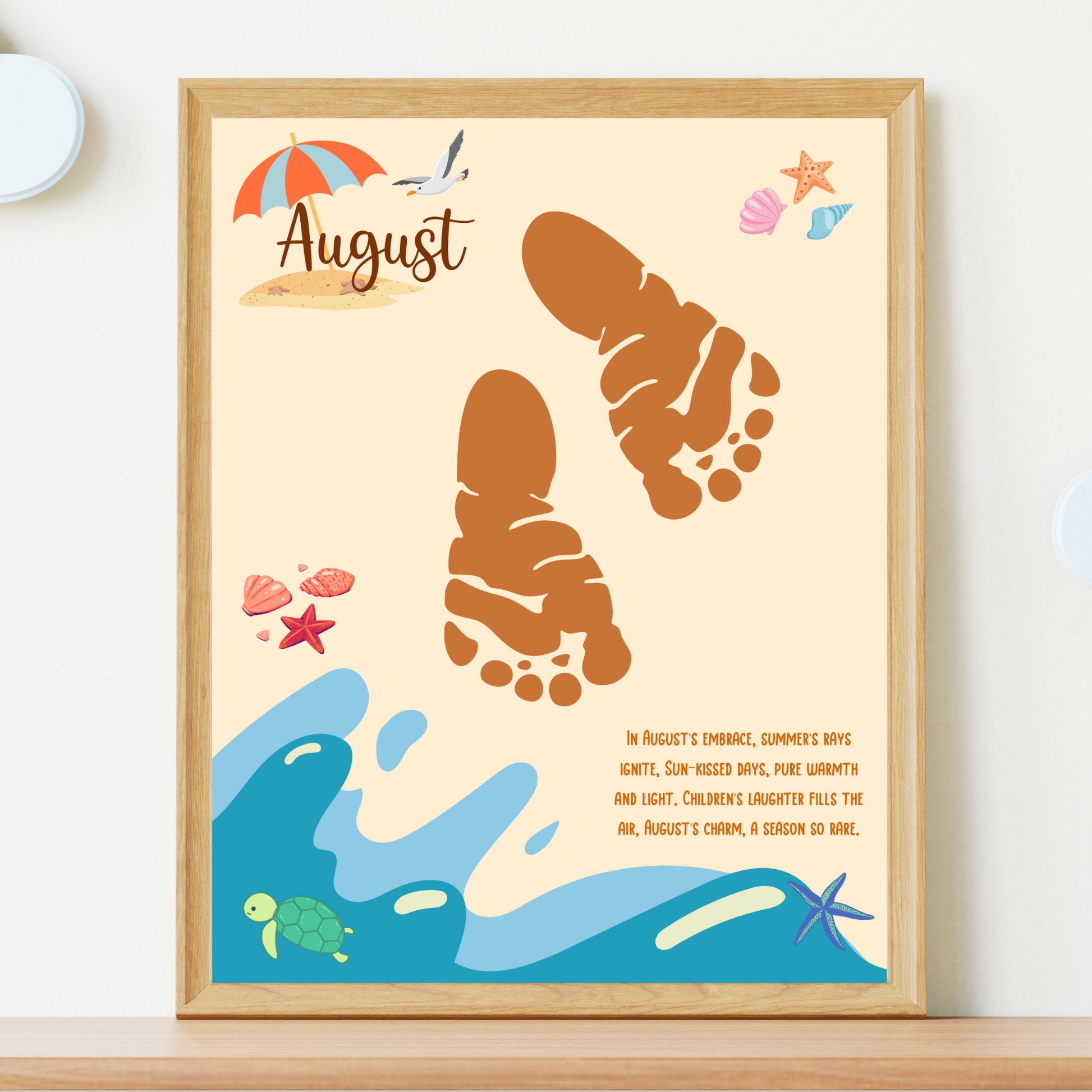 Celebrate your child’s growth and creativity with this adorable August handprint/footprint craft printable! Perfect for babies, toddlers, preschool, pre-k and kindergarten kids, this easy-to-use activity captures the magic of childhood while keeping little ones entertained. A wonderful keepsake to treasure forever, this craft is ideal for framing, gifting, or displaying at home or in the office. Just download, print, apply non-toxic washable paint to the child's hand/foot, and start creating memories! 💖