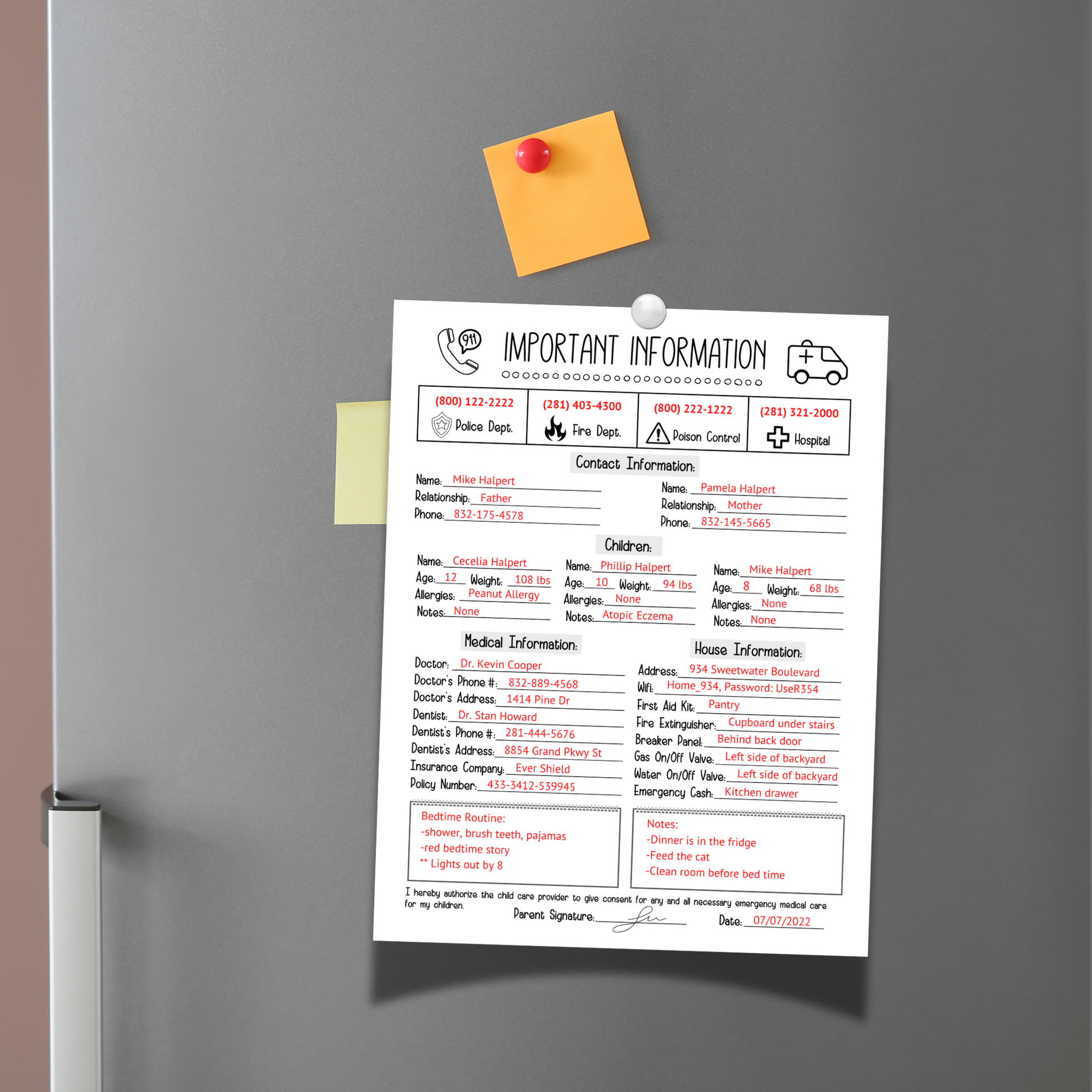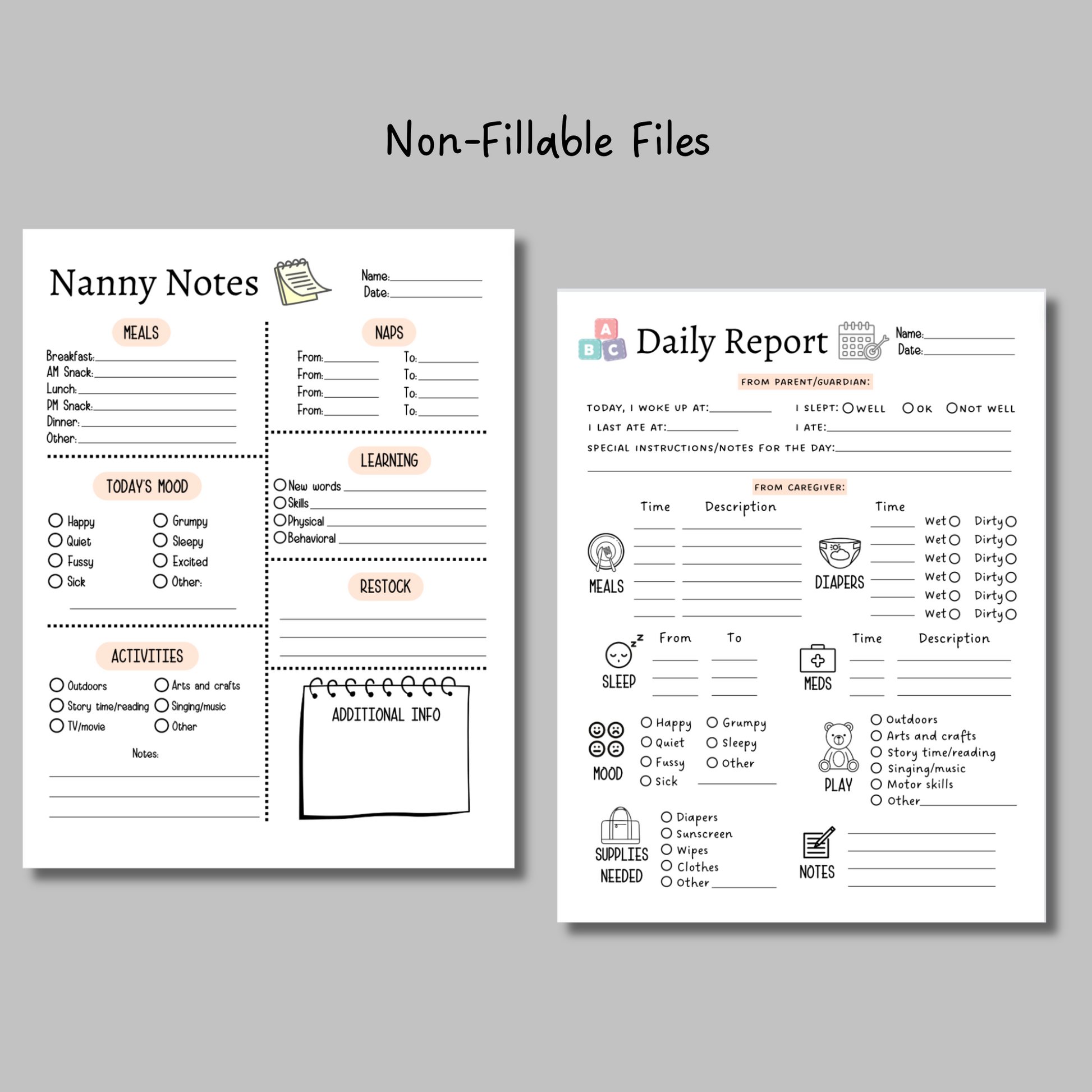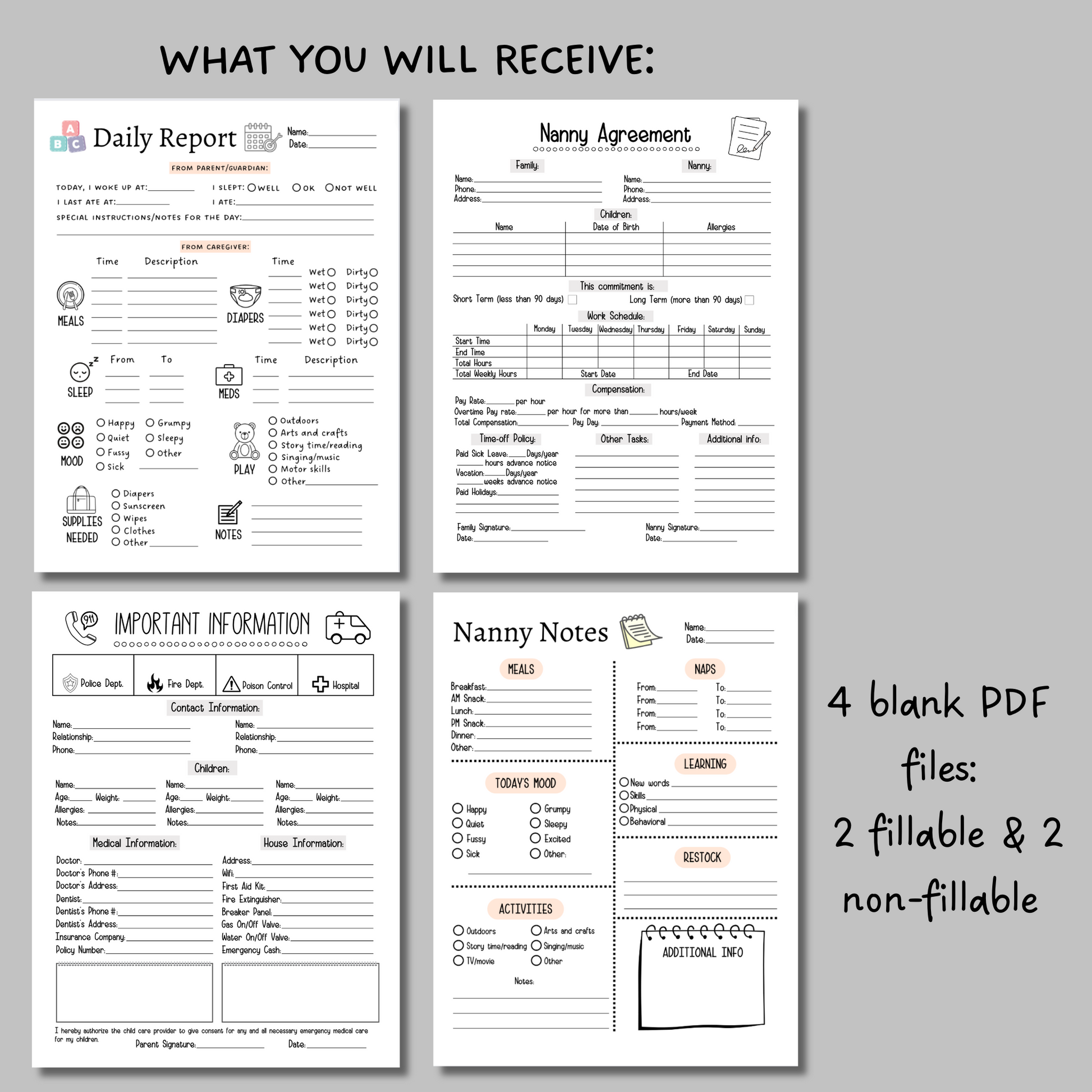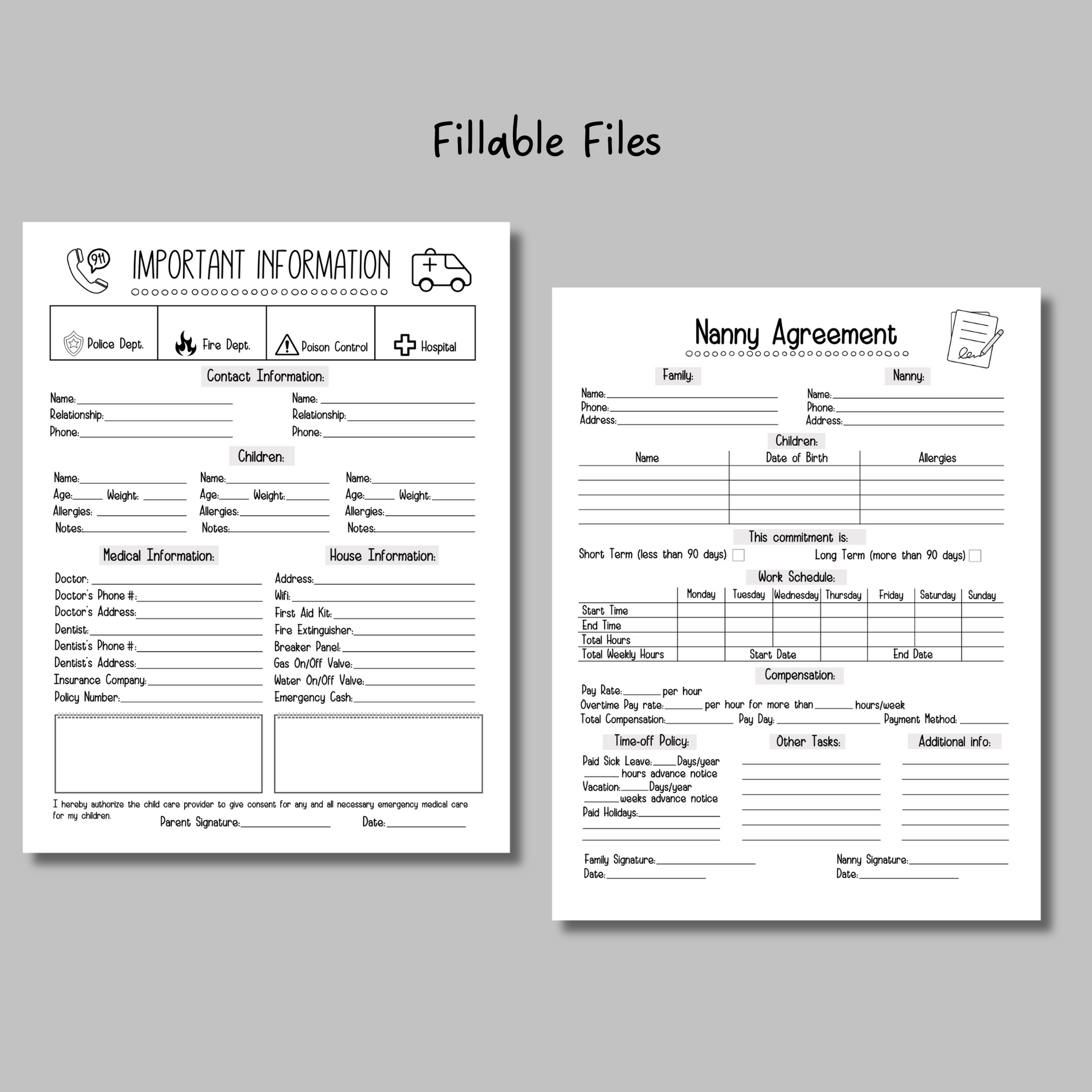 This babysitter planner bundle is a printable PDF and an instant digital download! It includes everything you need to communicate with your child's caregiver. 2 files are fillable, 2 are non-fillable and cannot be edited.