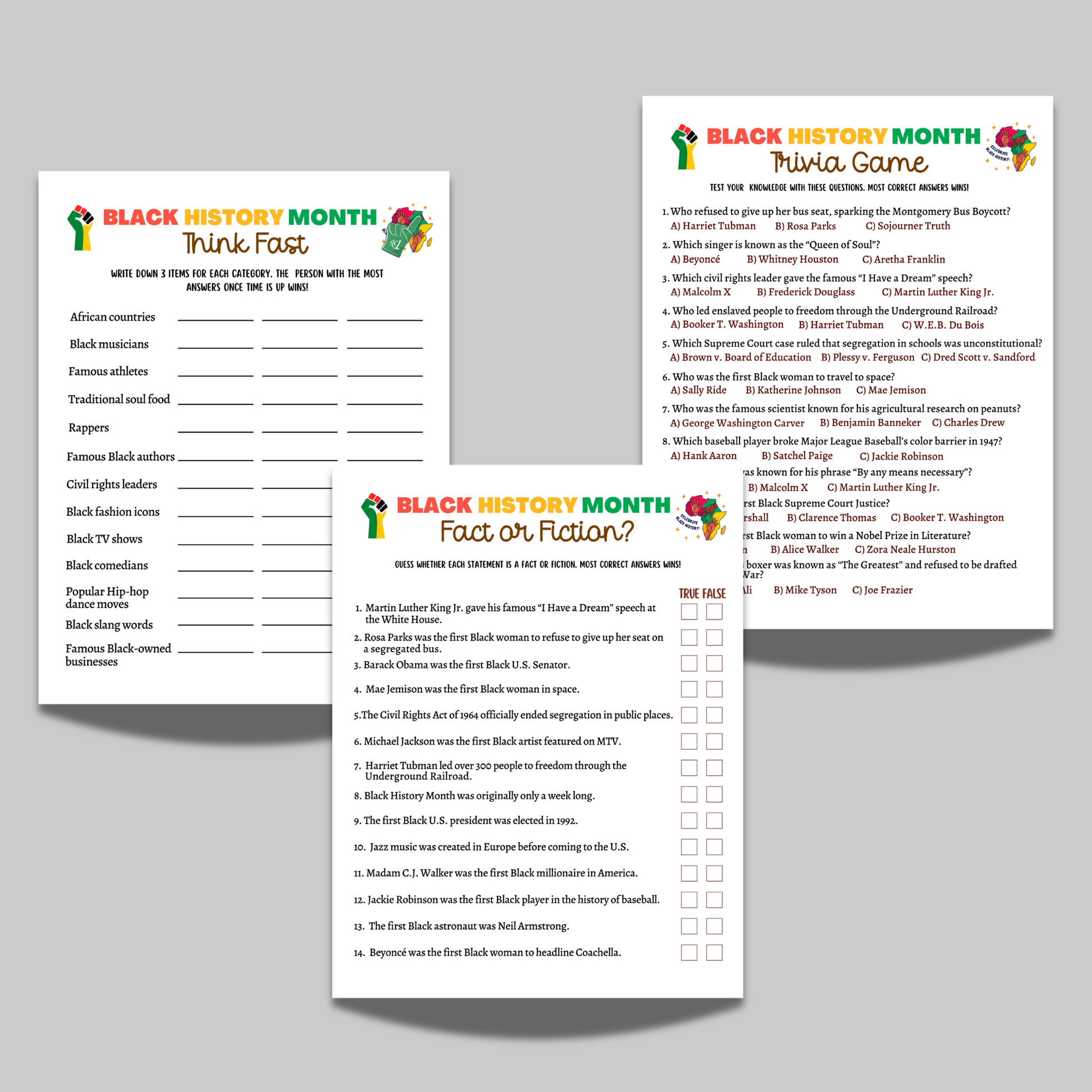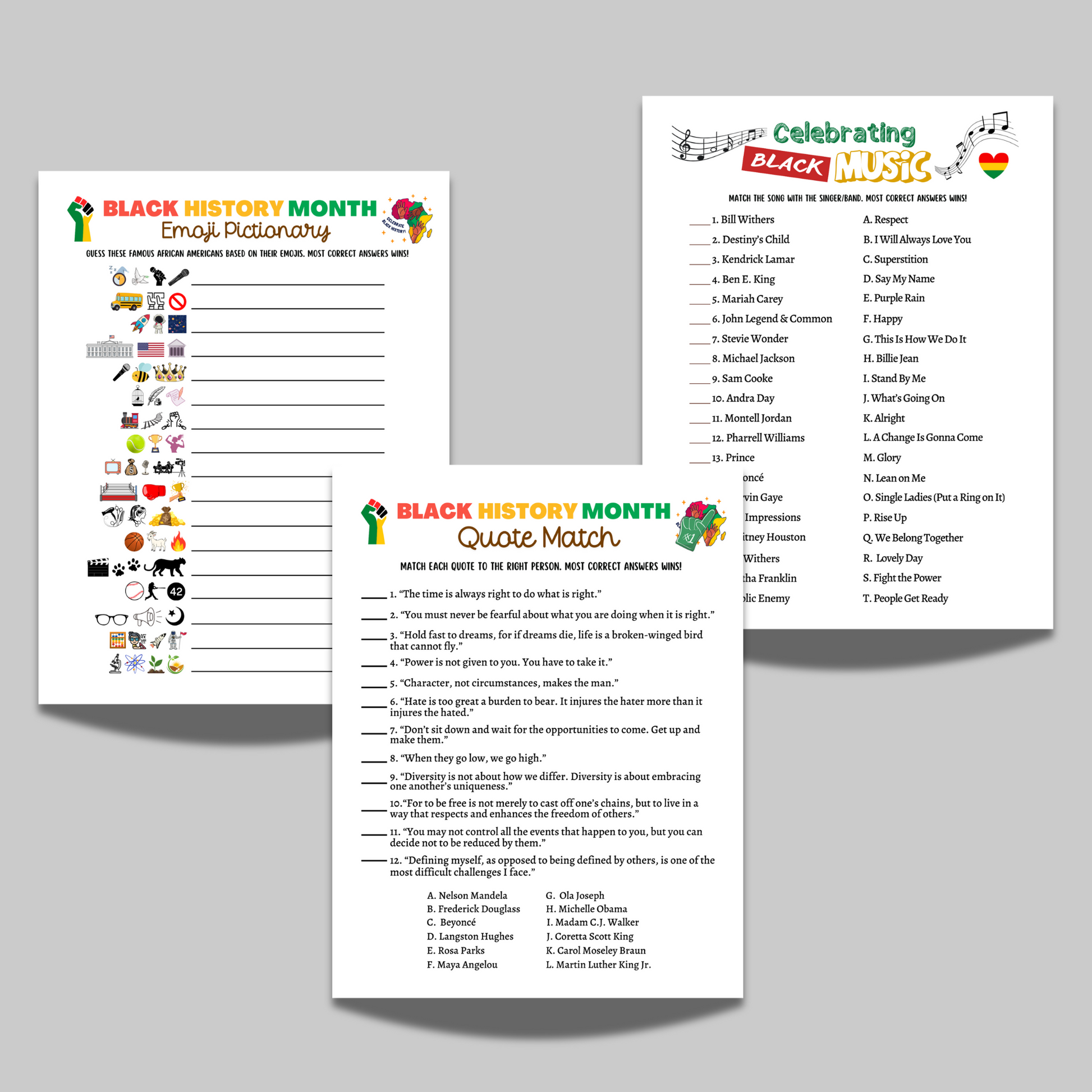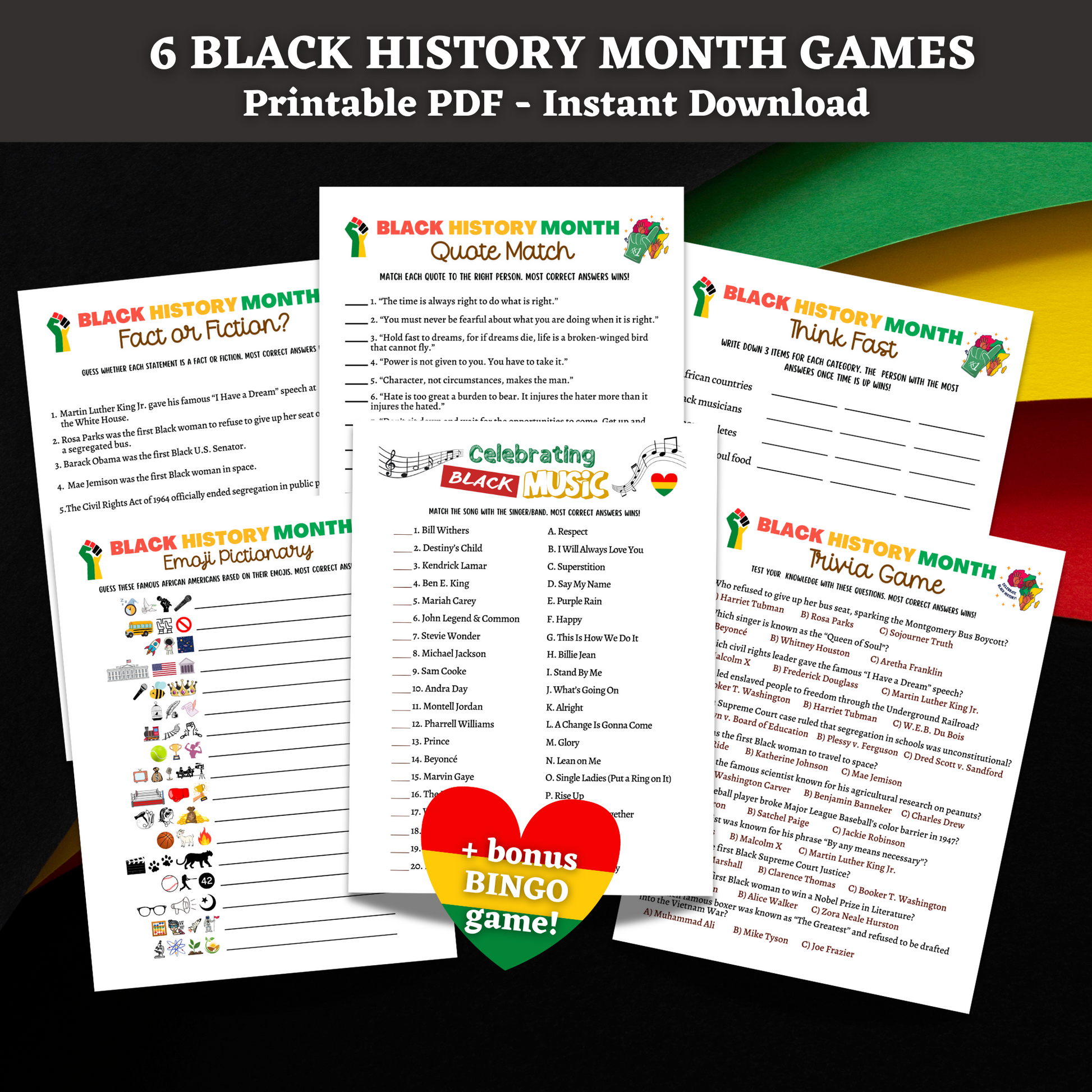 Black History Month Games Bundle | Fun & Educational Printable Party Activities for Kids, Adults, Teens & Seniors đź–¤