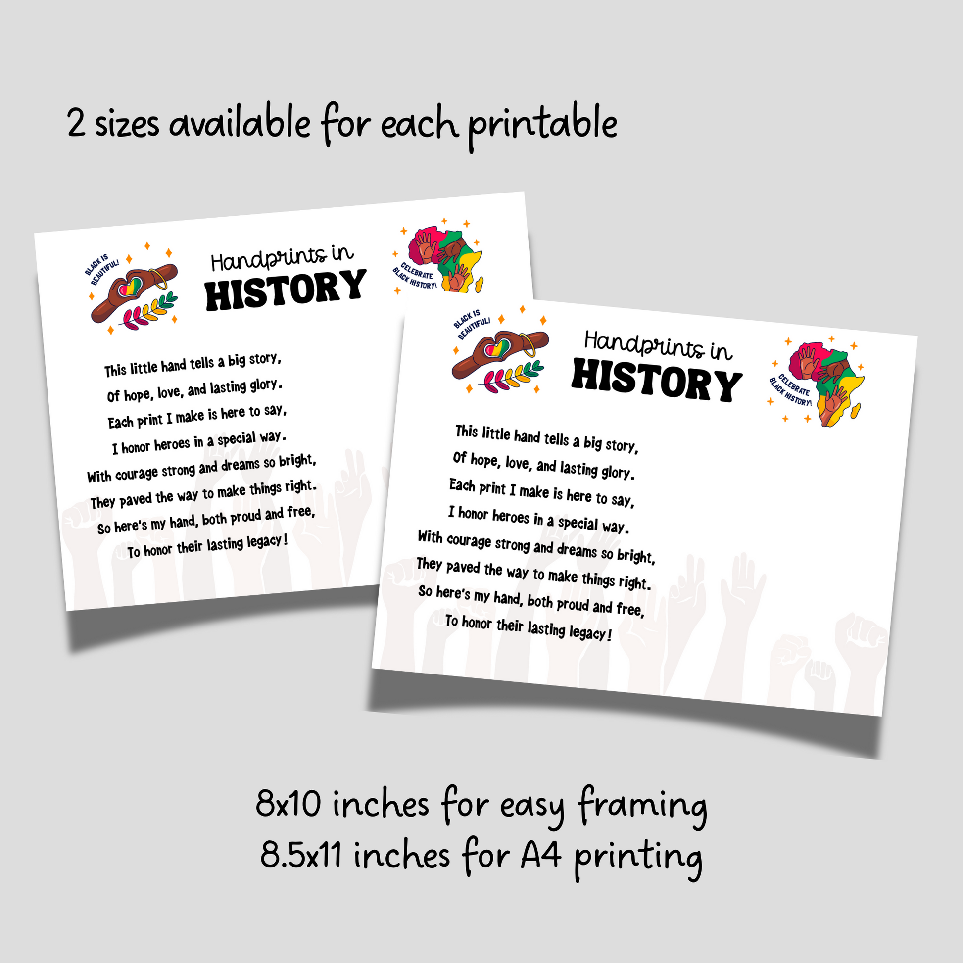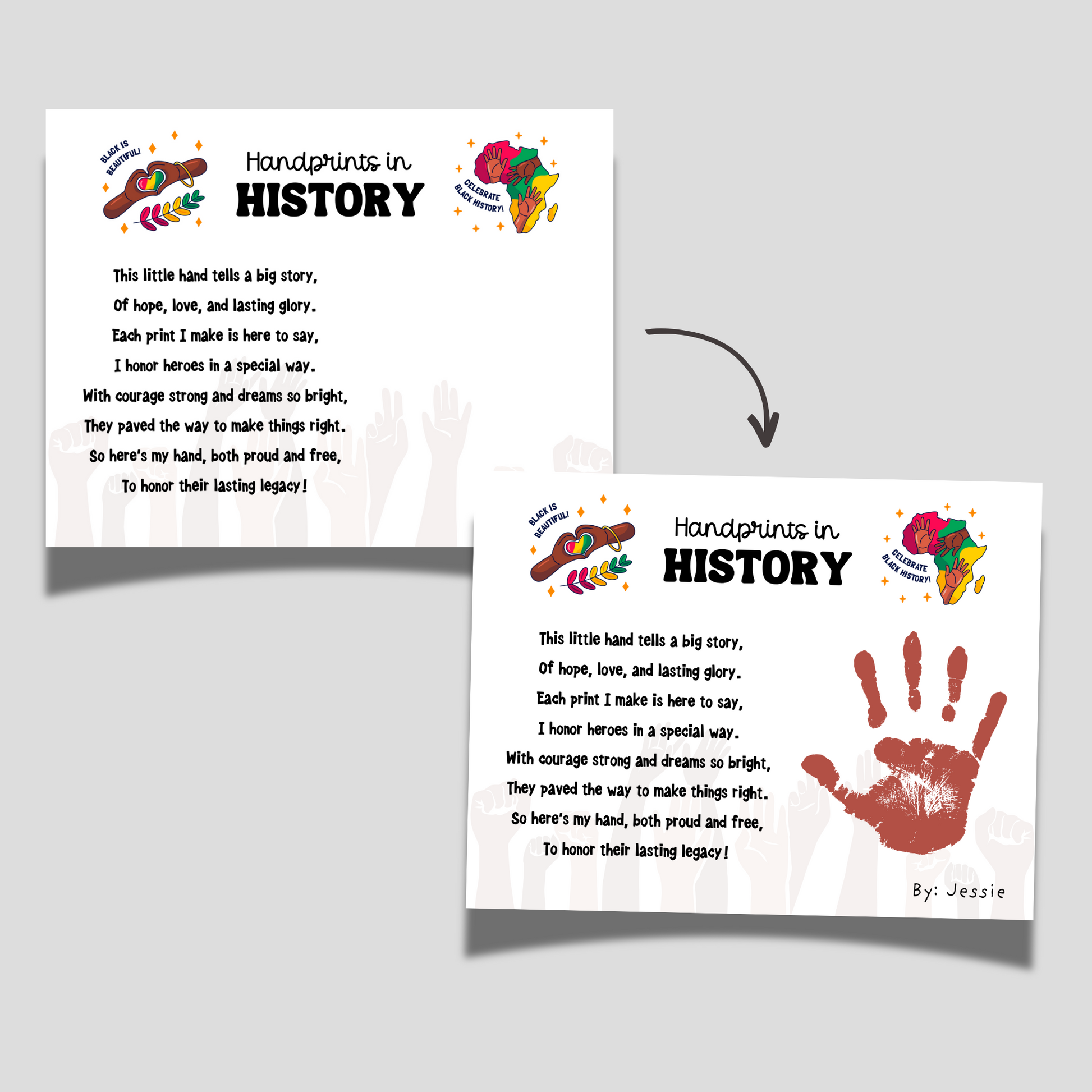 Black History Month Craft, Black History Handprint Poem, Classroom Black History Activity, Black History Preschool Craft, Educational Black History Art, DIY Handprint Keepsake, Black Leaders Art Project, School Black History Printables, Toddler Black History Craft, Kindergarten Black History Month Activity, Kids Handprint Poem, Historical Handprint Art, Printable Classroom Activity, Black History Month Decorations