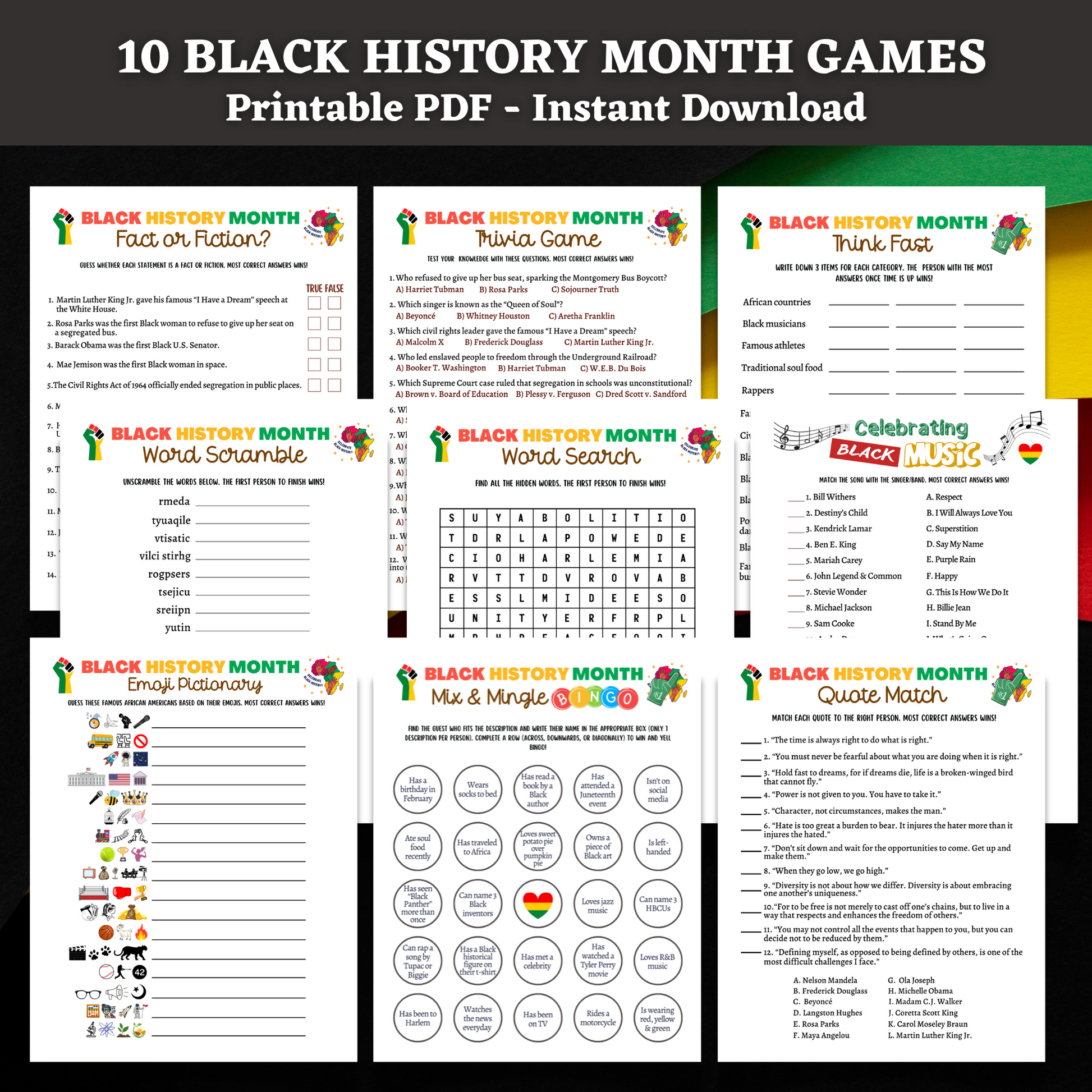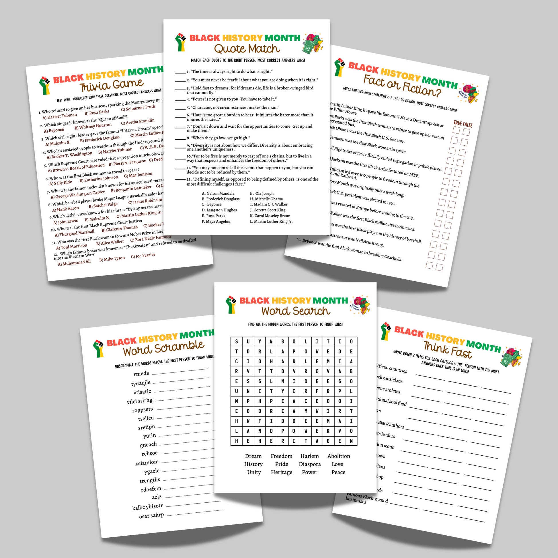 Make learning about African American history, culture, and achievements fun and engaging with this 10-game printable pack! Whether you’re celebrating in the classroom, office, at home, or a community event, this educational and interactive game bundle is the perfect way to honor Black History Month in a meaningful way.