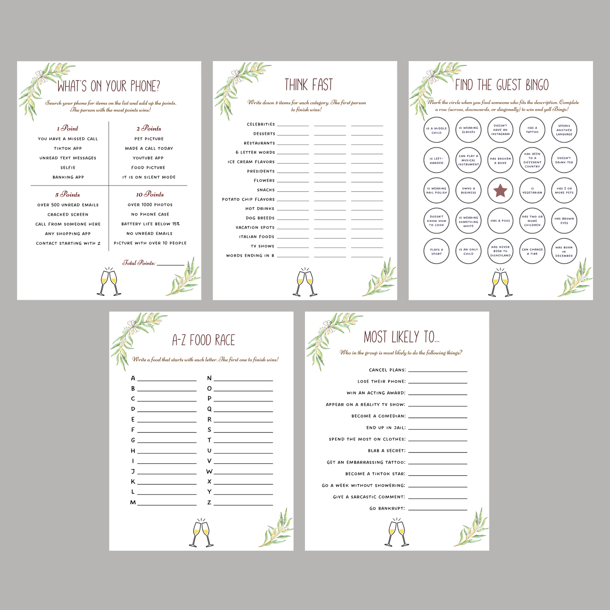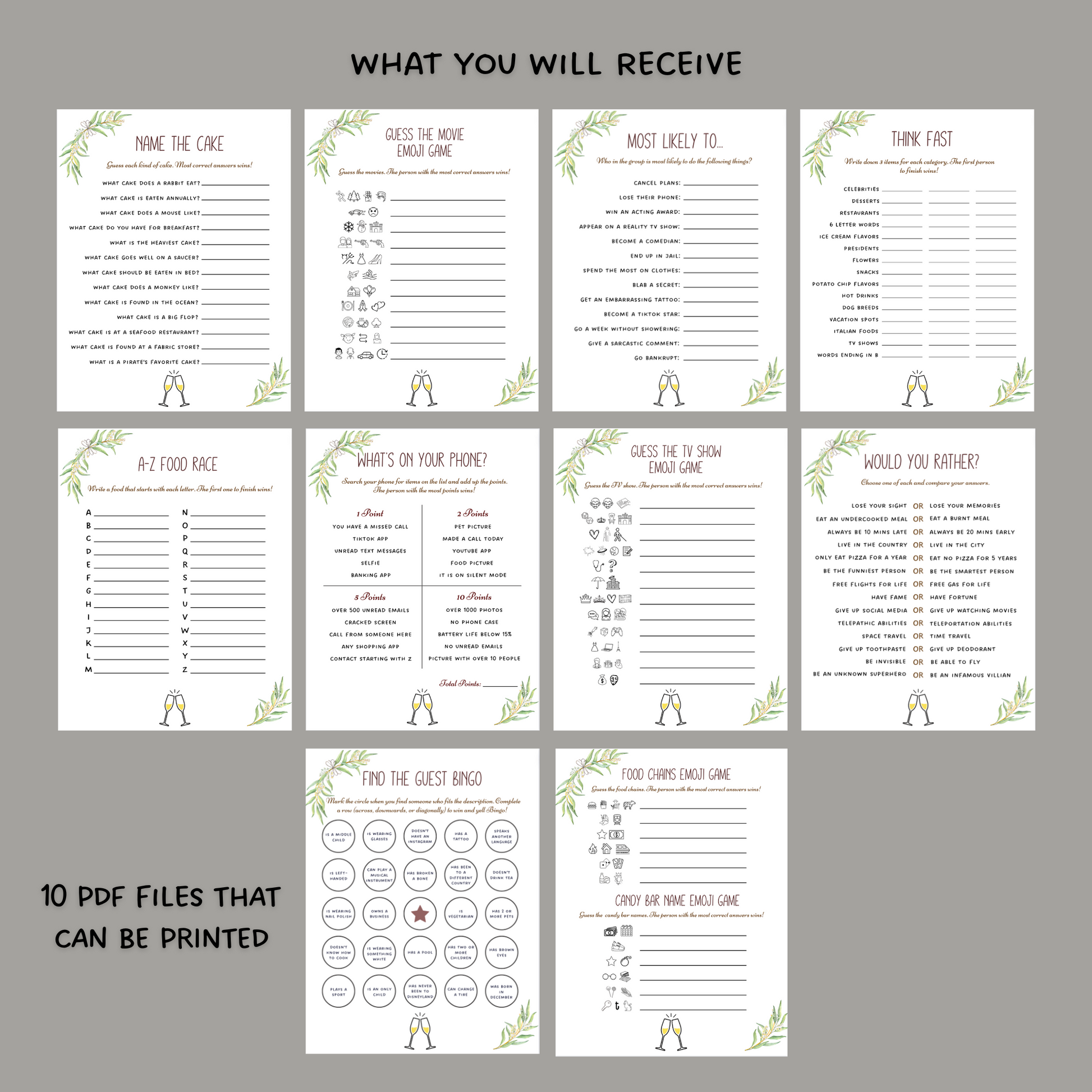 This brunch party games bundle is a printable PDF and an instant digital download! It includes everything you need for your next fun and entertaining cocktail party, house party, ladies brunch, or birthday party!