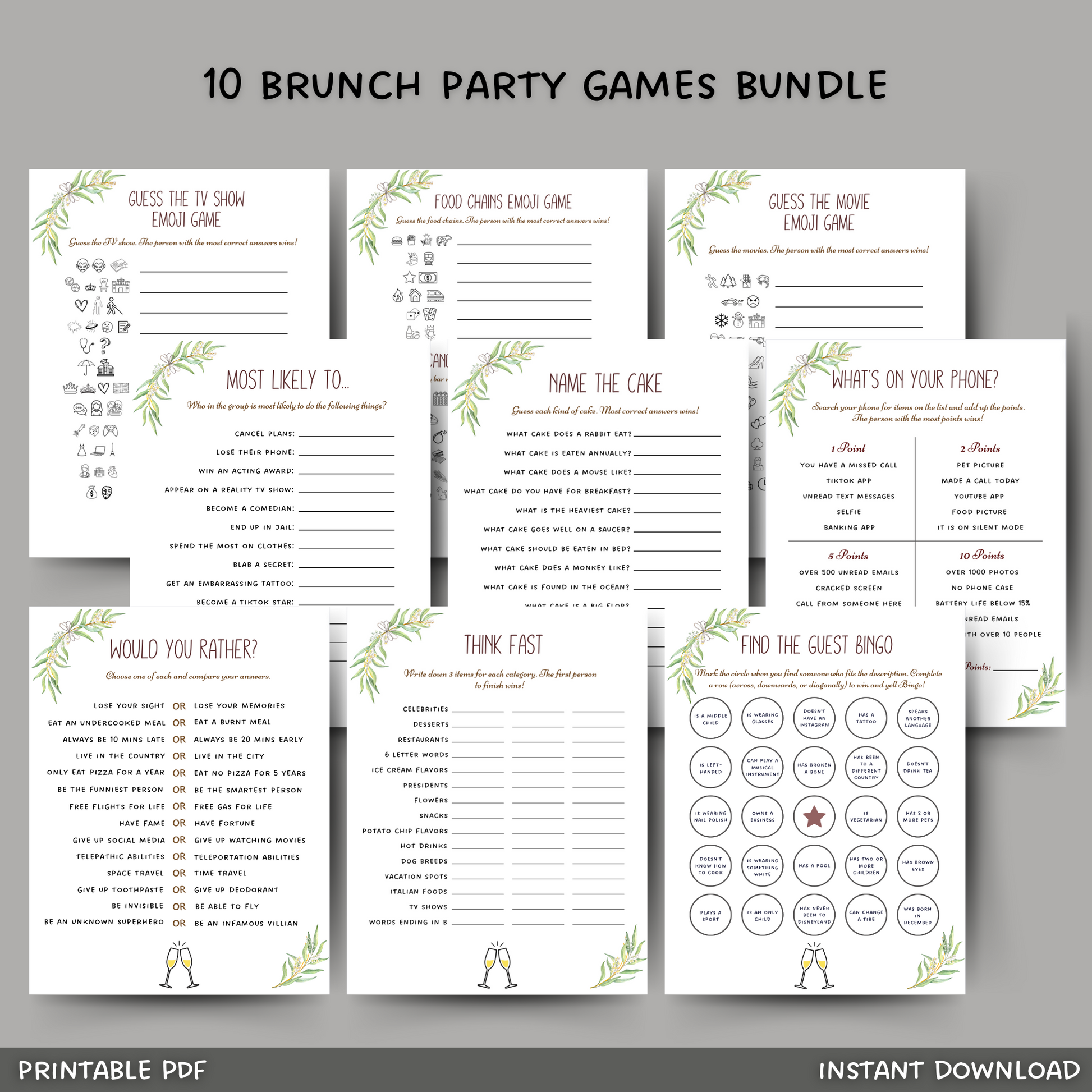 Brunch Party Games Printable, Adult Icebreaker Ideas