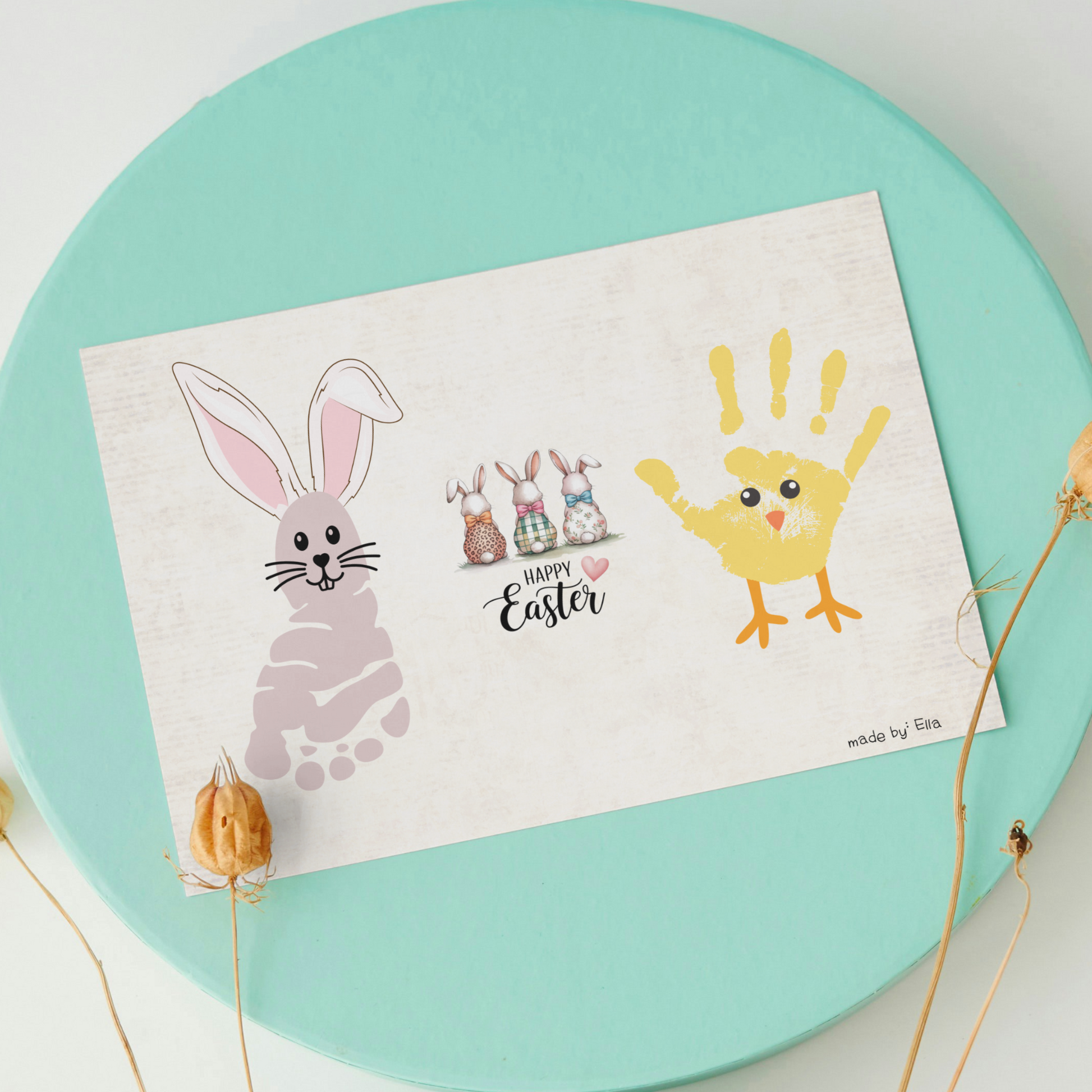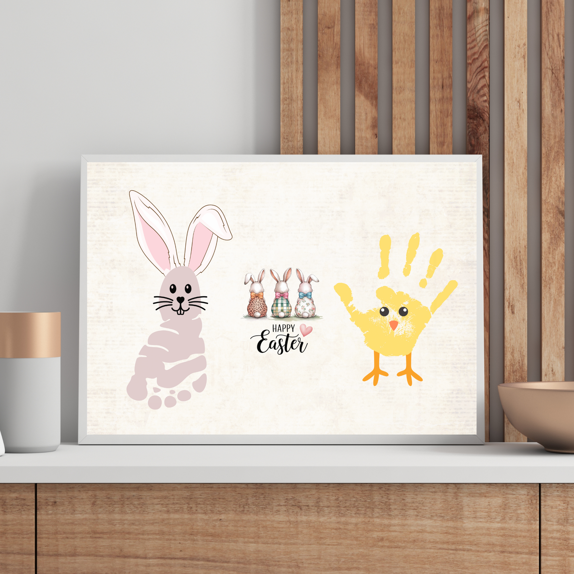 Bunny Chick Easter Handprint Footprint Craft for Kids Printable, DIY Card Art