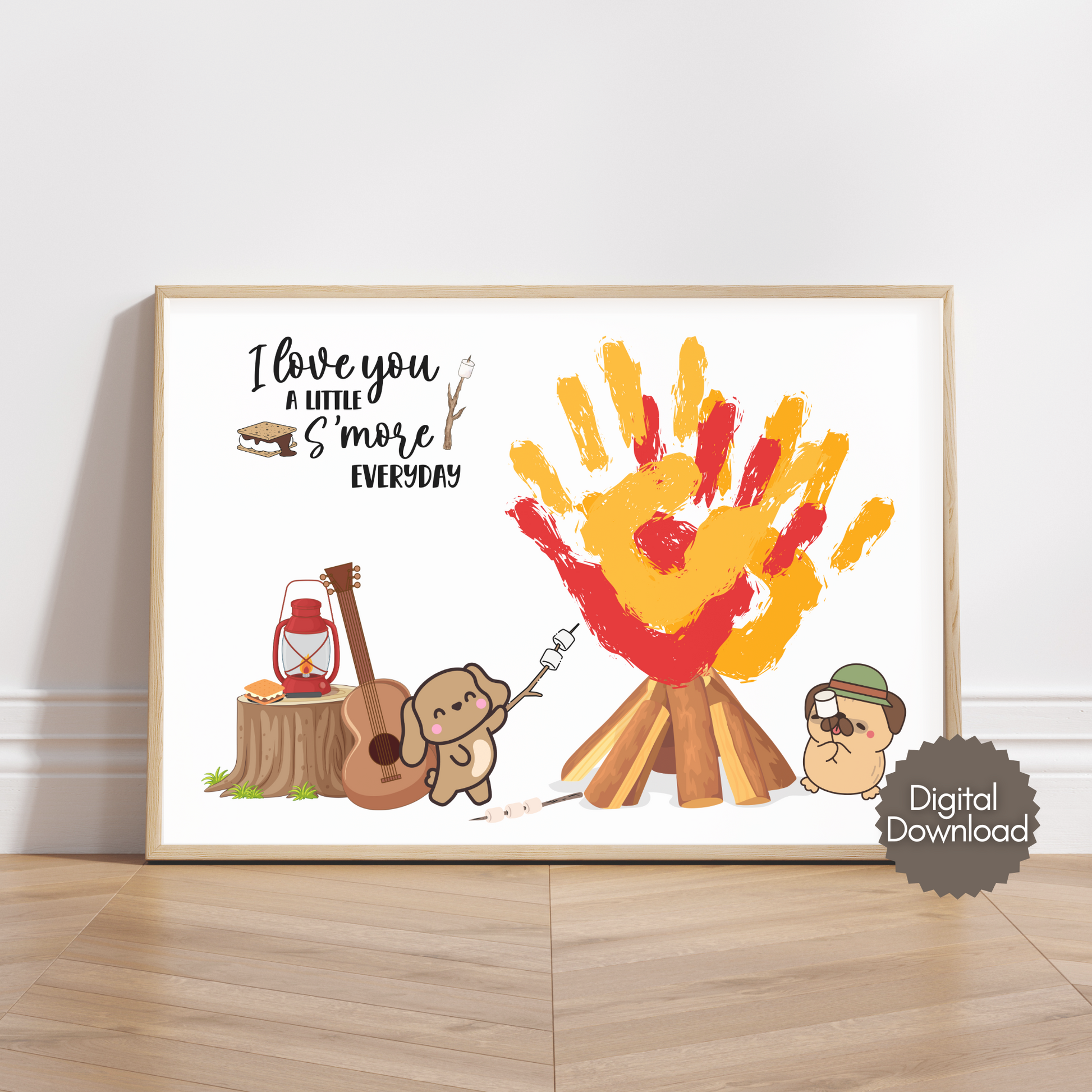 I Love You S’more Everyday Handprint Sign Craft Printable, Fall Footprint Wall Art Template Thanksgiving Decor Personalized Gift Cute Seasonal DIY Activity for Kids, Baby, Toddler Homeschool Project Keepsake 🍂