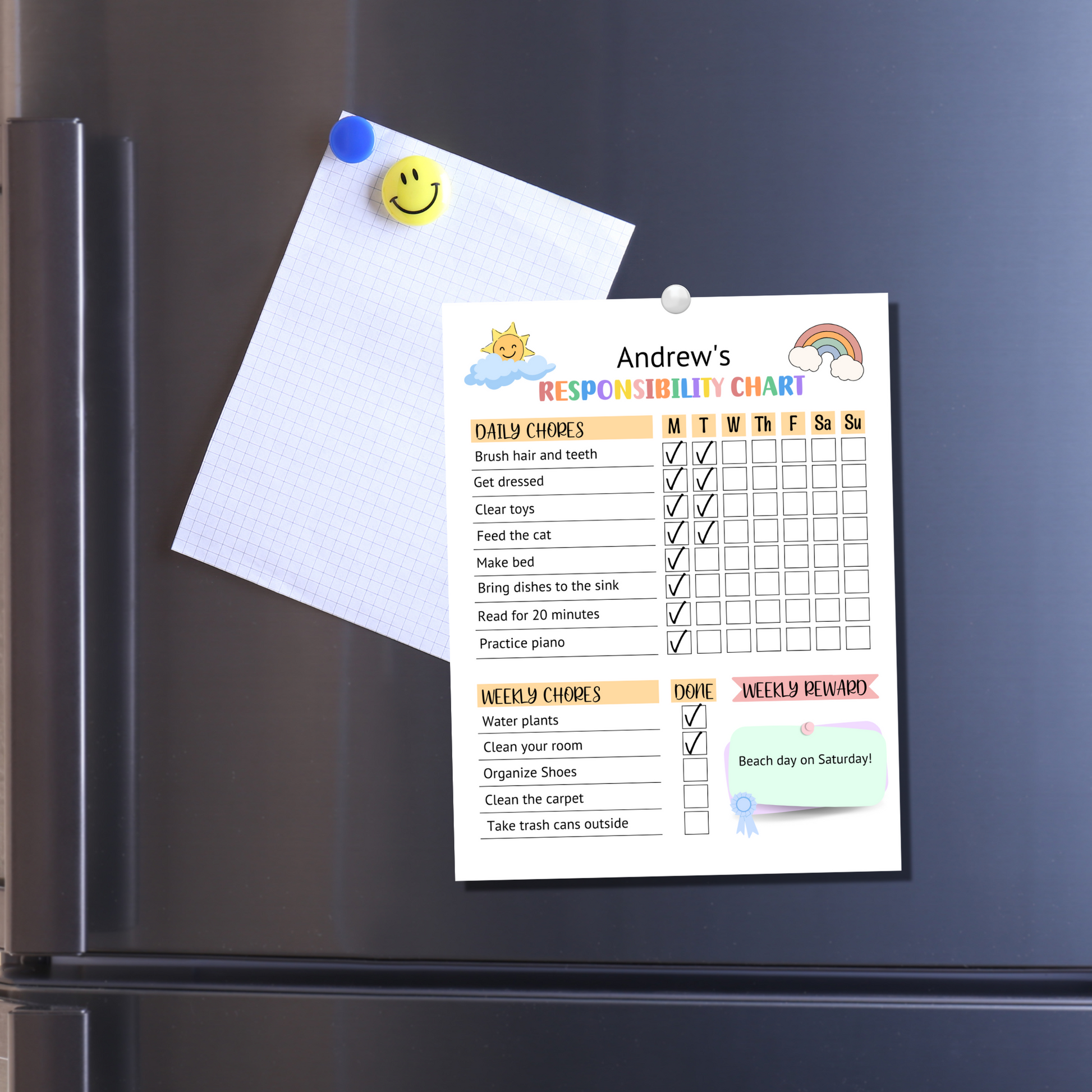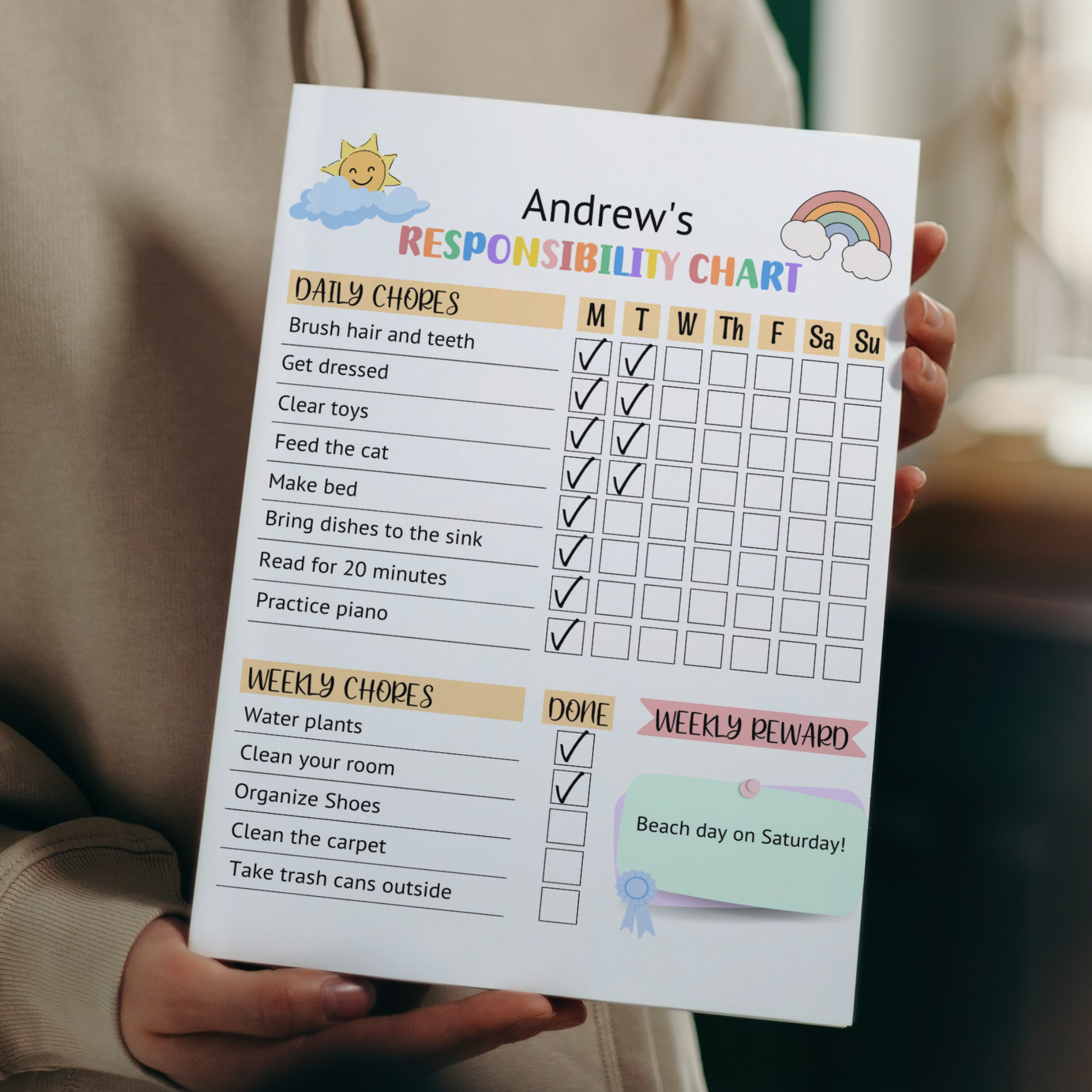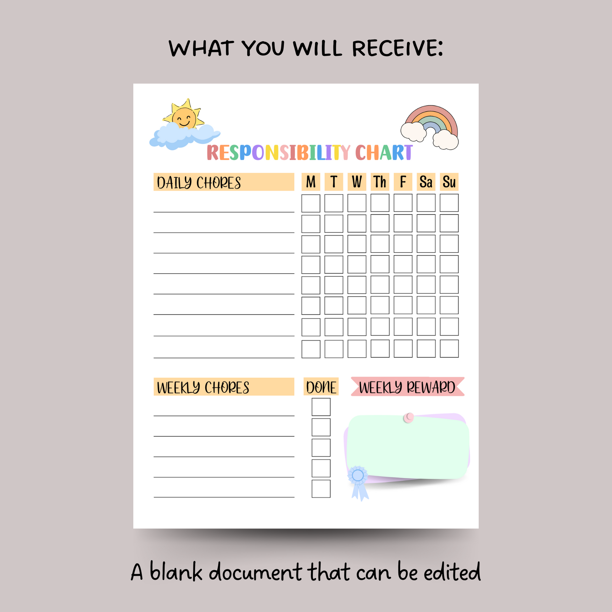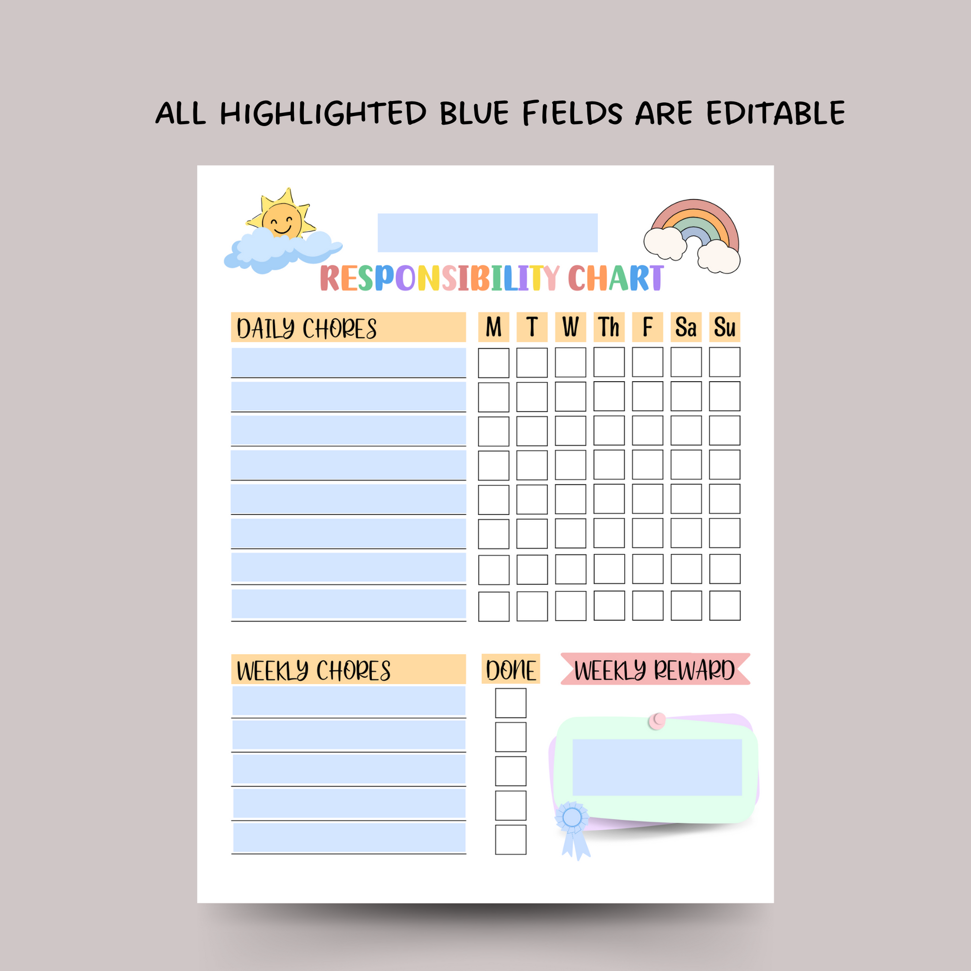 This editable responsibility chart for kids is a printable PDF and instant digital download. Print it today and use in your homes to help kids stay on track with their daily and weekly chores and a reward system to keep them motivated! It is also perfect for kids starting a new routine!