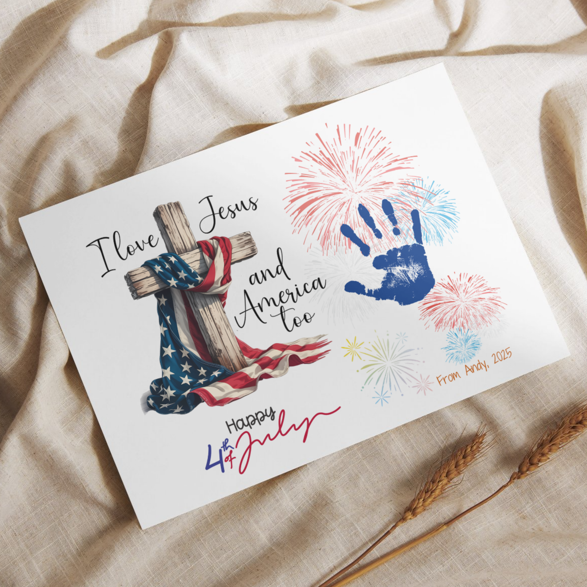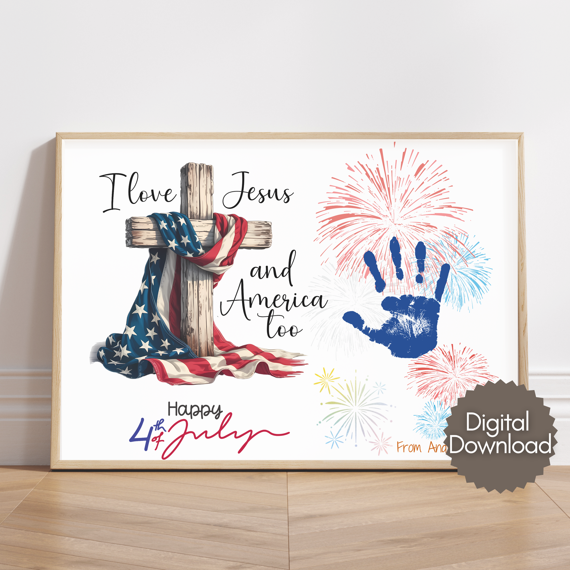 Celebrate faith and freedom this Independence Day with our Christian 4th of July instant download! Featuring a sweet and patriotic phrase, this DIY art project lets little ones create a heartfelt keepsake that honors both their love for God and their country.
