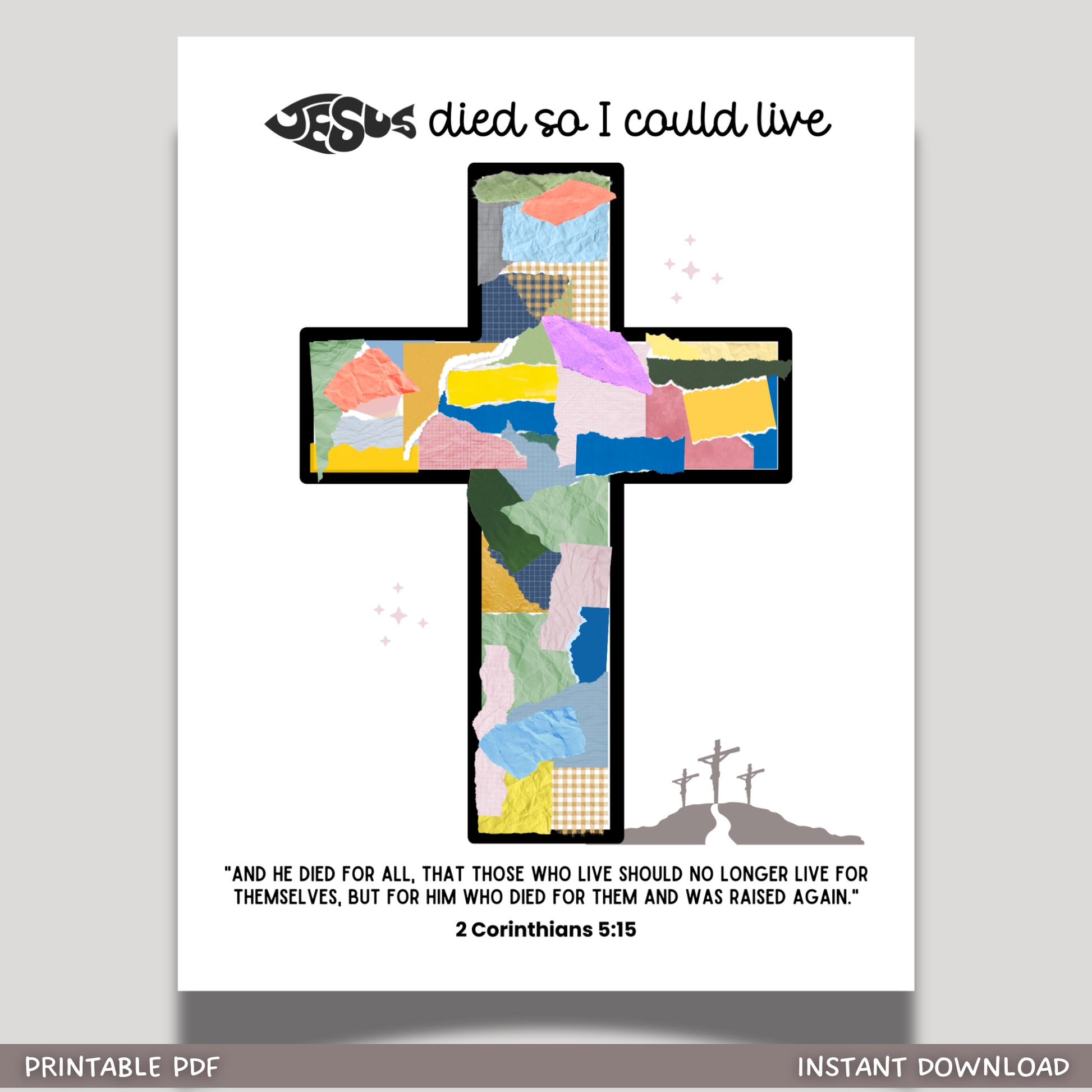 Jesus Died So I Could Live – Christian Easter Torn Paper Bible Lesson Craft Printable ✝️