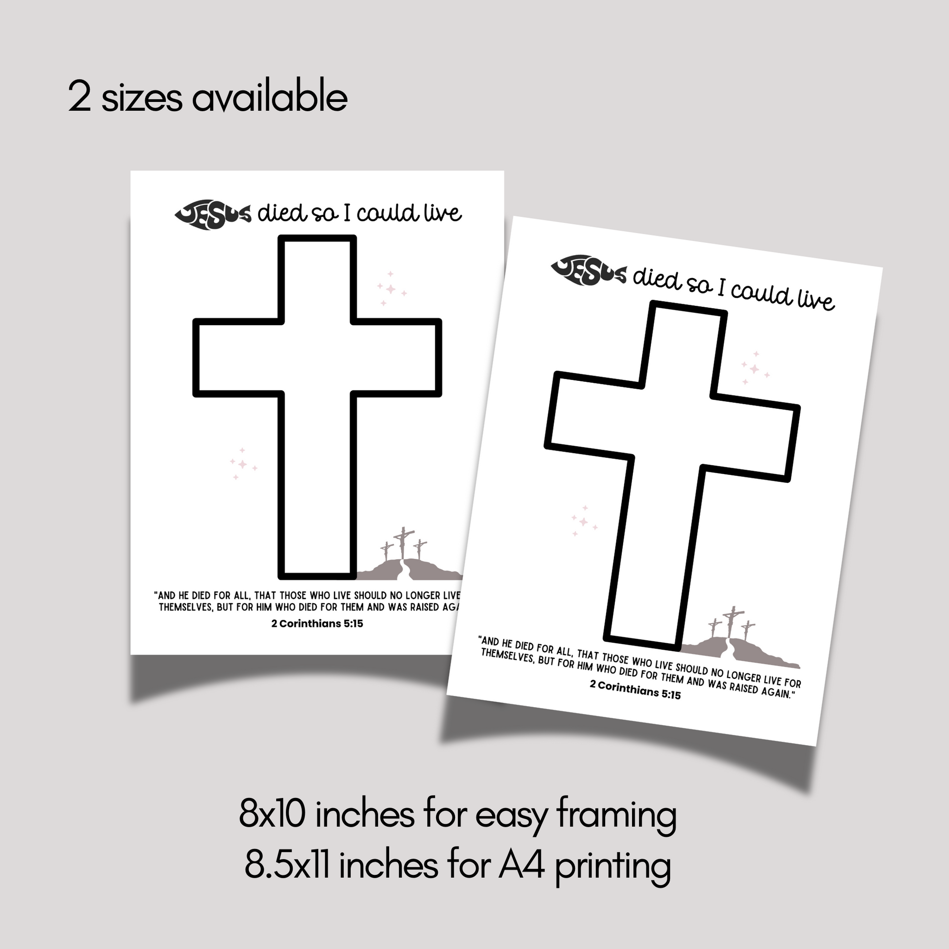 This printable tissue paper craft features the words “Jesus Died So I Could Live” with a cross, symbolizing God’s unconditional love and the gift of salvation. Children can tear and glue tissue paper, color with crayons, or use construction paper to create a beautiful keepsake that serves as a reminder of Jesus’ ultimate sacrifice. Whether you’re a Sunday school teacher, homeschool parent, or looking for an Easter faith activity, this craft is a simple yet powerful way to teach children about Good Friday and the joy of the Resurrection. 🌸