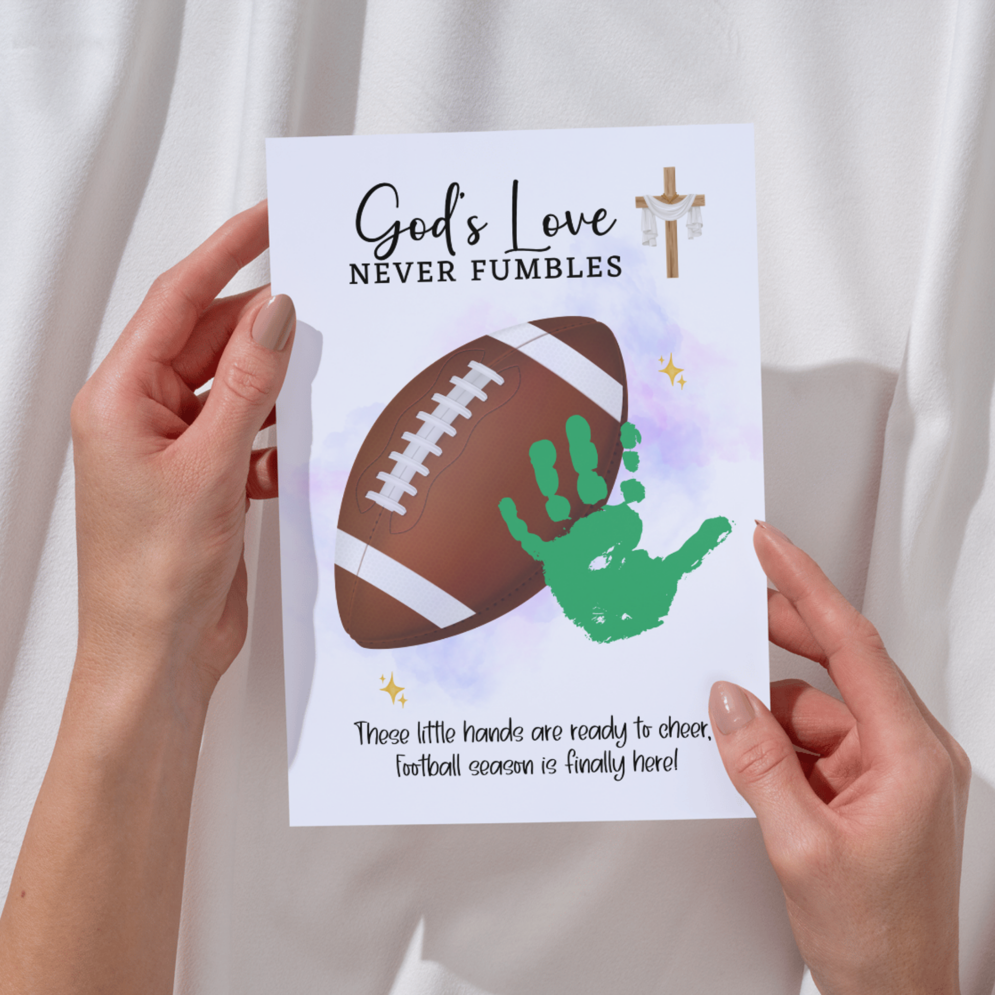 Perfect for babies, infants, toddlers, and preschoolers, this easy craft makes a special keepsake while reinforcing a positive Christian message. Simply print, add paint, and create a one-of-a-kind memory parents will cherish. Ideal for Sunday School activities, faith-based classrooms, Super Bowl or football season crafts, church events, or Christian nursery decor, this printable also makes a thoughtful handmade gift. Instant download makes it simple to use year after year, because faith, love, and little moments matter most.
