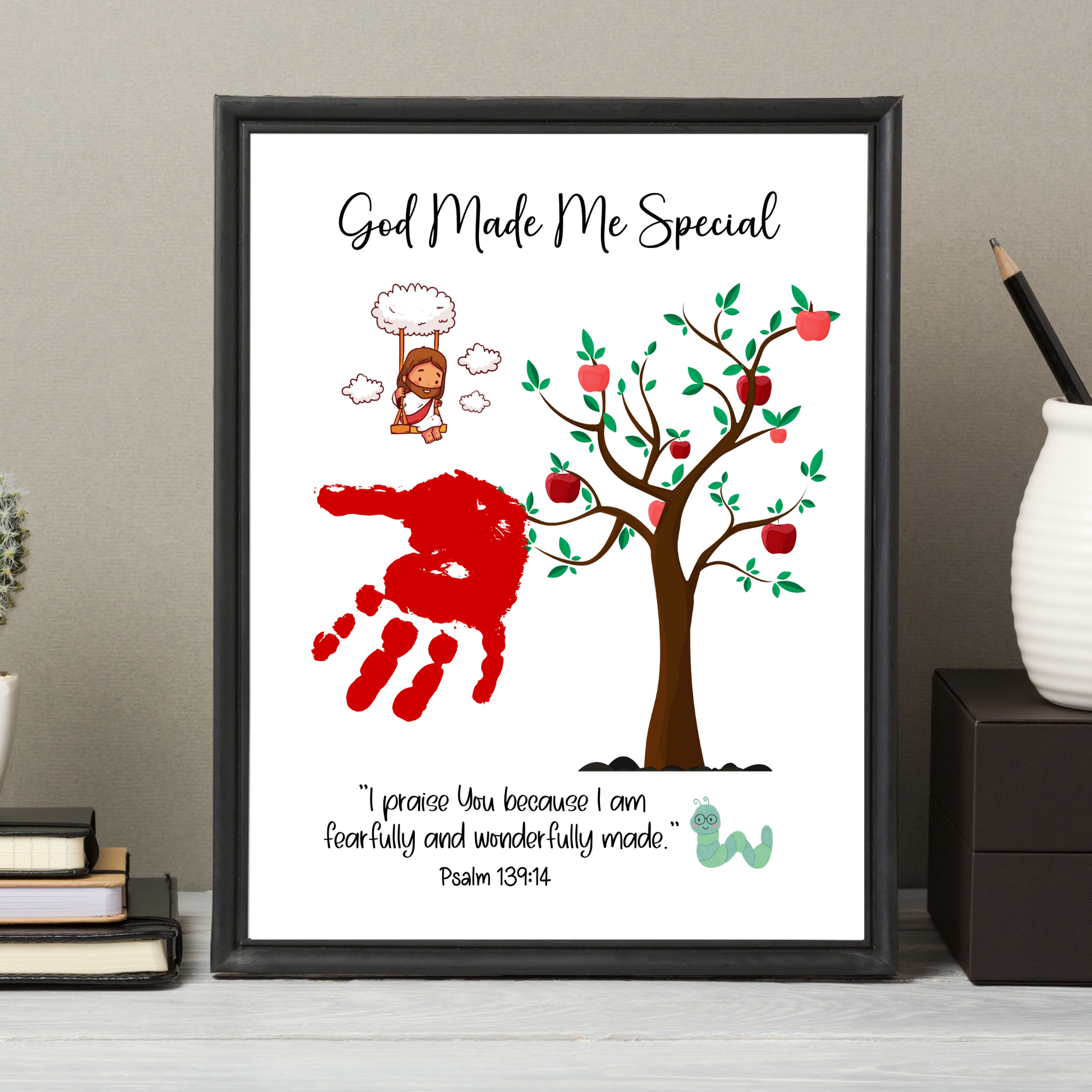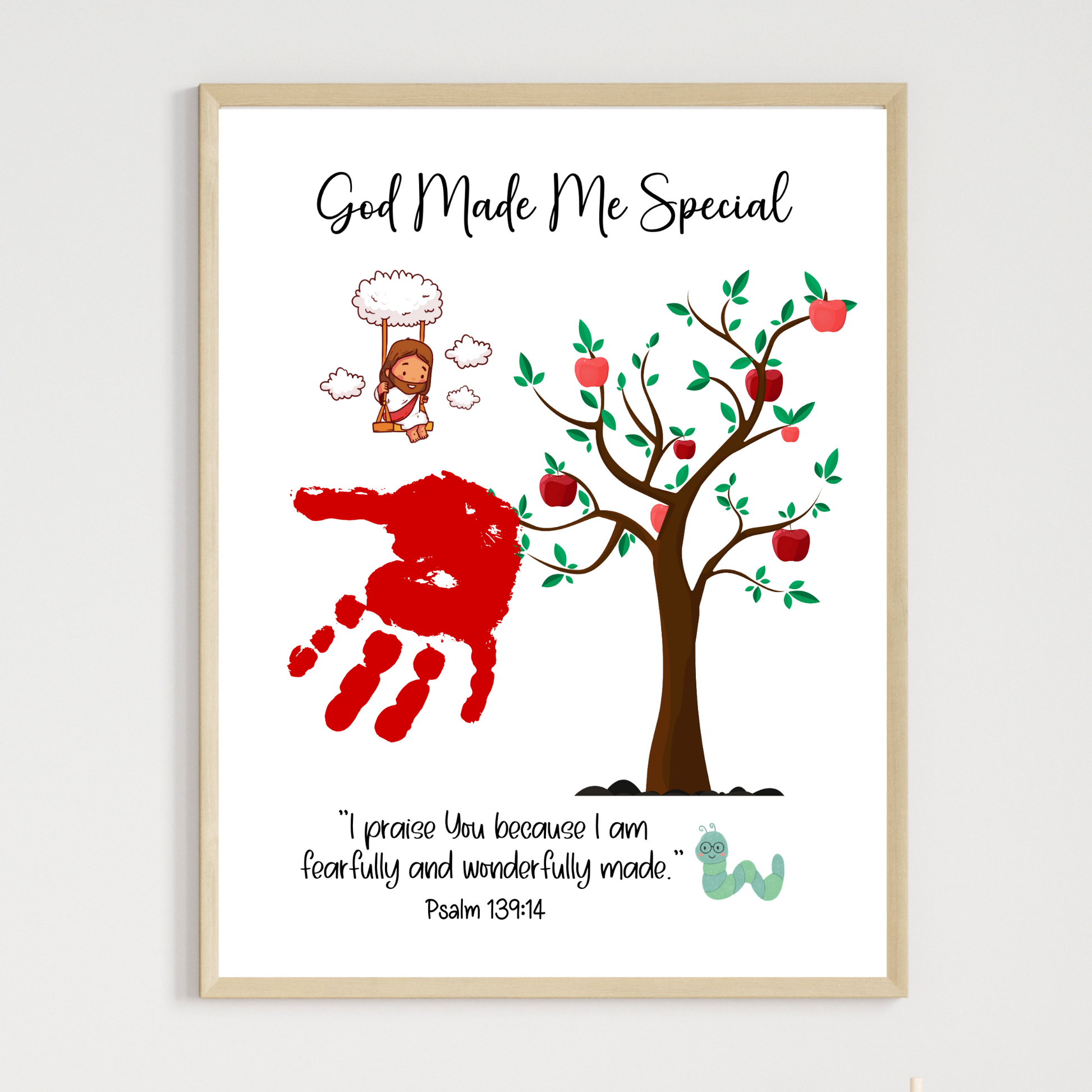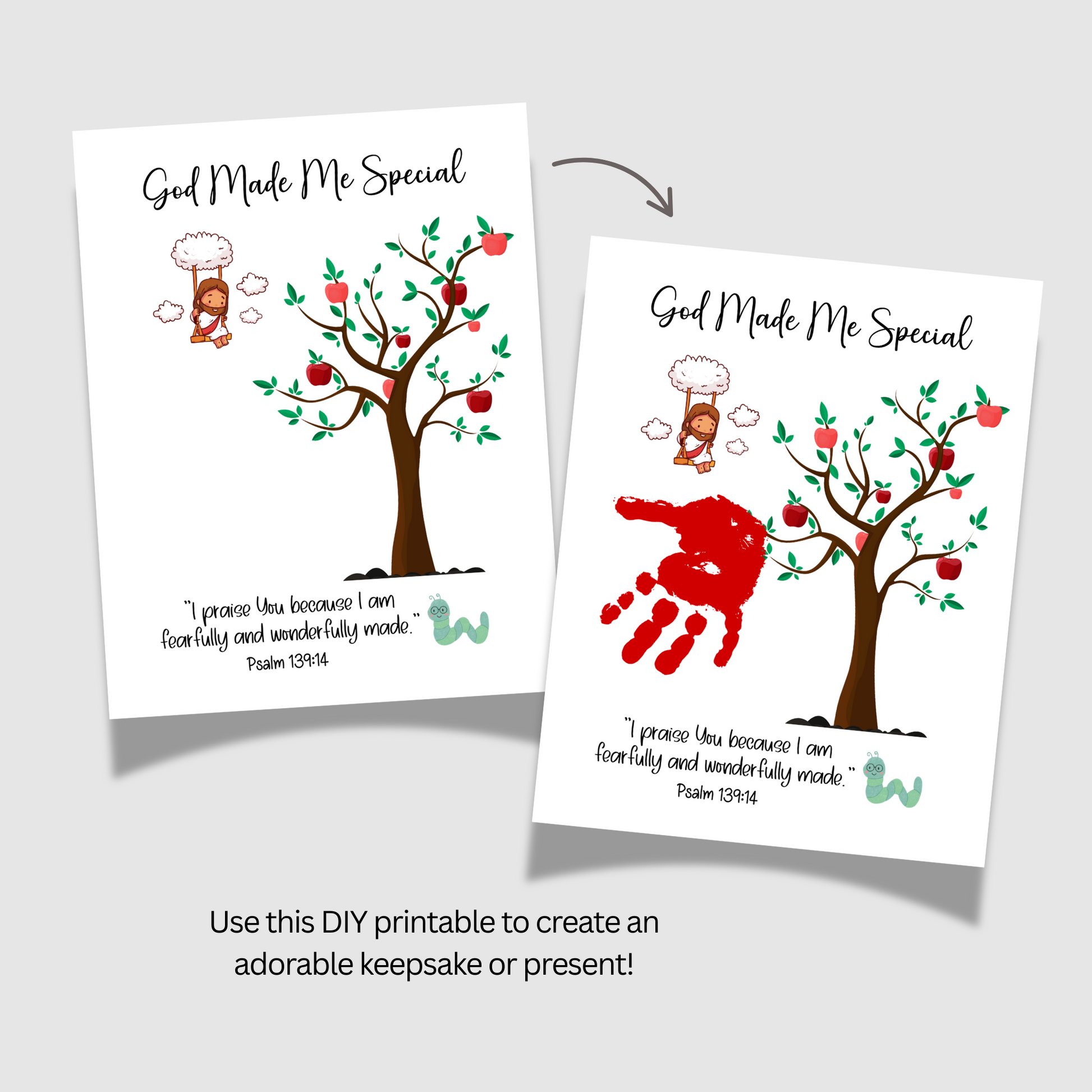Celebrate the new school year with this Christian Handprint Apple Craft Printable, a meaningful back-to-school activity for kids. Featuring the Bible verse Psalm 139:14 and the phrase “God Made Me Special”, this fall hand art is perfect for creating a cherished keepsake. Ideal for babies, infants, toddlers, preschool, Pre-K, and kindergarten, it’s great for Sunday school, homeschool, daycare, or classroom activities. 🍎