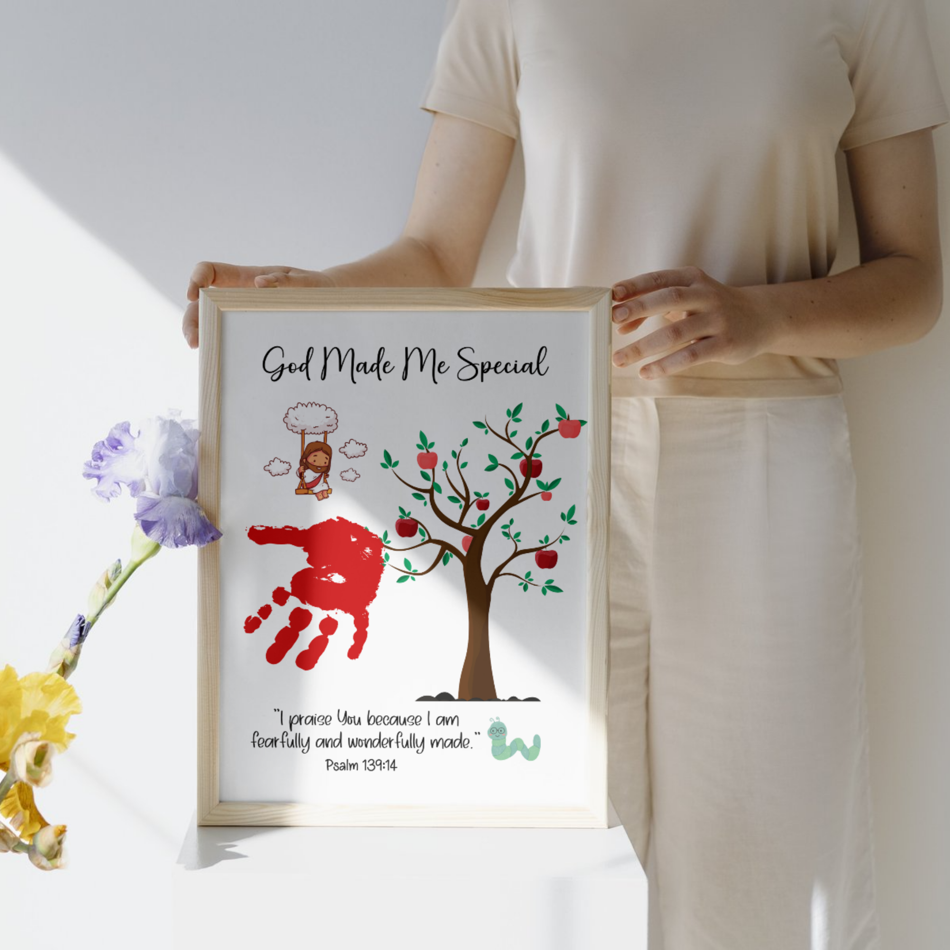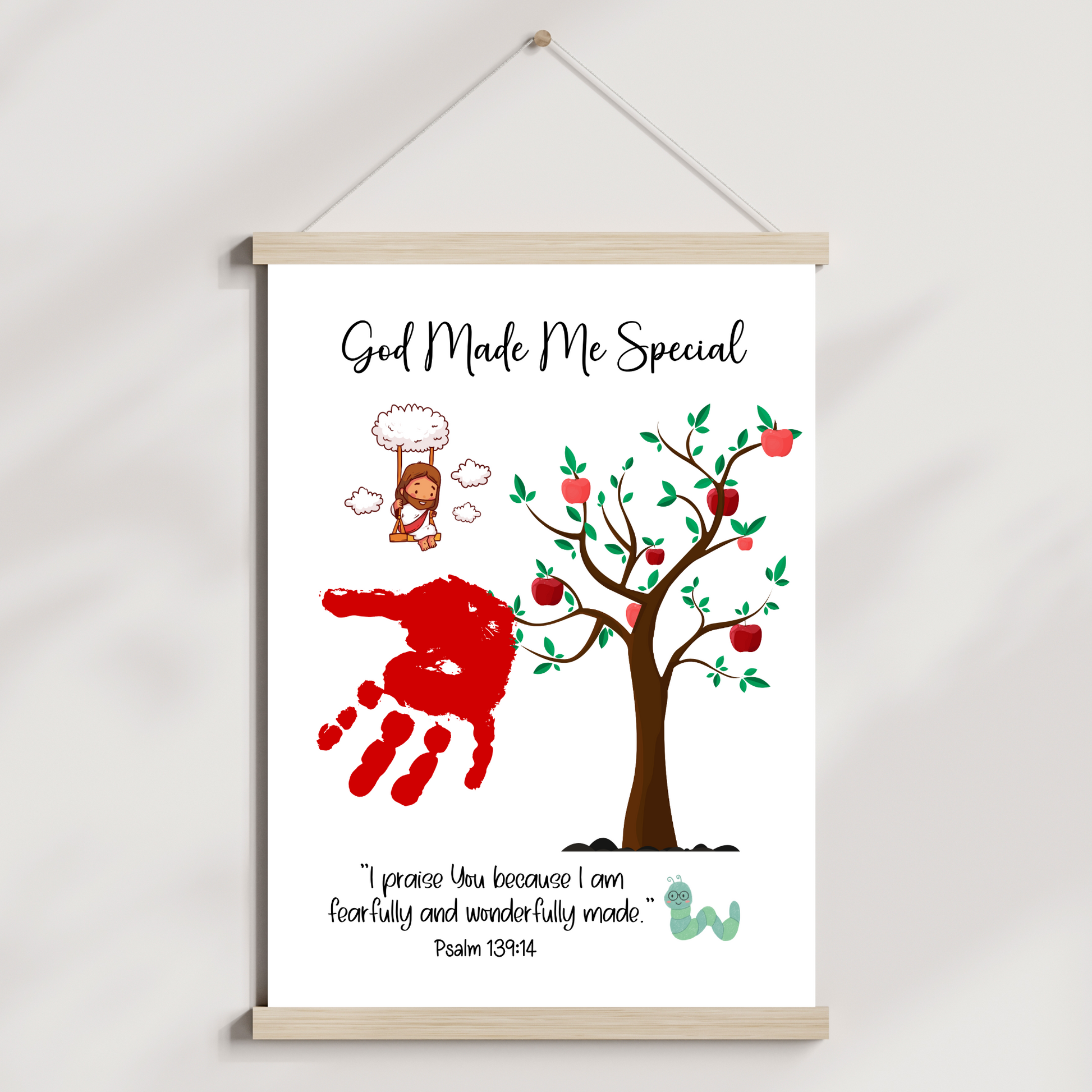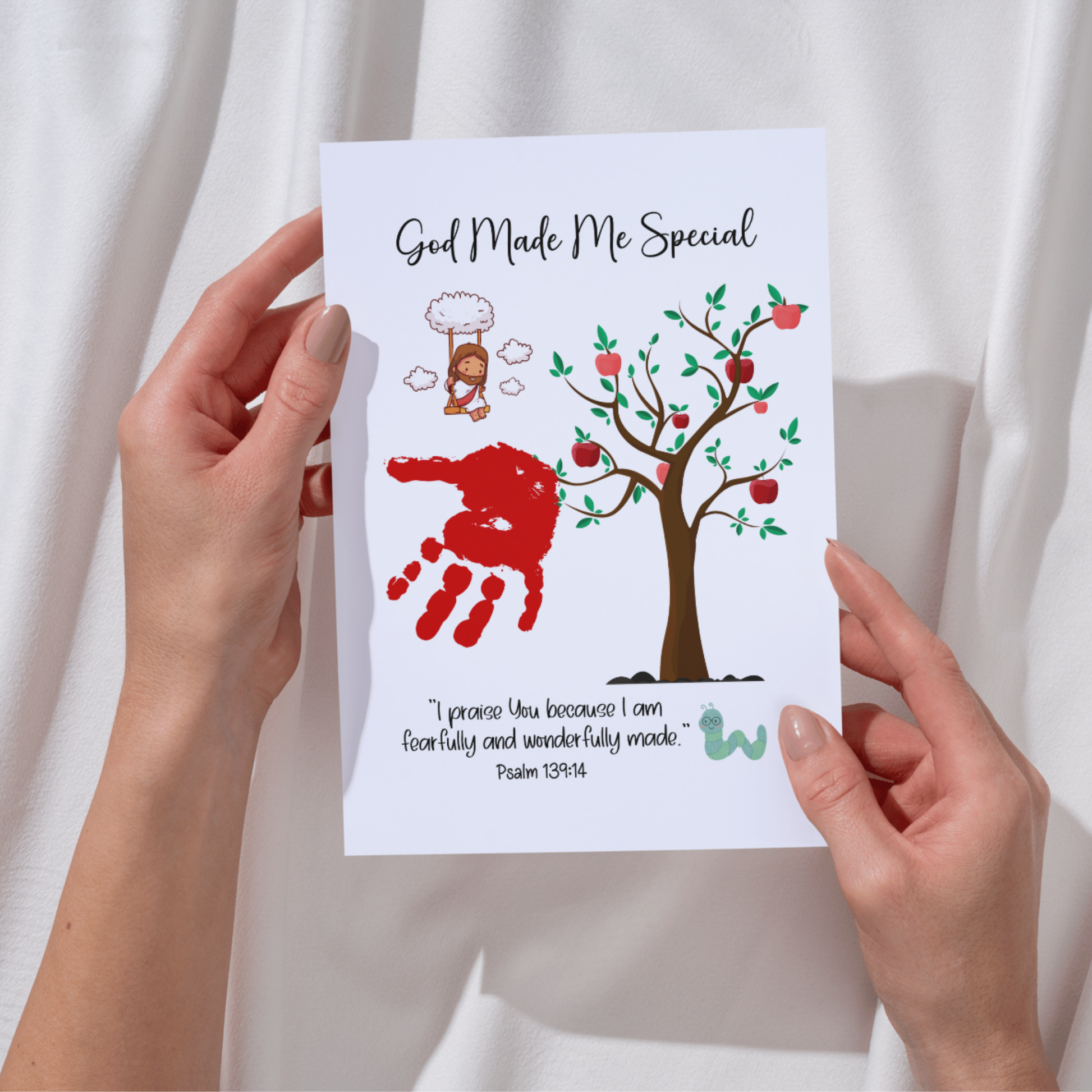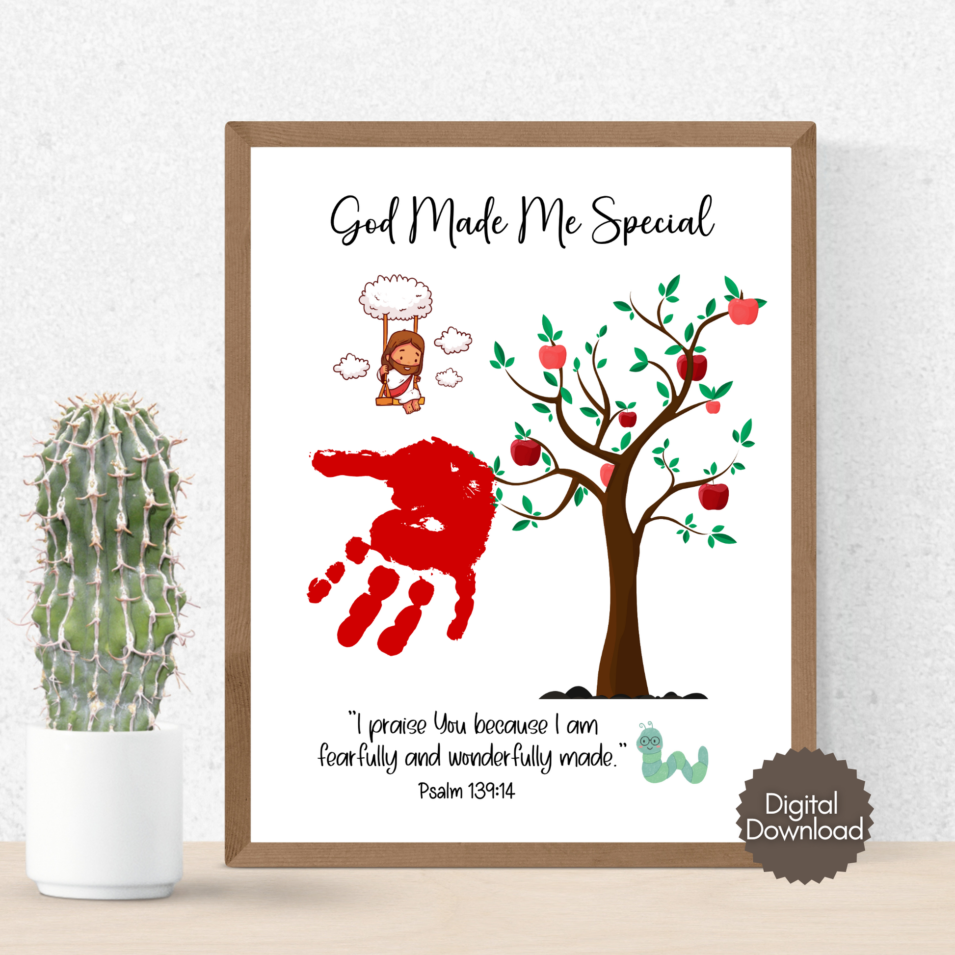 Celebrate the new school year with this Christian Handprint Apple Craft Printable, a meaningful back-to-school activity for kids. Featuring the Bible verse Psalm 139:14 and the phrase “God Made Me Special”, this fall hand art is perfect for creating a cherished keepsake. Ideal for babies, infants, toddlers, preschool, Pre-K, and kindergarten, it’s great for Sunday school, homeschool, daycare, or classroom activities. 🍎