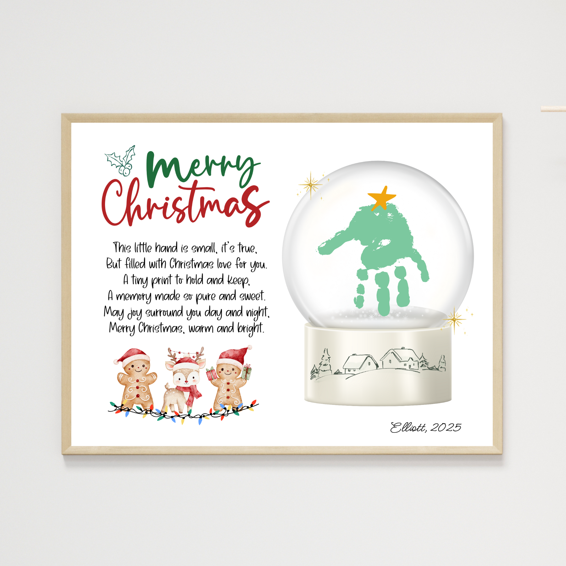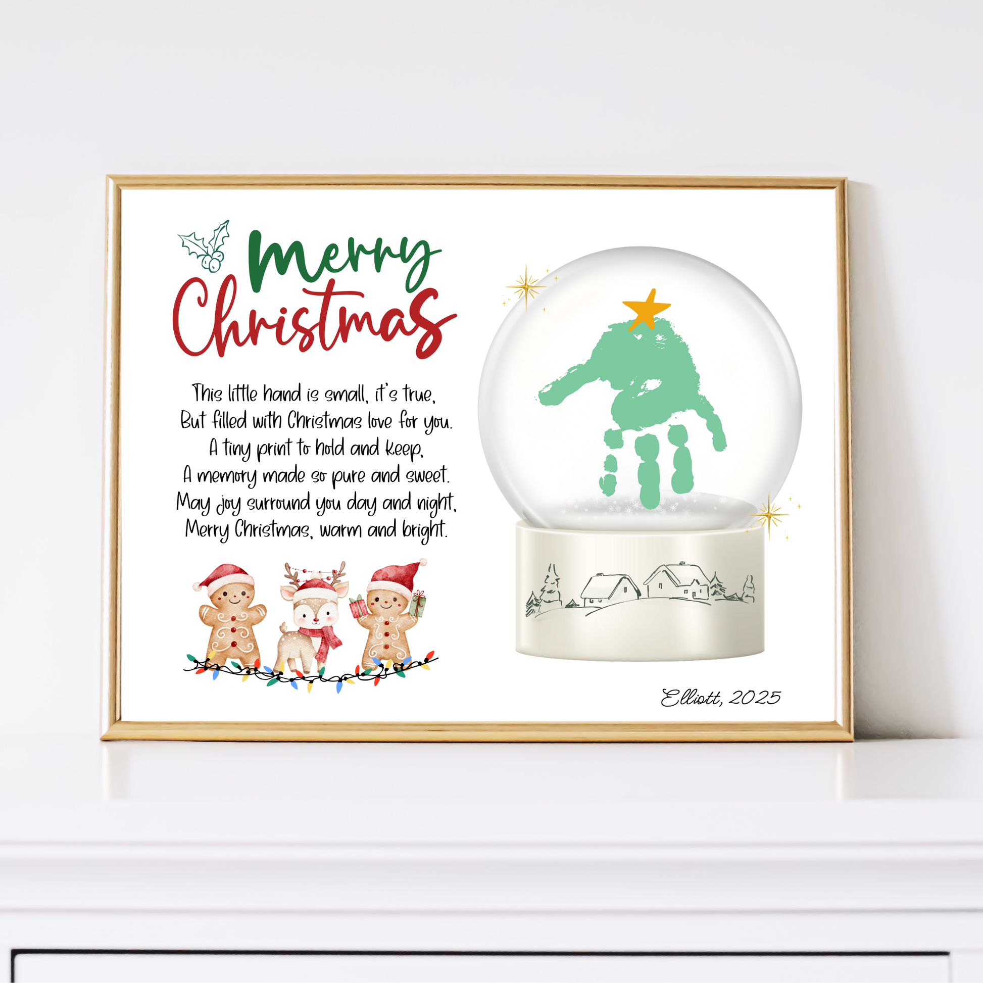 Create a heart-melting keepsake with this Christmas Handprint Snow Globe Craft Printable for Kids! đ Featuring a cute âMerry Christmasâ greeting and a sweet holiday poem, this craft becomes truly special when little ones add their handprint inside the snow globe.