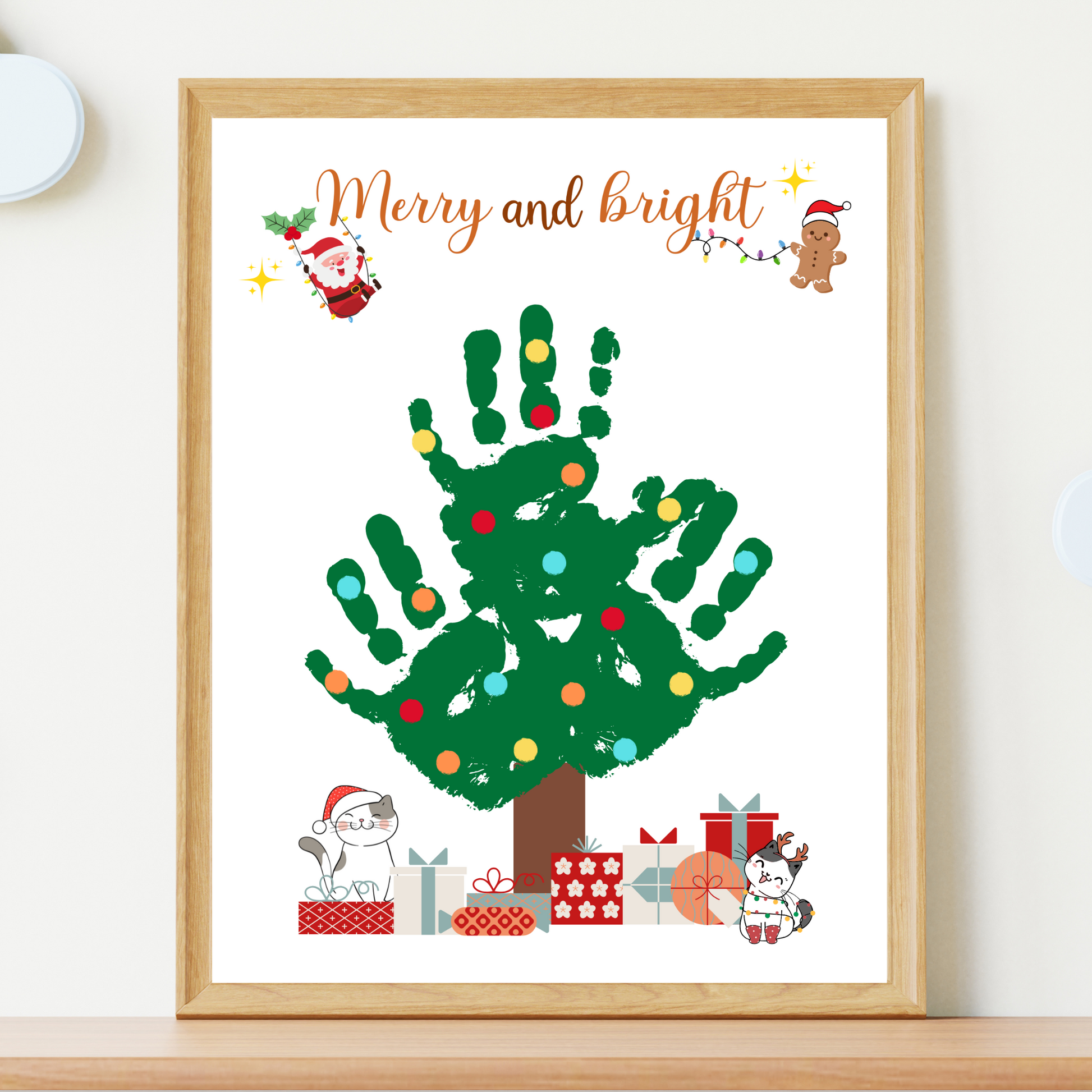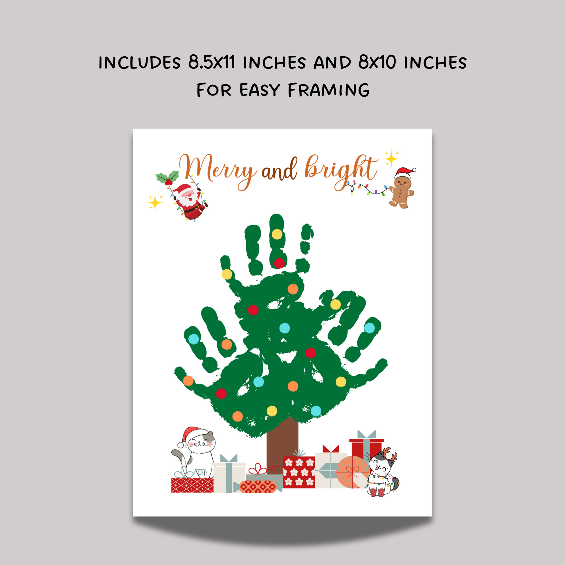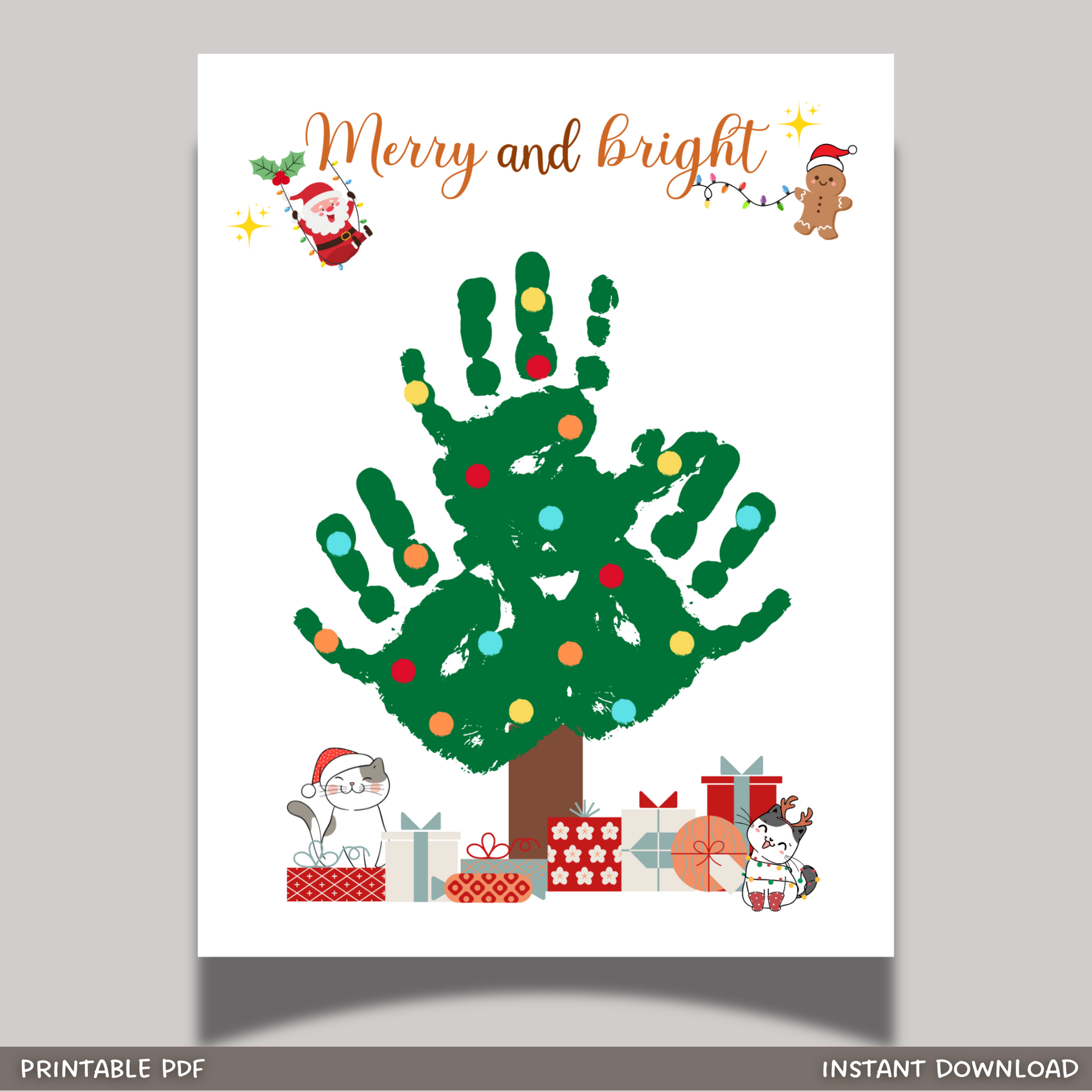 Christmas Tree Handprint Craft Printable, DIY Holiday Art Activity