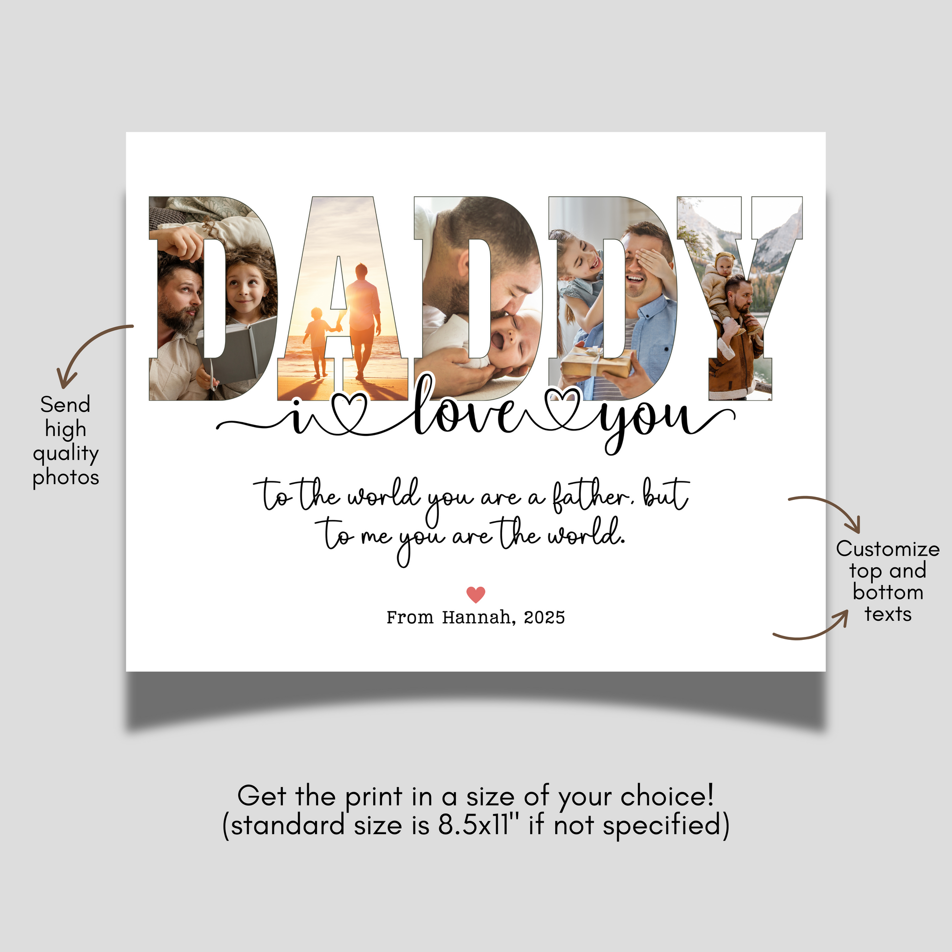 Custom Daddy Photo Collage Printable, Personalized Gift for Dad Keepsake