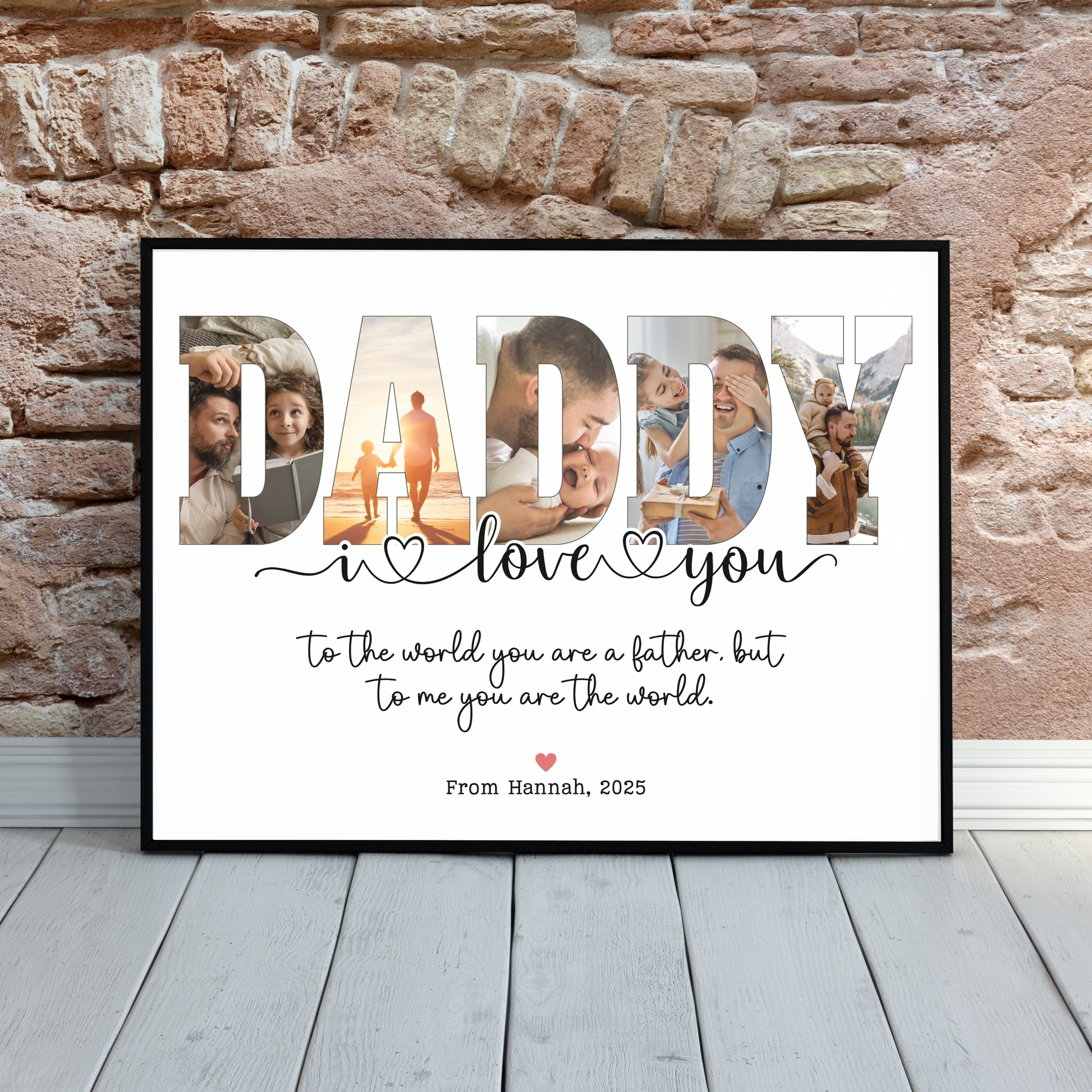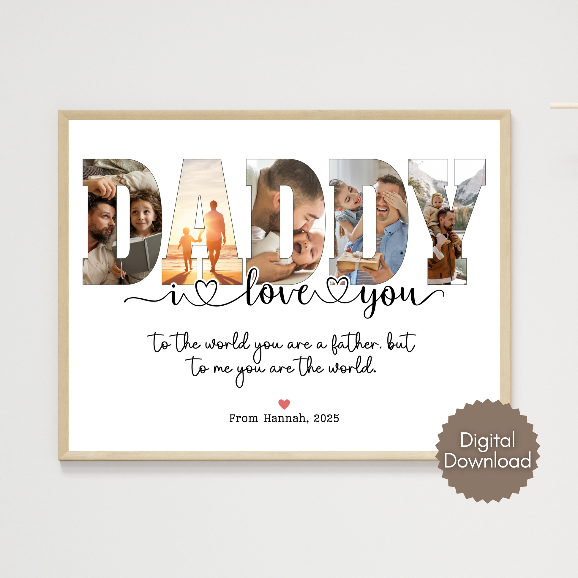 custom photo collage for dad, personalized Father’s Day gift printable, Daddy photo art gift idea, birthday present for him from kids, digital photo gift for dad, meaningful keepsake for daddy, dad picture collage printable, sentimental Father’s Day photo gift, gift for stepdad from children, DIY printable gift for father, Christmas gift from son or daughter to dad