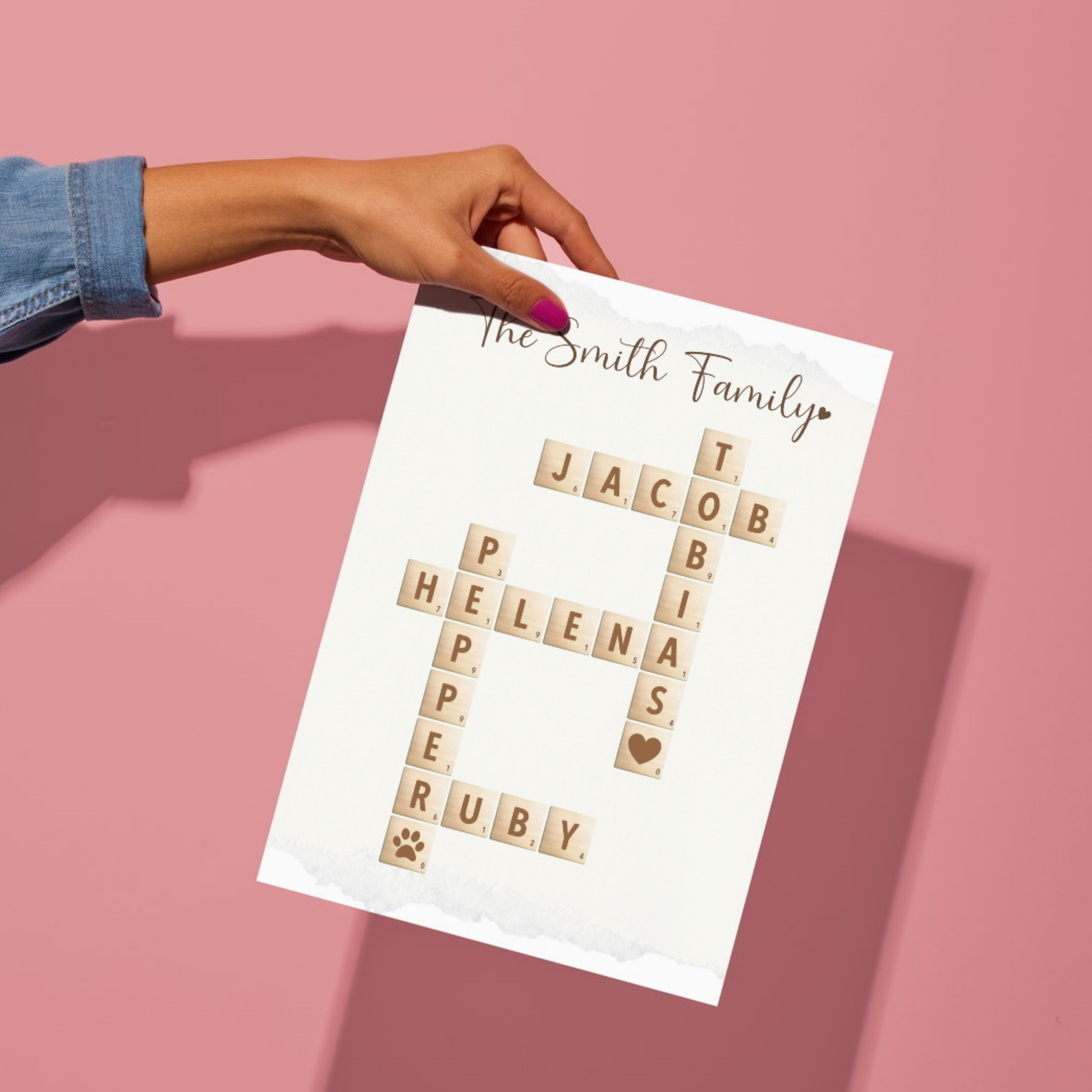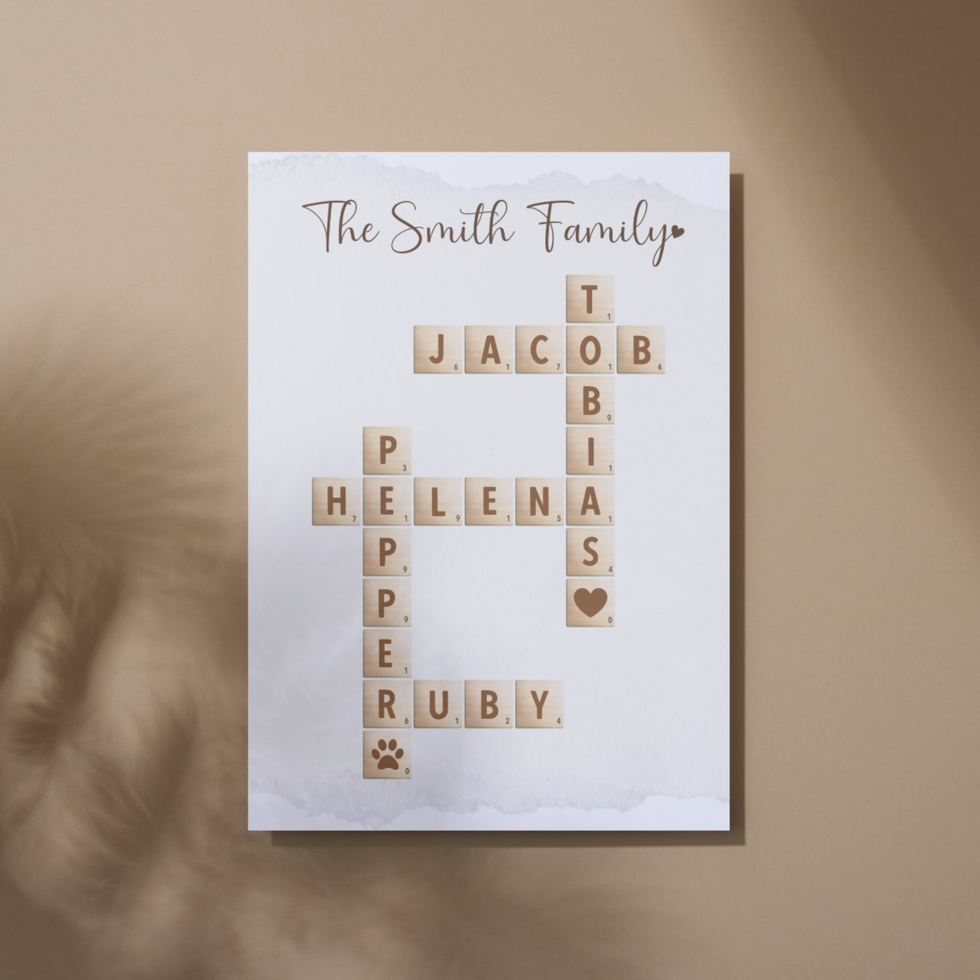 Personalized family name crossword art, scrabble tile name print, custom name puzzle gift, printable family sign with pets, DIY digital download family wall art, family name printable decor, anniversary gift for wife mom grandma, best friend name sign, custom couple crossword print, valentines wedding birthday gift idea, personalized home decor for her