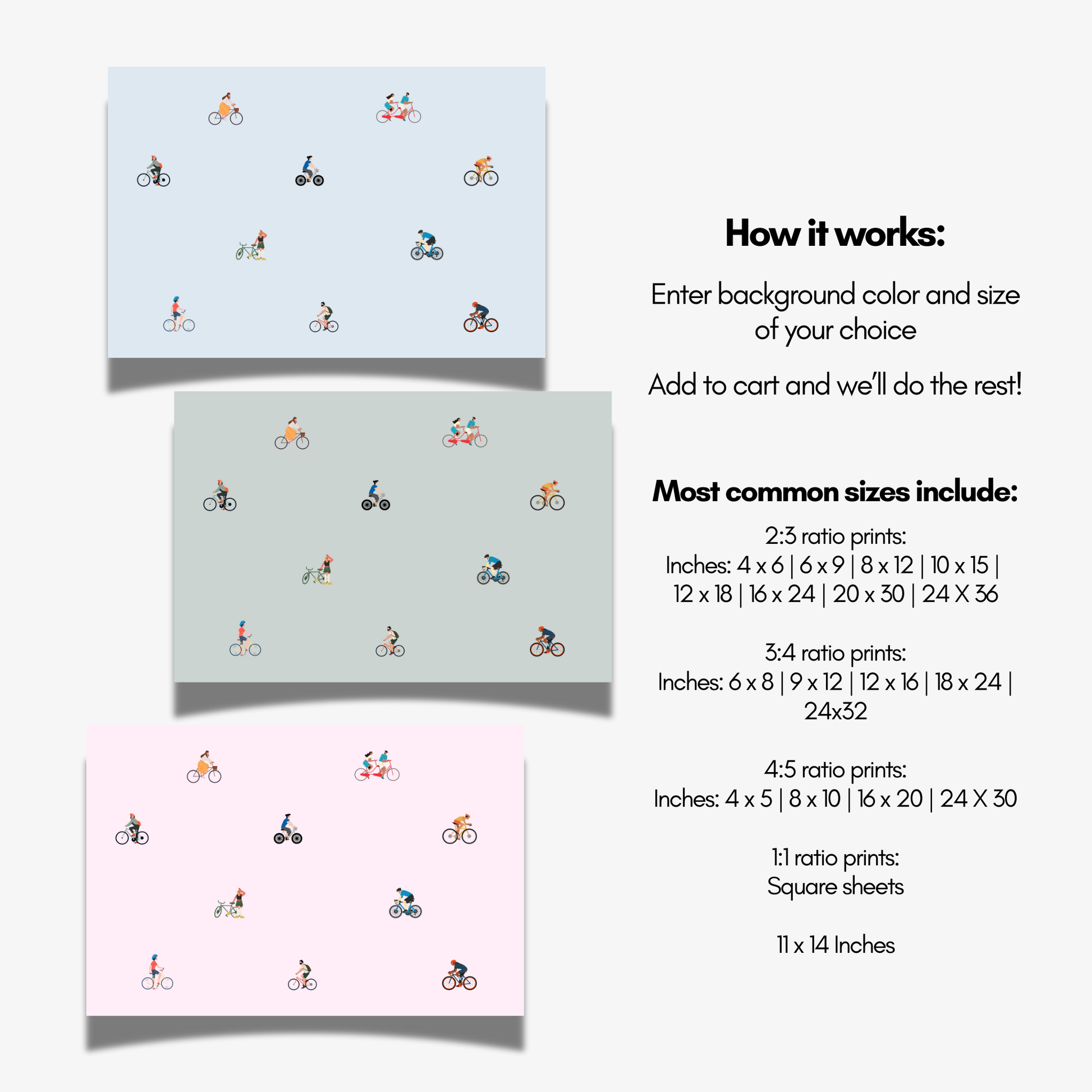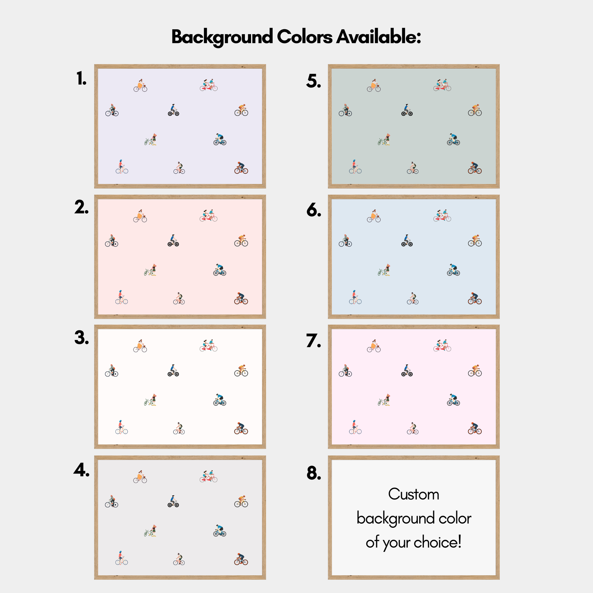 Celebrate the joy of cycling with this Custom Tiny Bicyclists Print, featuring minimalist riders in motion. Perfect for bike lovers, cyclists, and outdoor enthusiasts, this personalized wall art lets you choose your background color and size for a truly unique touch. 🚴