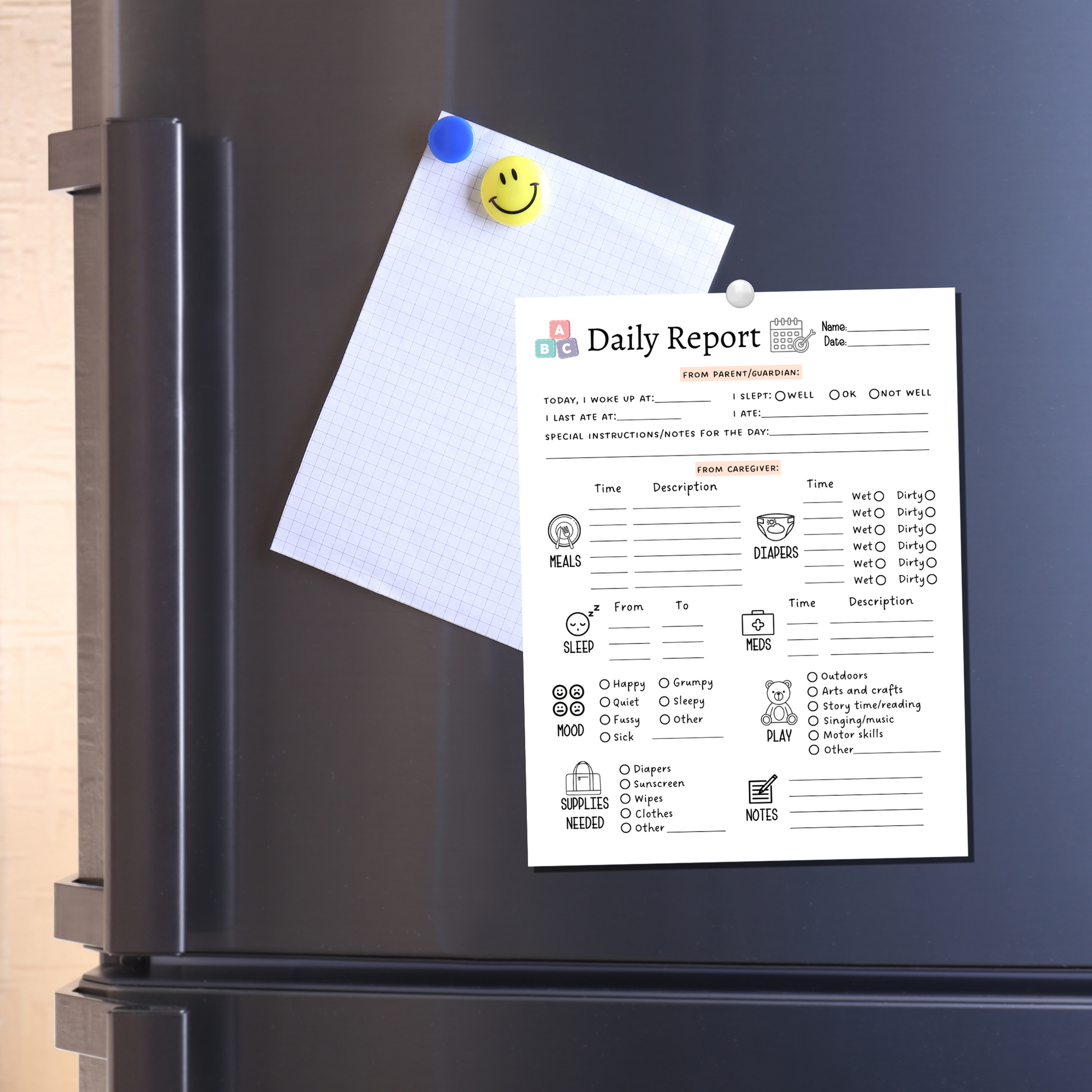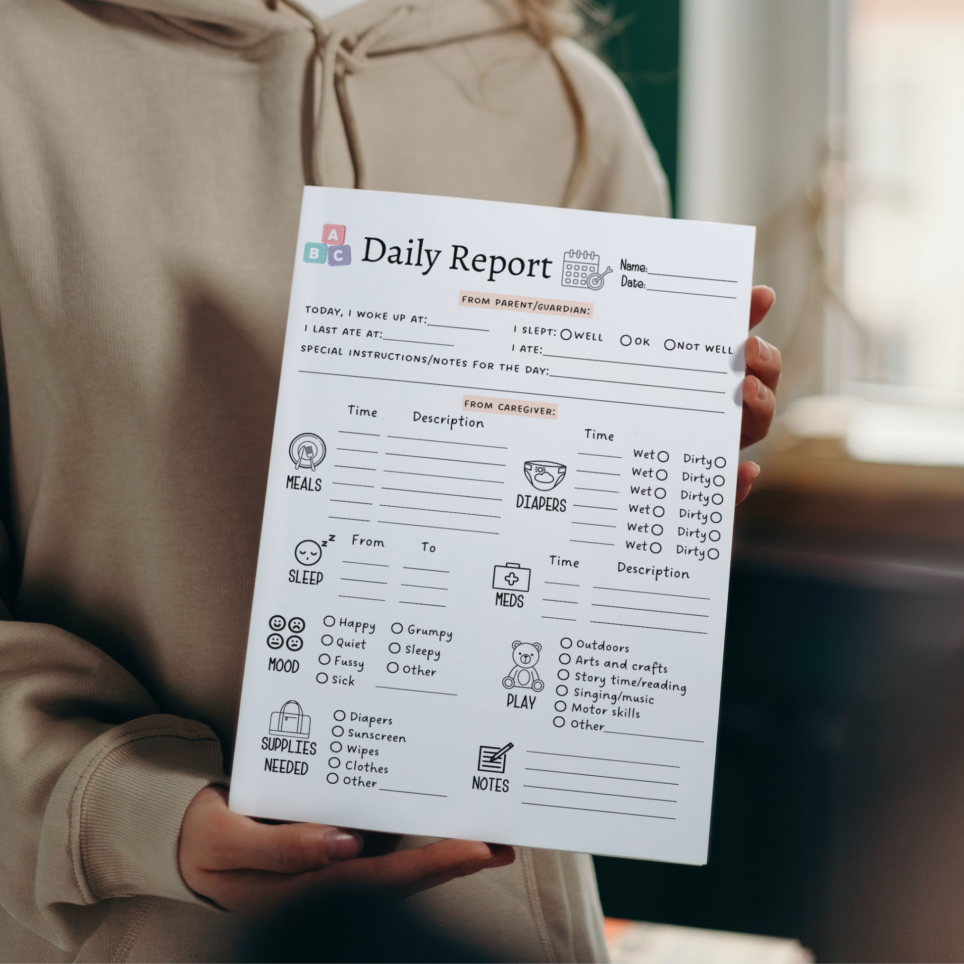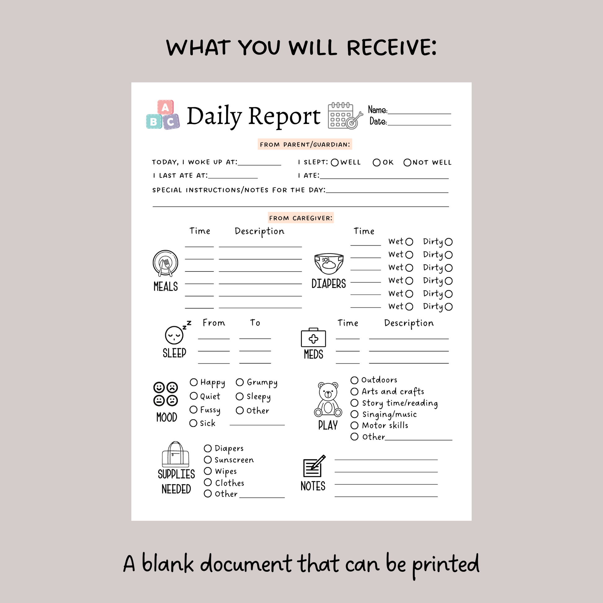 Daily Toddler Log Printable, Infant Baby Schedule for Preschool/ Babysitter