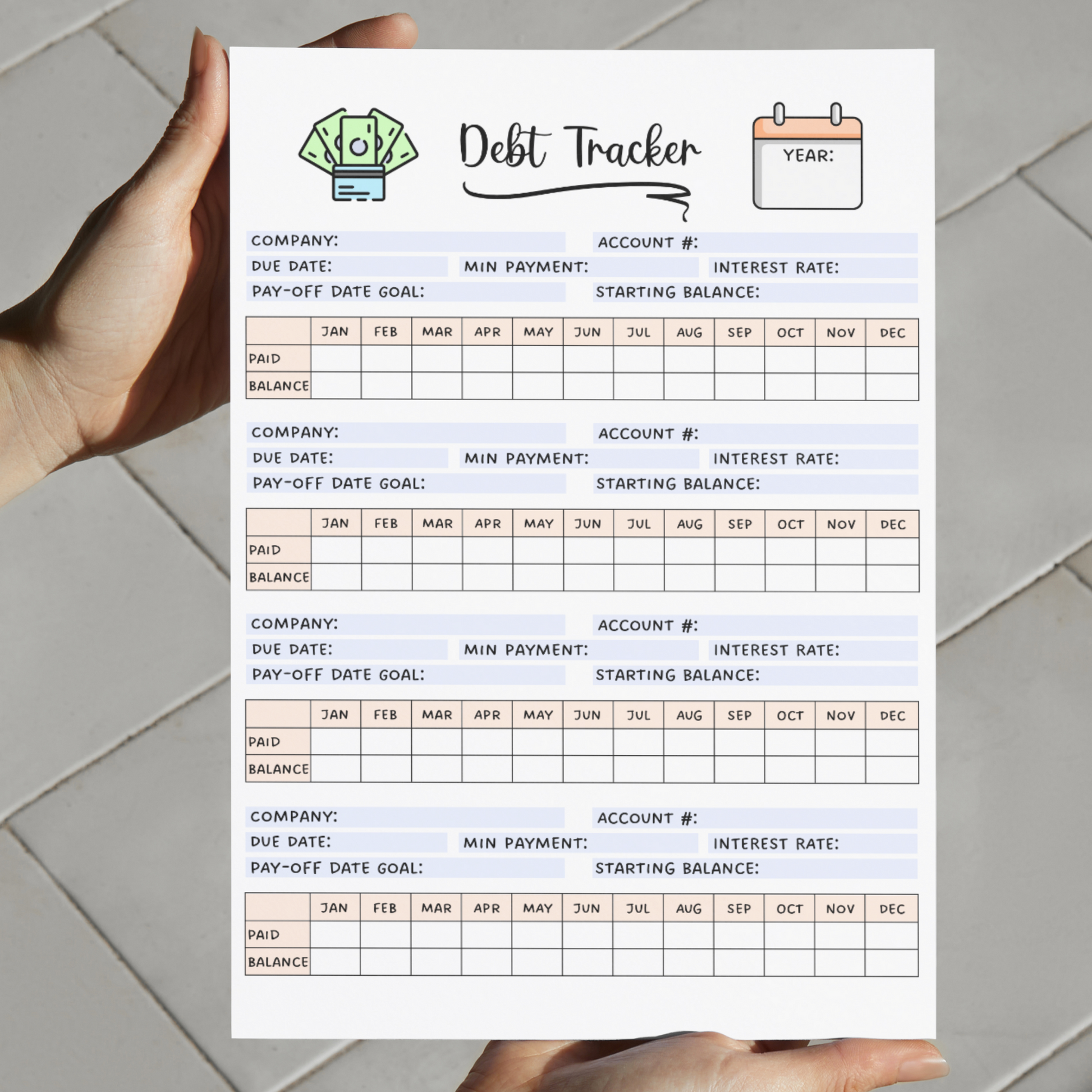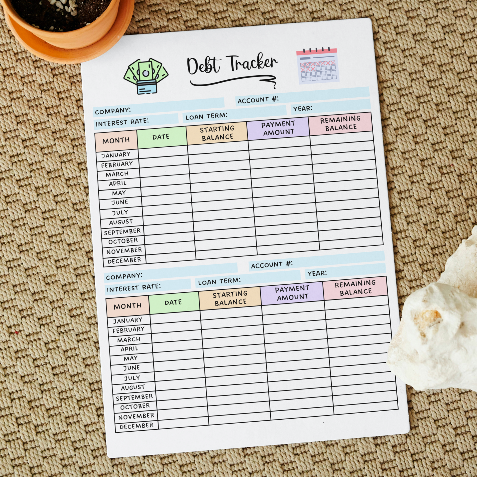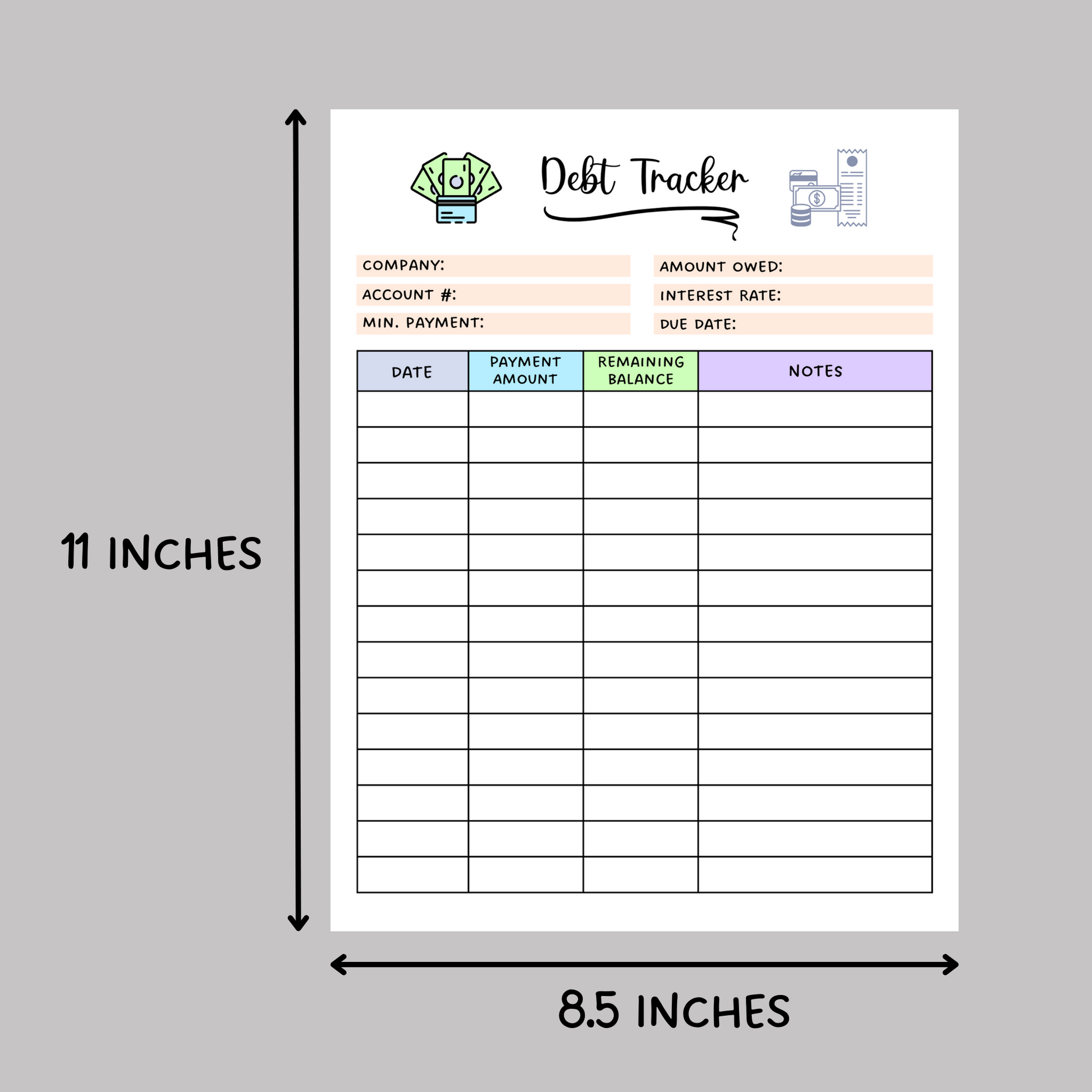 Debt Payment Tracker Printable, Financial Planner, Credit Card Expense Tracker