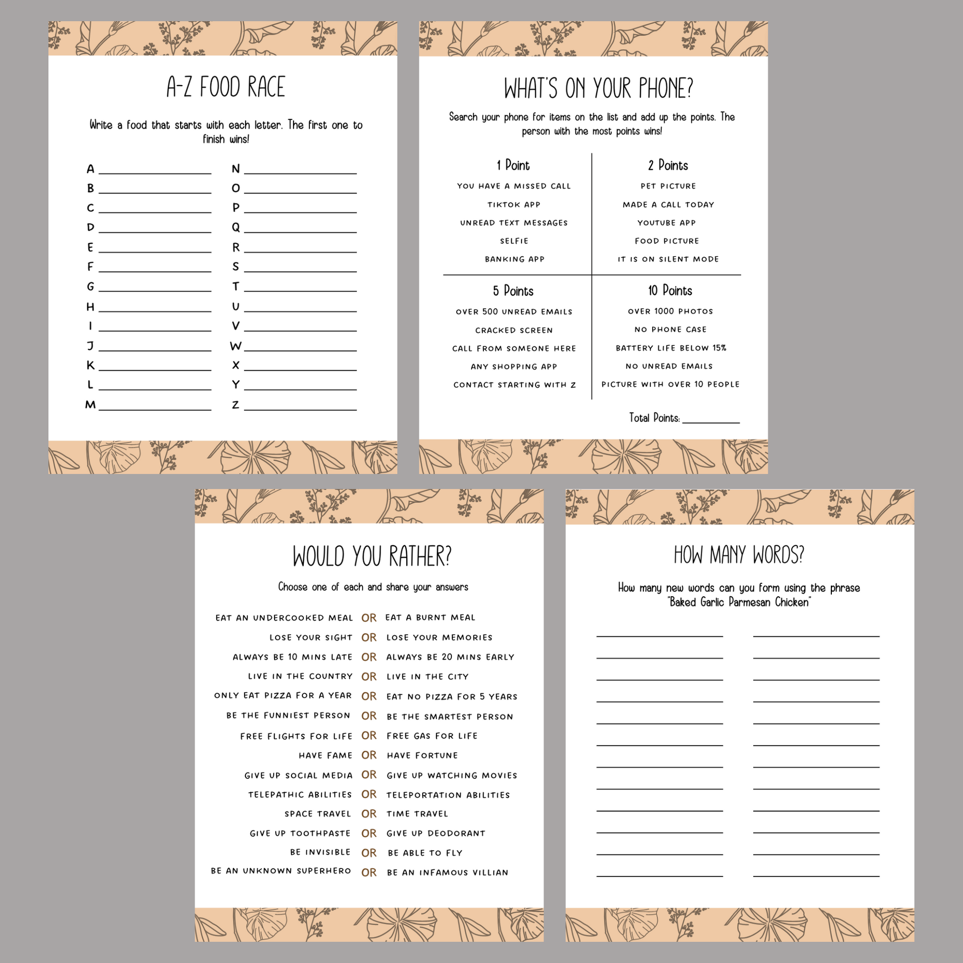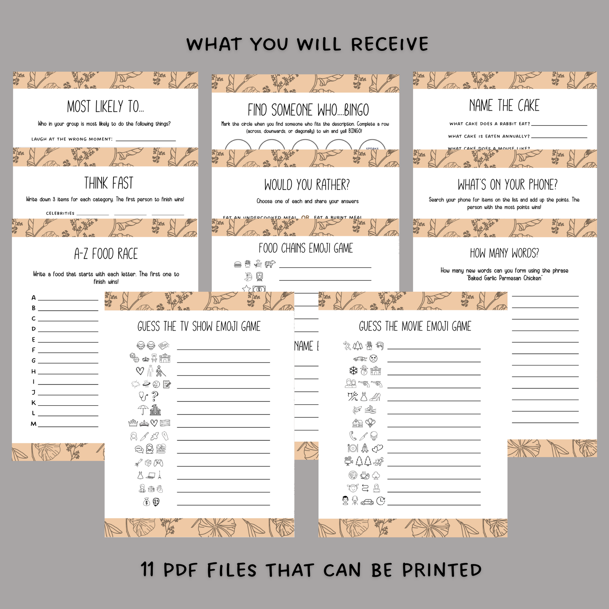 This dinner party games bundle is a printable PDF and an instant digital download! It includes everything you need for your next fun cocktail party, house party, dinner party, game night, birthday party and work meetings!