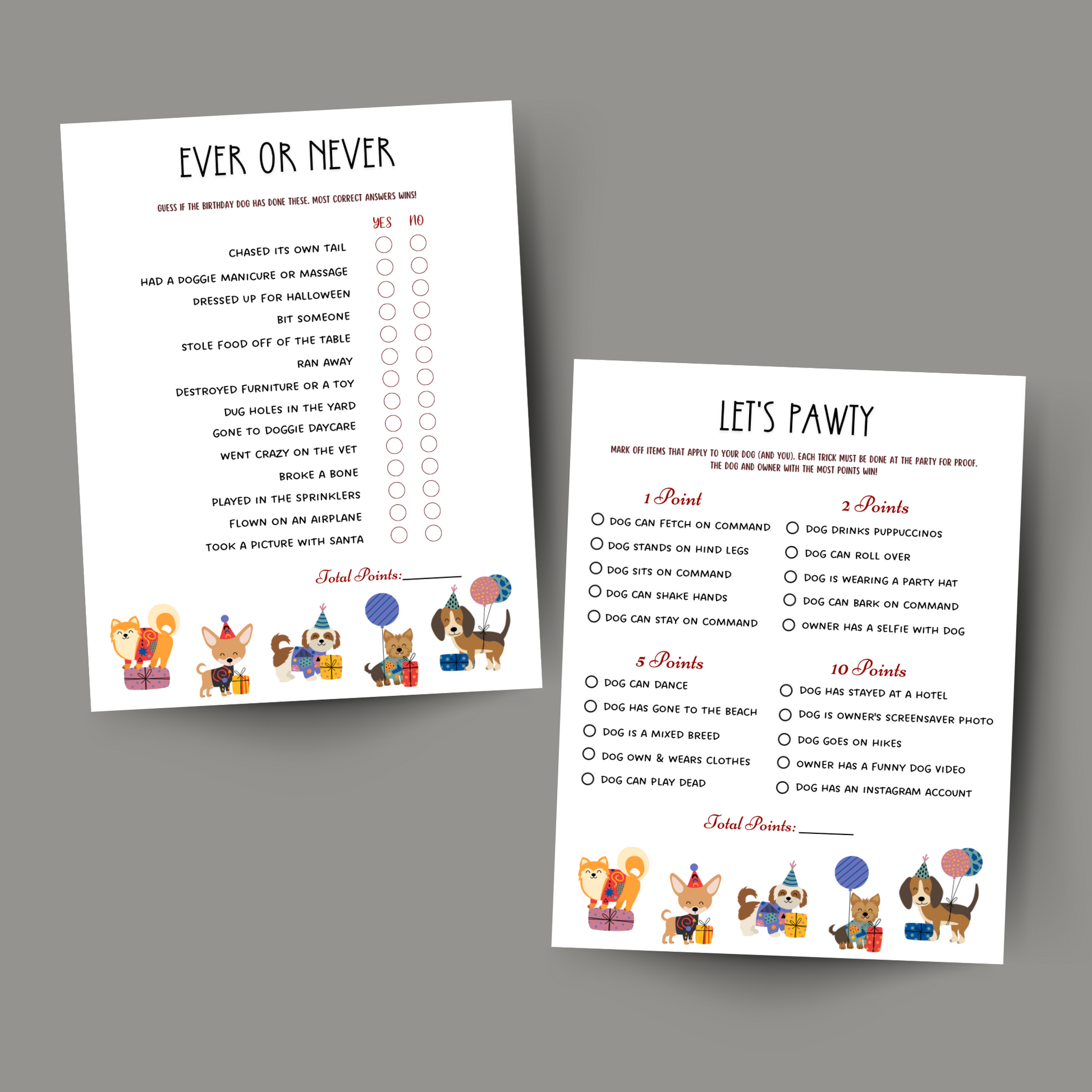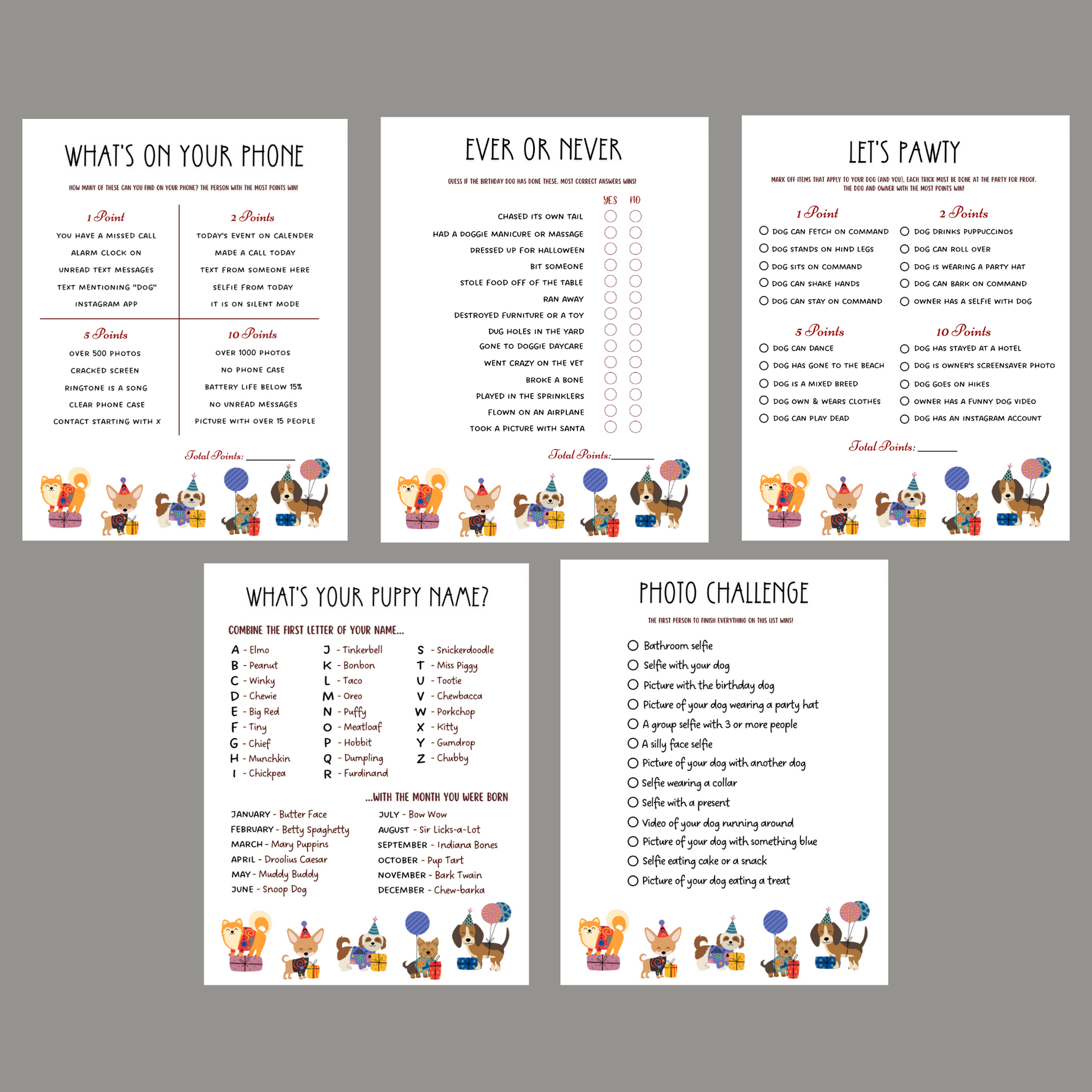 Dog Birthday Party Games Printable, Puppy Shower Pawty Activities