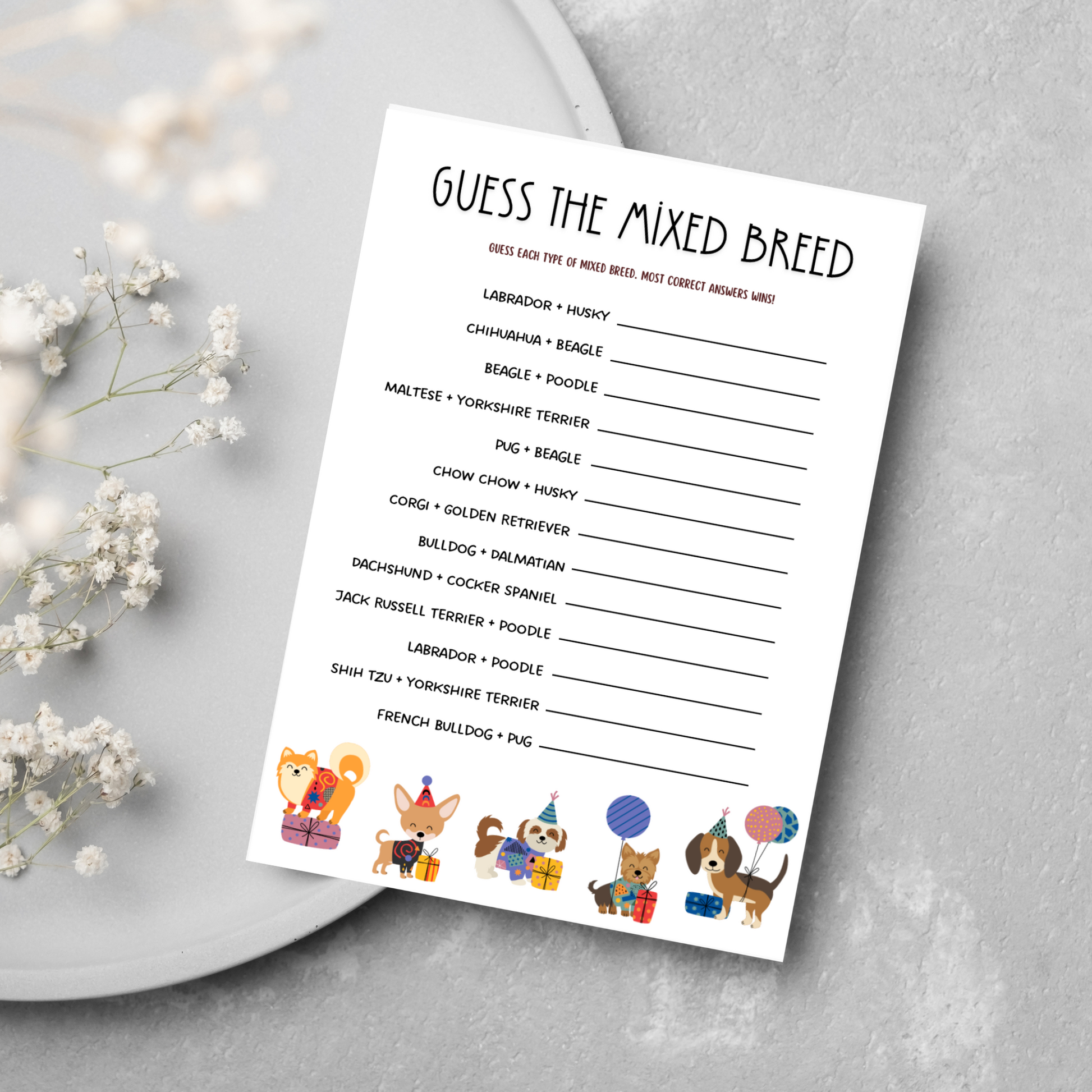 - What's Your Puppy Name (Includes complementary name tags for all your guests)