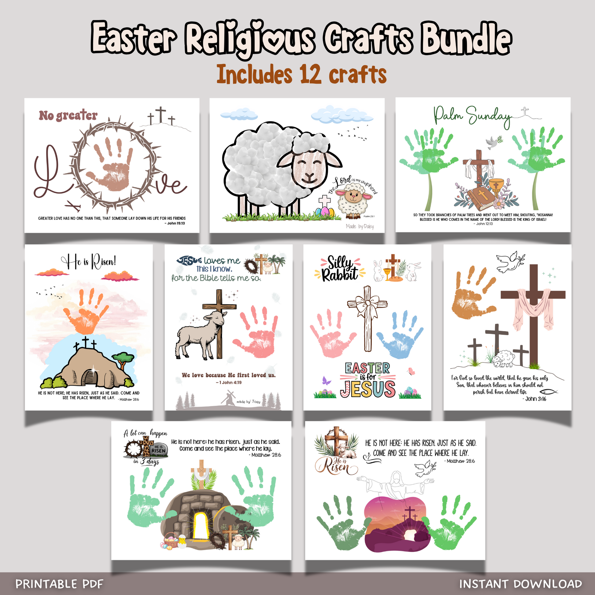 Celebrate the true meaning of Easter with this Christian handprint craft bundle, featuring unique Bible verse templates designed to teach, inspire, and create lasting memories. Perfect for Sunday school, homeschooling, and family activities, these crafts help children express their faith while making heartfelt keepsakes for Easter.