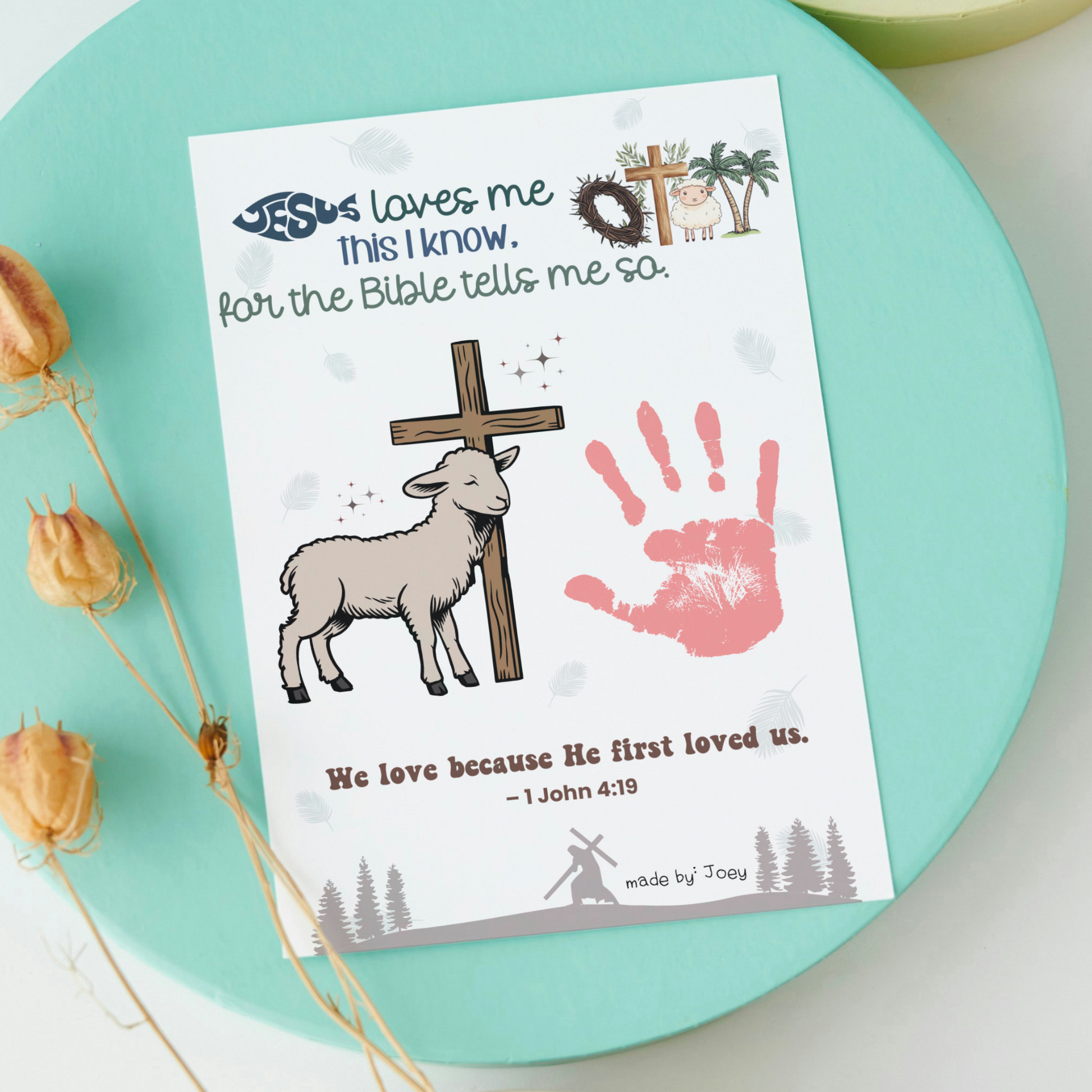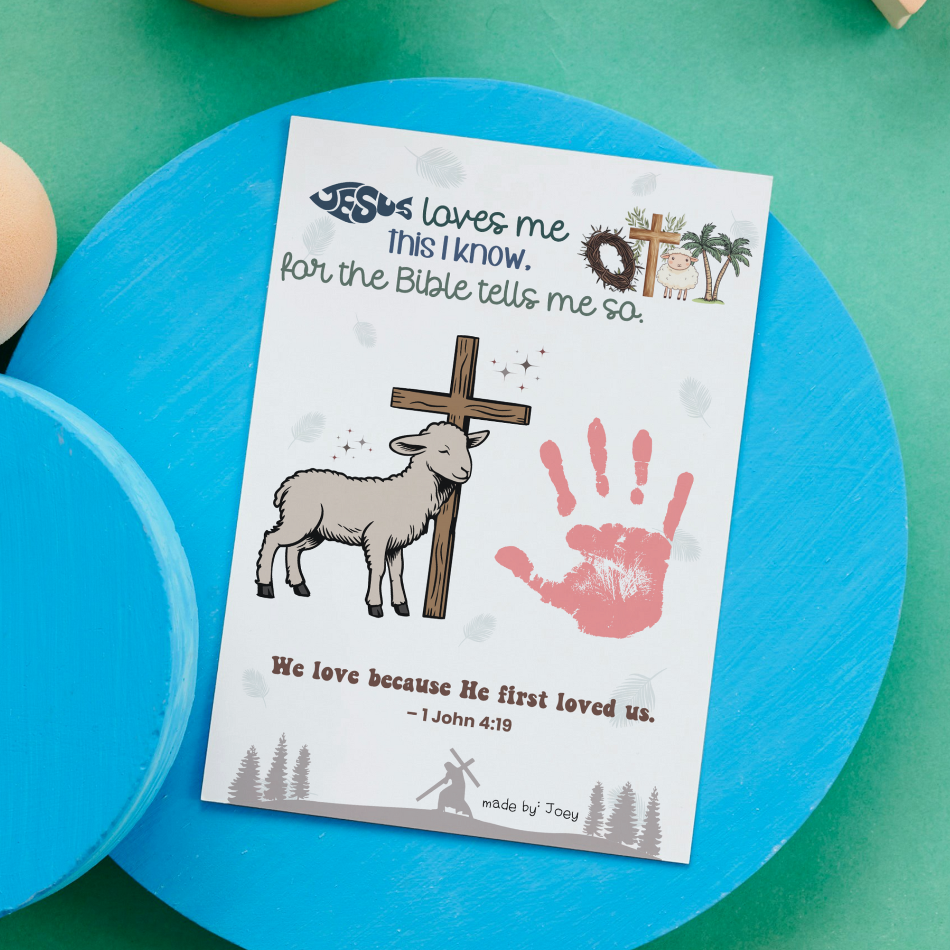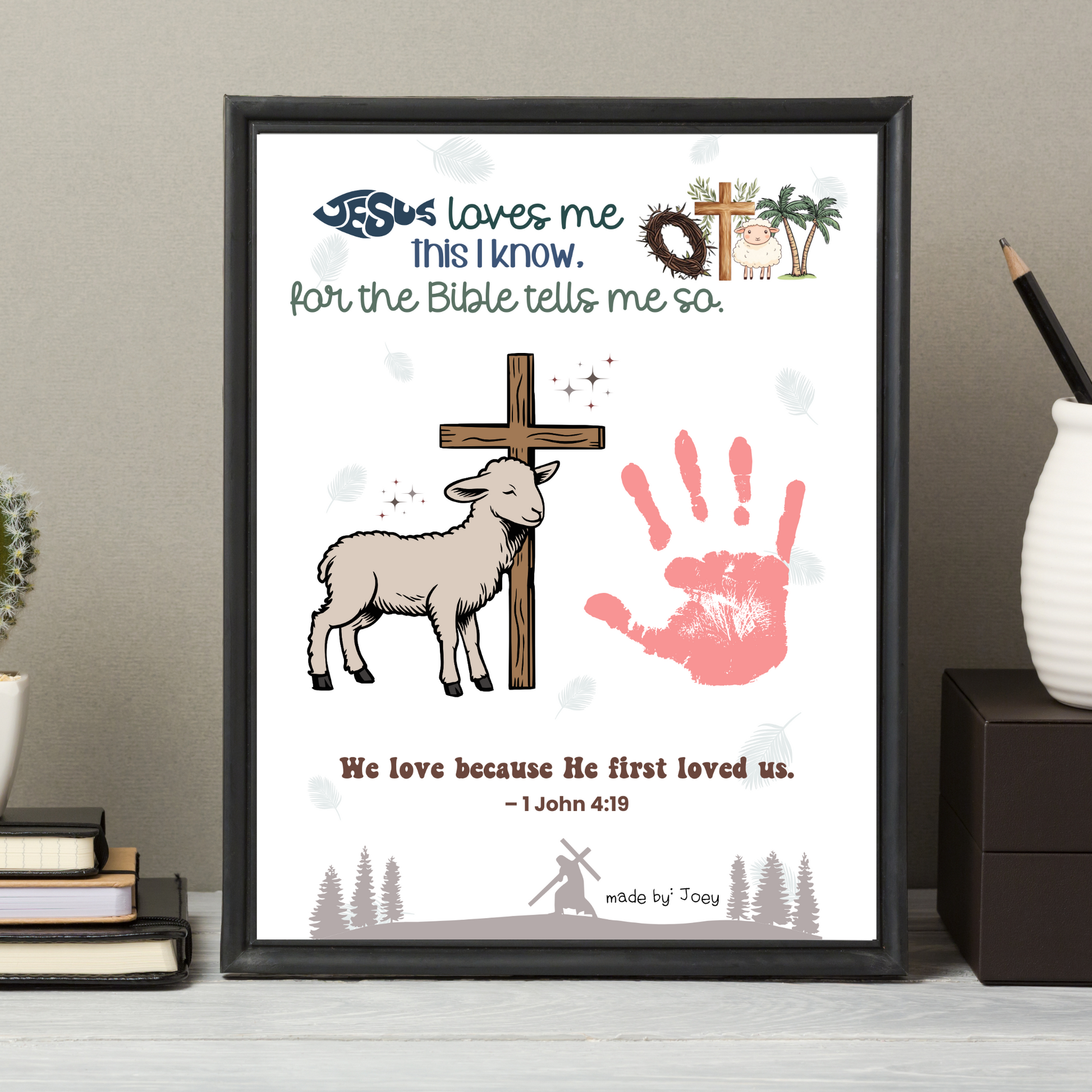 Jesus loves me craft, Christian Easter printable, faith-based kids activity, Bible verse handprint art, toddler Easter keepsake, preschool Christian craft, homeschool Bible lesson, Jesus resurrection activity, Sunday school Easter DIY, church classroom craft, personalized Easter gift, Christian nursery decor, newborn footprint art, scripture handprint keepsake, Easter faith-based printable, Palm Sunday craft for kids, Holy Week Bible lesson, religious Easter project, Christian Easter baby keepsake