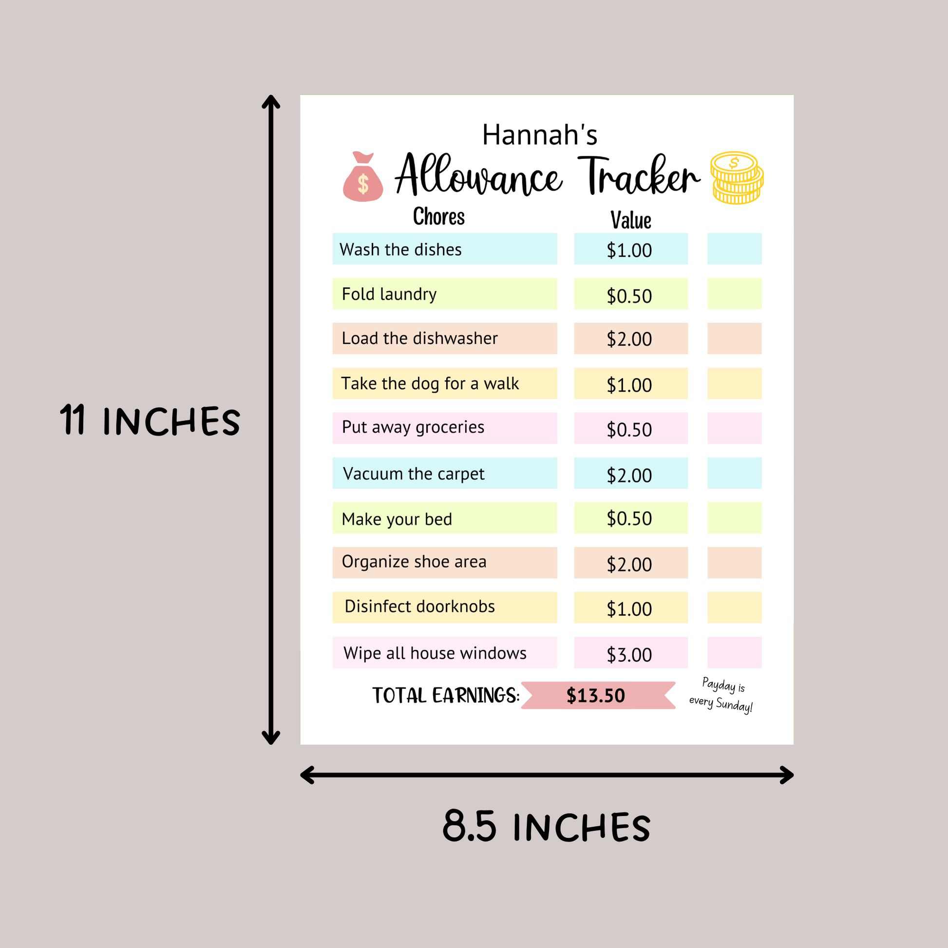 Editable Allowance Chart For Kids, Printable Chore Chart