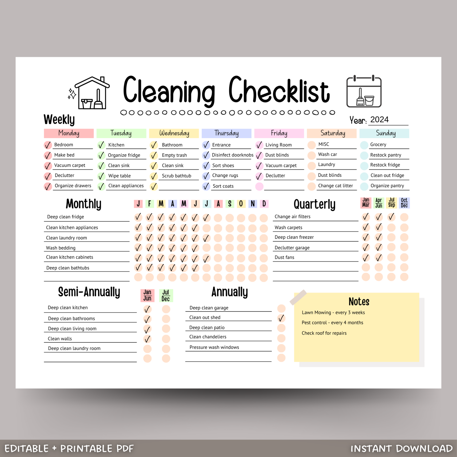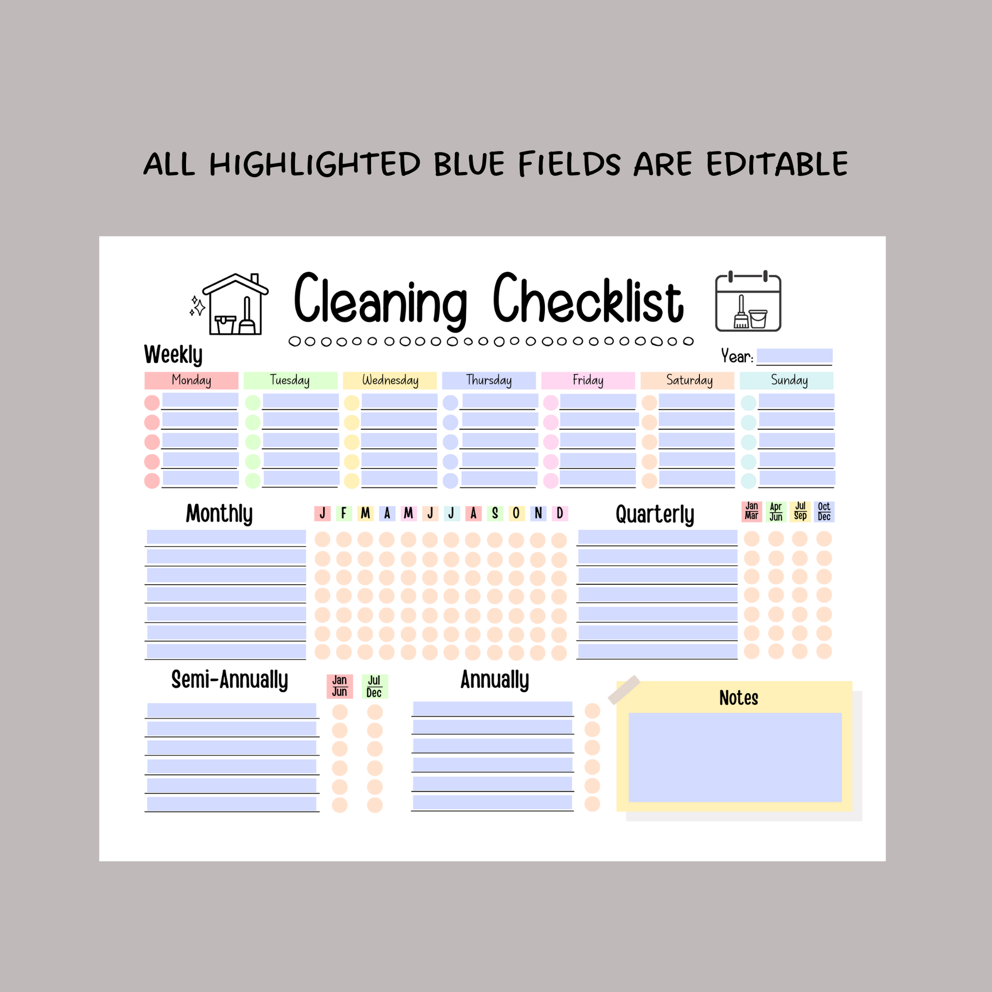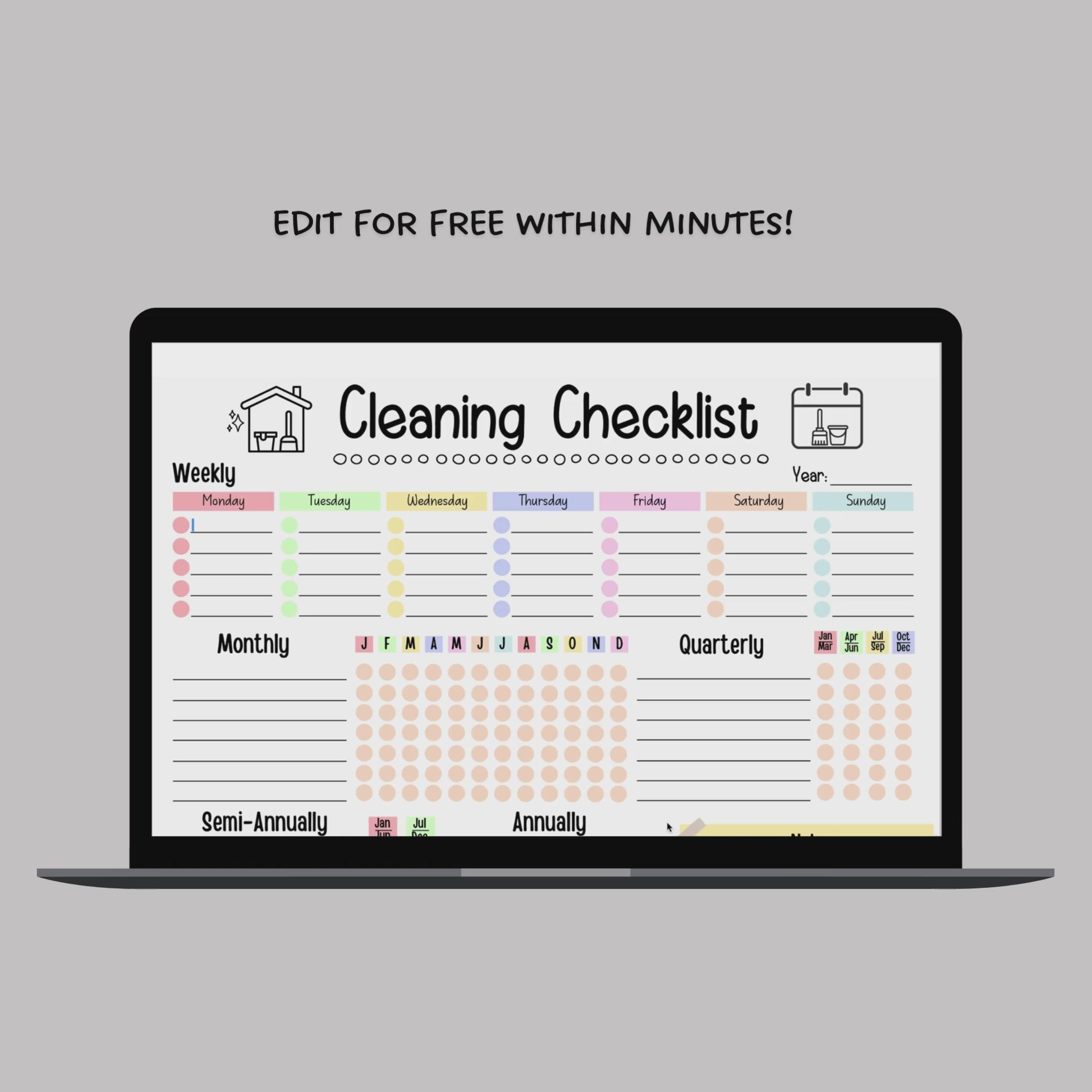 Editable Cleaning Schedule, Printable Digital Cleaning Checklist Planner