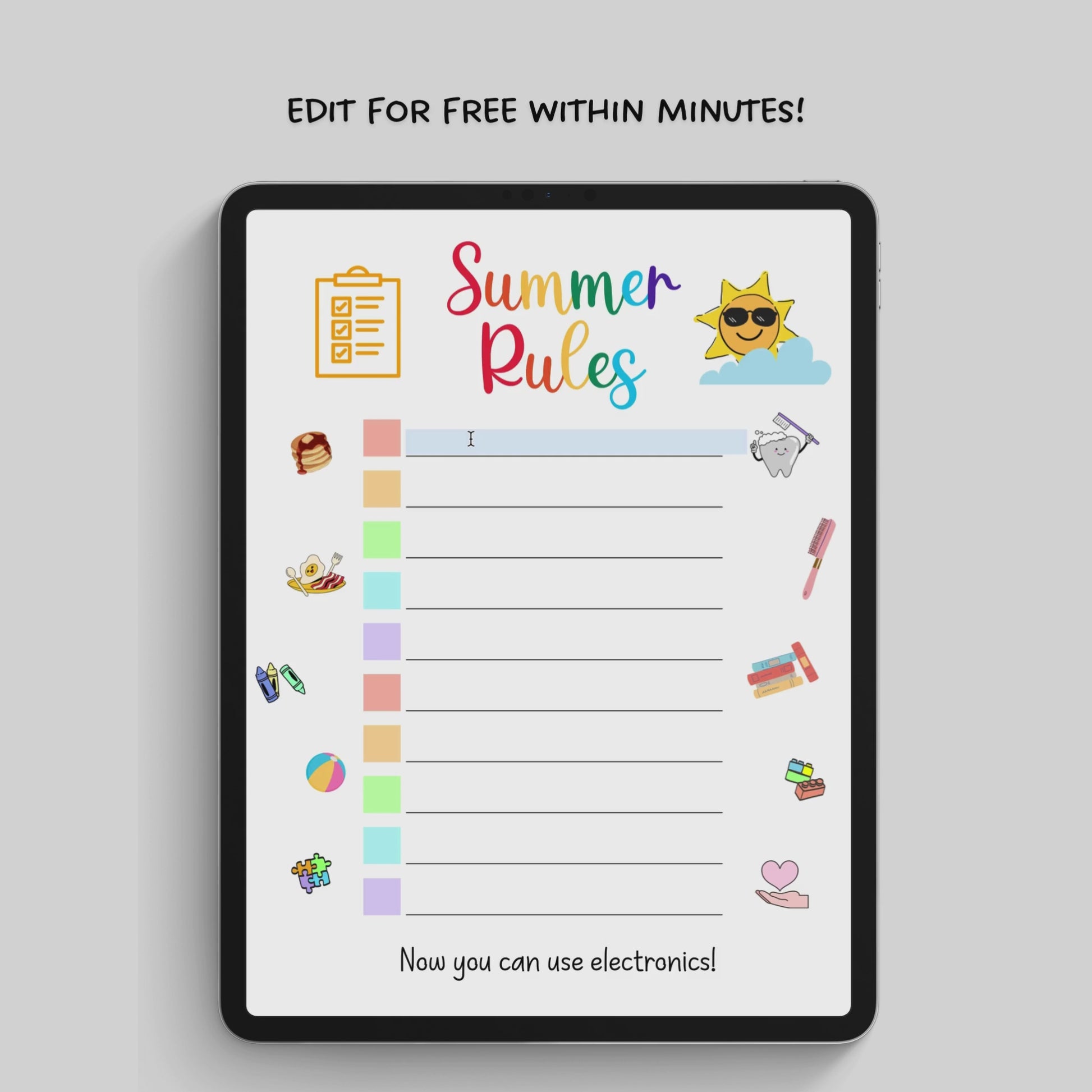 This personalized summer rules checklist is an editable, printable PDF and instant digital download. It is perfect for kids forming new habits over summer!