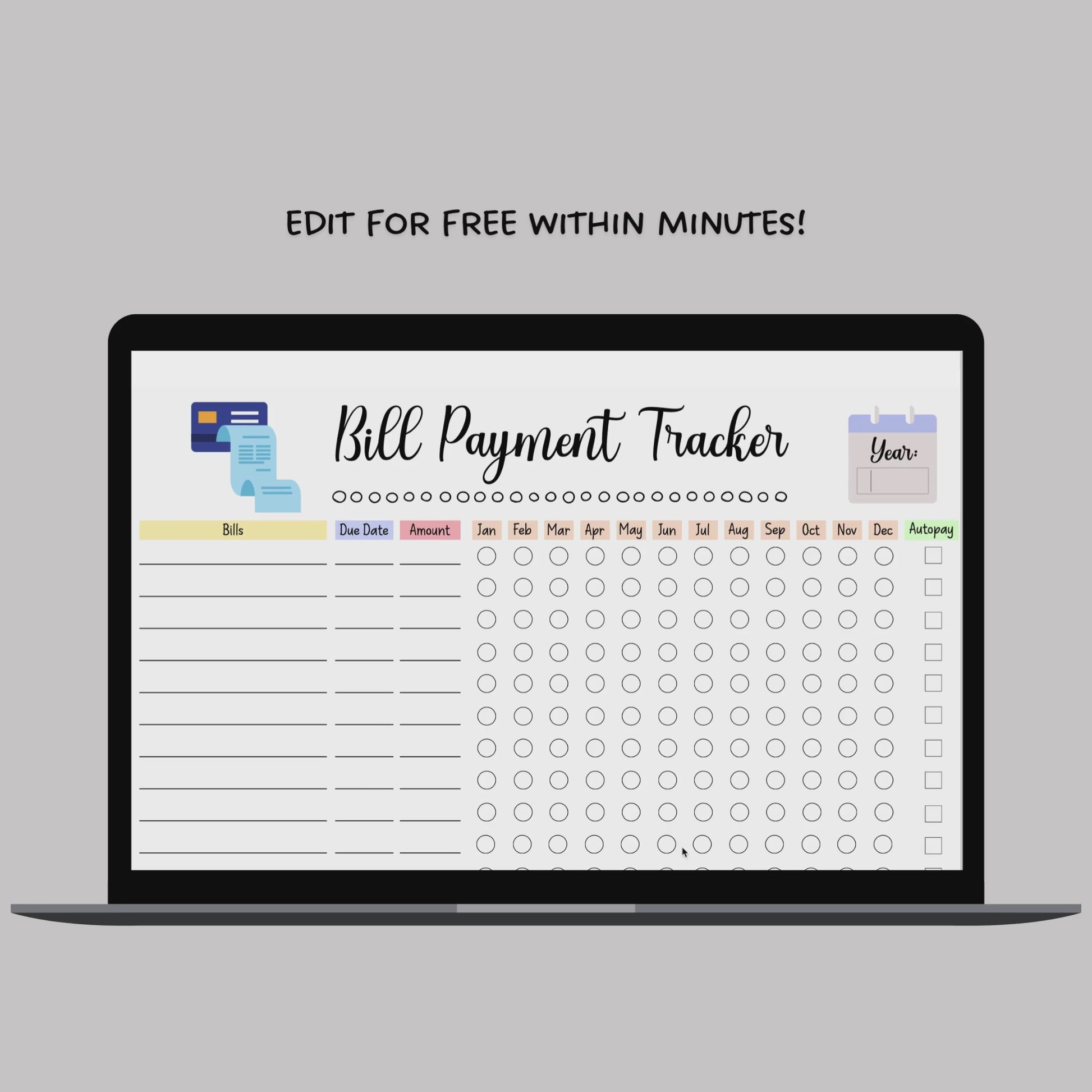 ⭐️ Editable Monthly Bills Tracker: