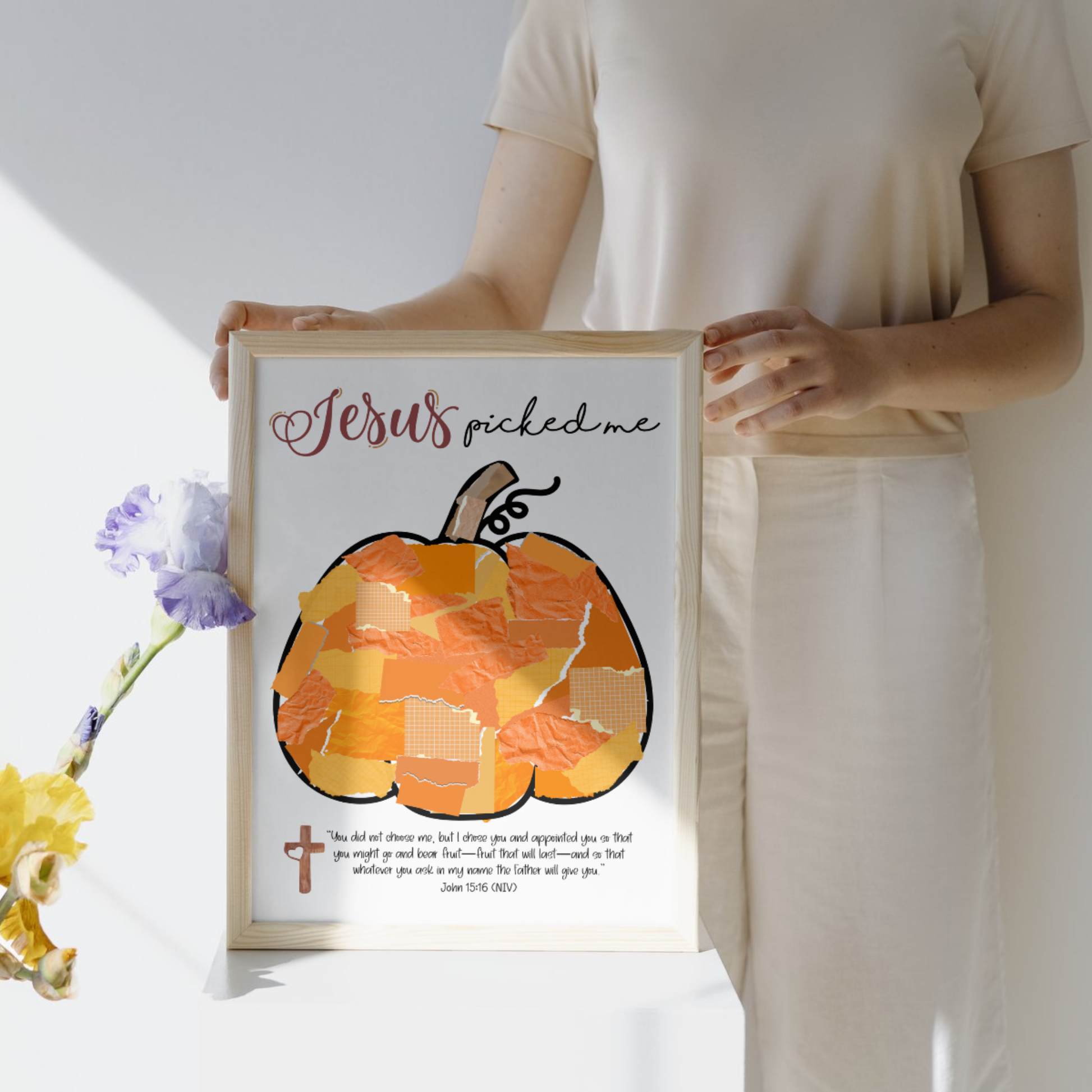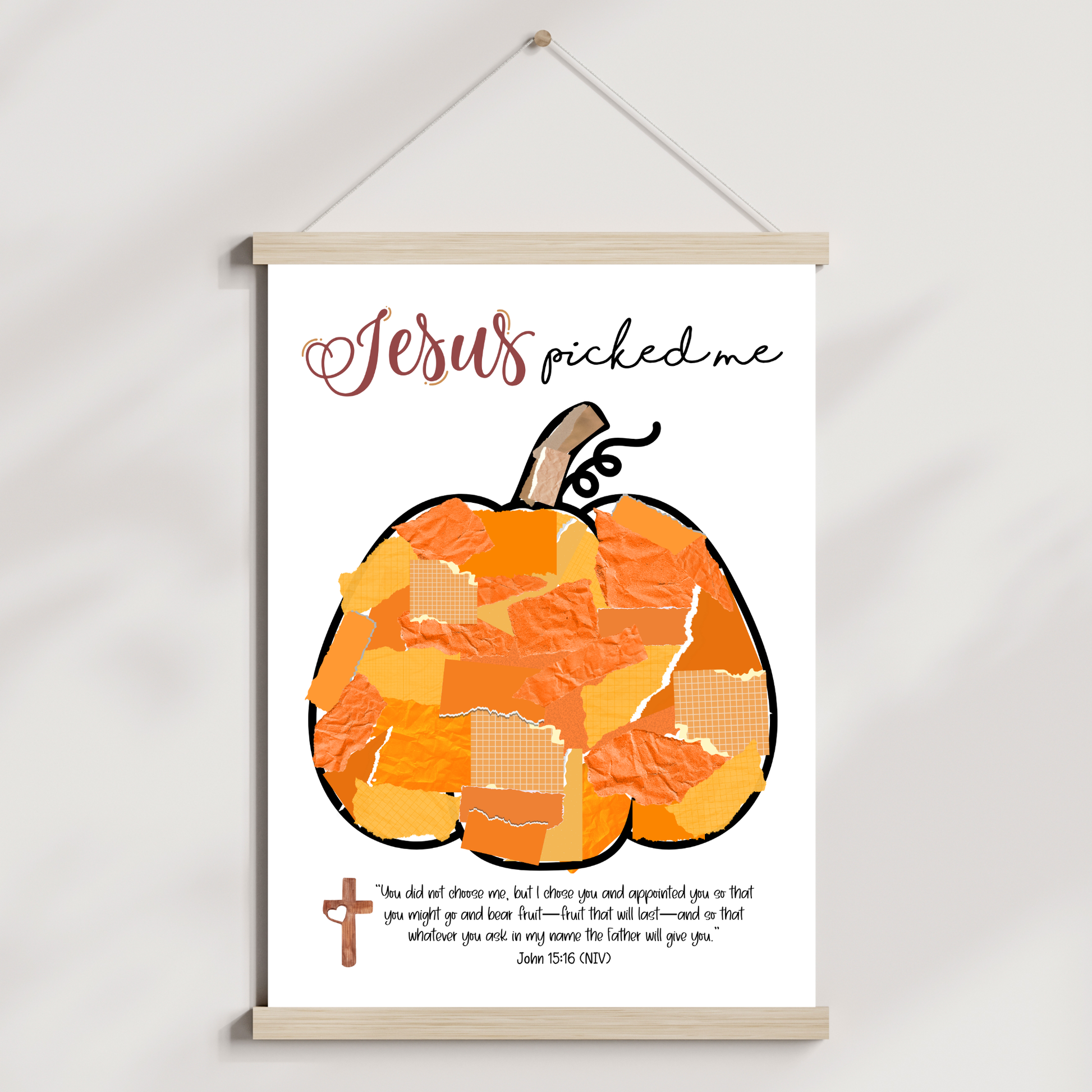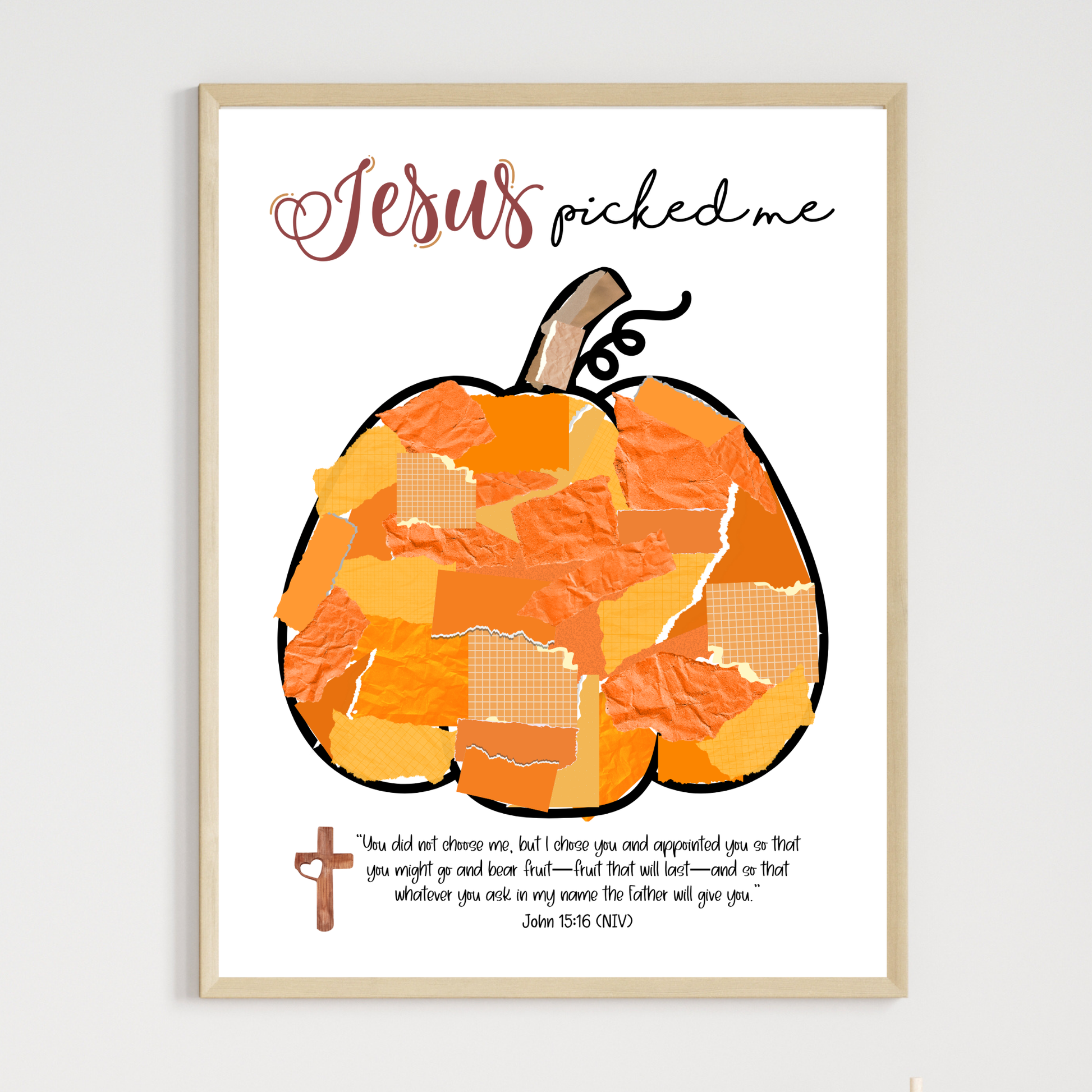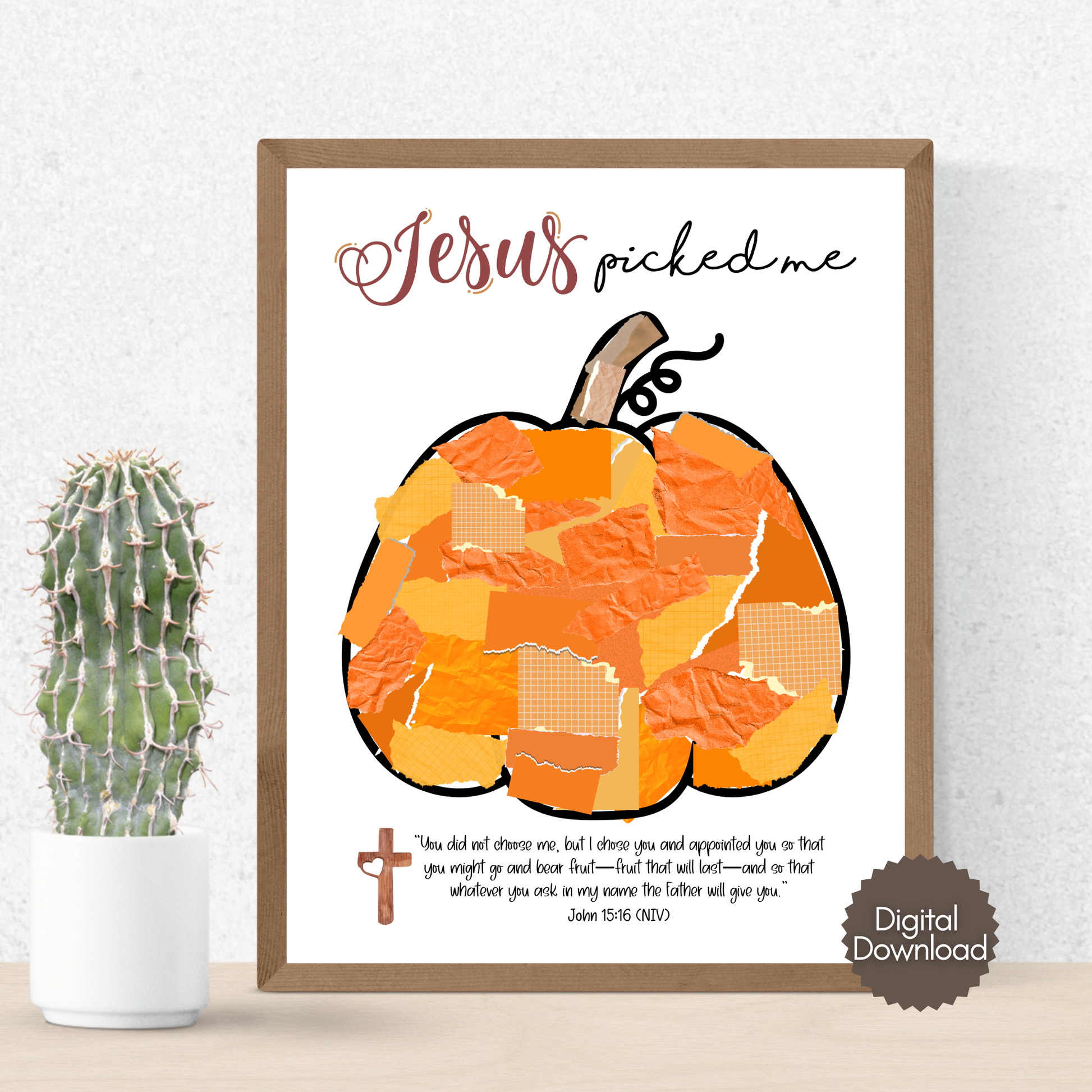 Celebrate the season of harvest with this Fall Pumpkin Torn Paper Craft Printable for Kids, a fun and faith-filled activity that reminds little ones of God’s love. Featuring the sweet message “Jesus Picked Me” with a Bible verse at the bottom, this Christian autumn craft is perfect for Thanksgiving activities, Sunday school lessons, Bible class, homeschool projects, and fall church events. ✝️