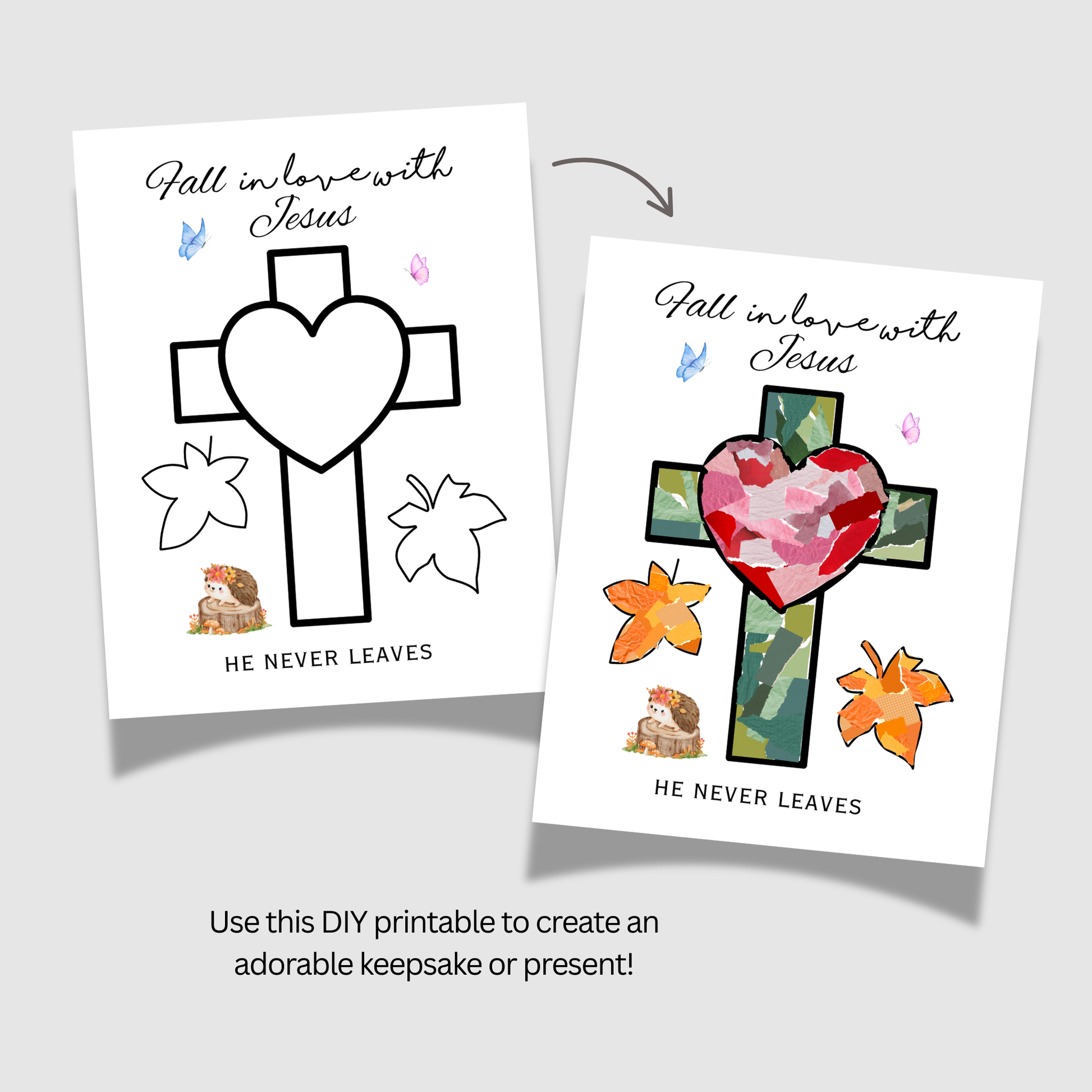 Celebrate the beauty of autumn and faith with this Fall in Love with Jesus He Never Leaves Paper Cross Craft for kids! This Christian fall activity is simple, fun, and meaningful, perfect for teaching children about God’s love while creating a colorful autumn keepsake. ✝️