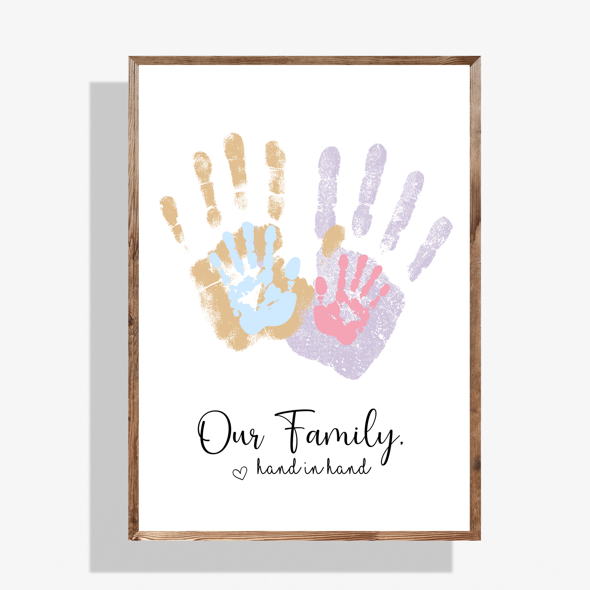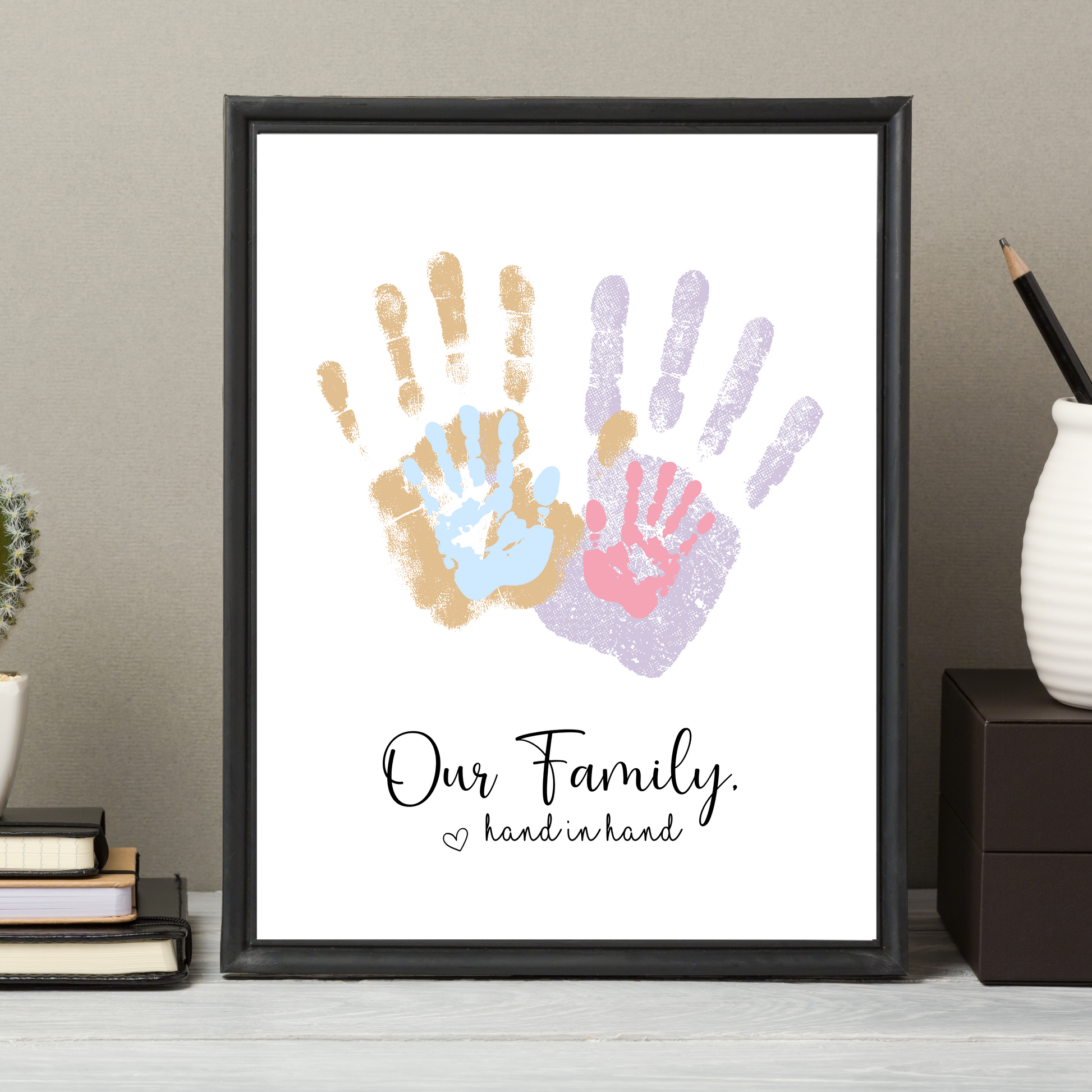 family handprint craft printable, DIY footprint art keepsake, memory gift for mom dad kids, Mother’s Day handprint template, Father’s Day family activity, baby toddler craft idea, siblings handprint art, gift for grandparents from kids, family tree wall art printable, personalized family decor download, home bonding activity