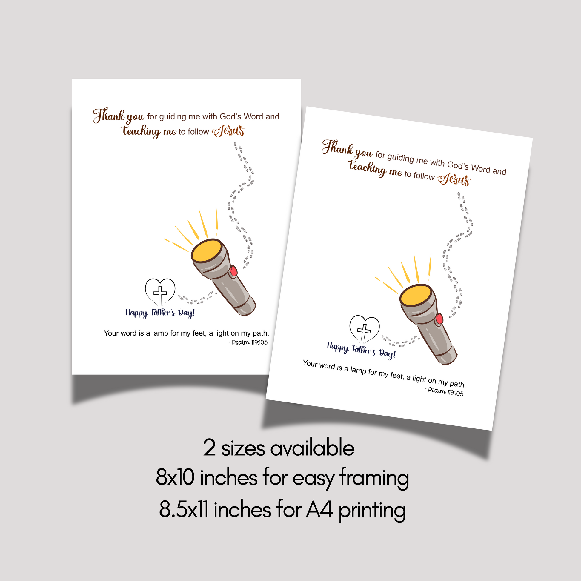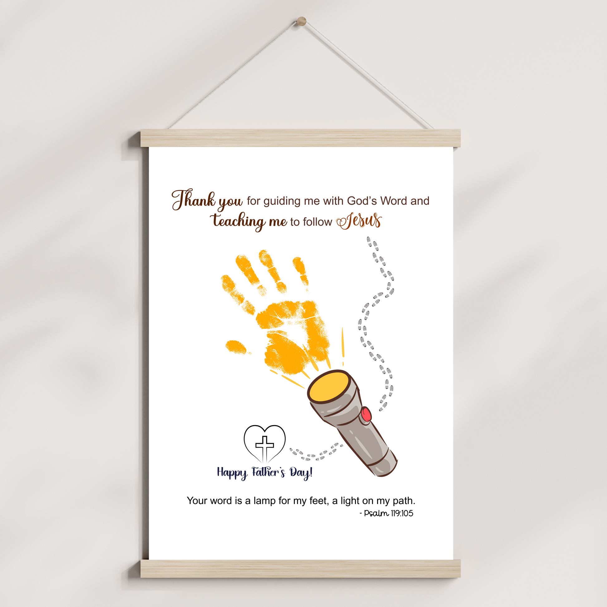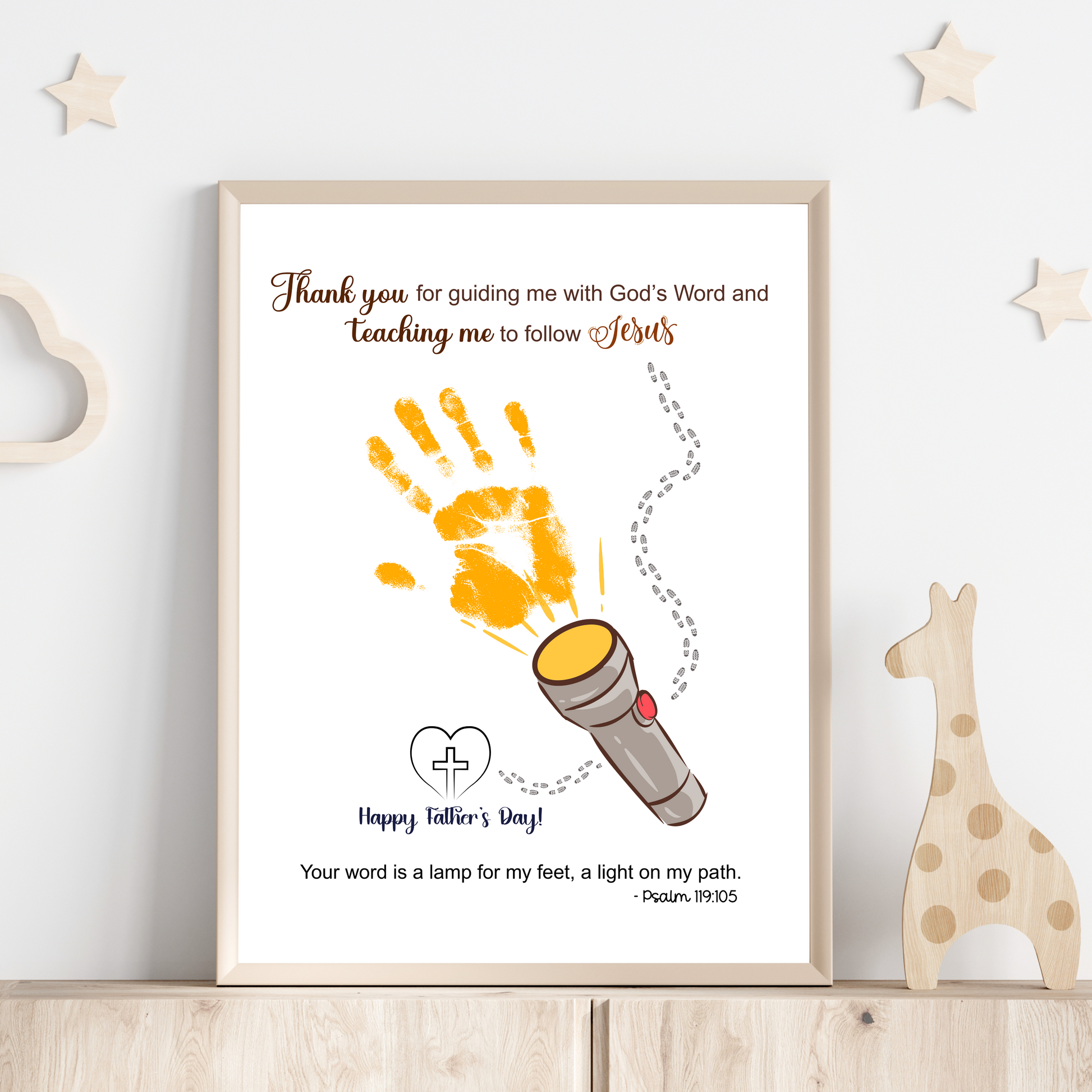 Looking for a meaningful and fun way to celebrate Father’s Day with your little ones? This Christian handprint craft is a beautiful way for children to honor their dad or grandpa while reflecting on God’s Word. Featuring Psalm 119:105, this keepsake card thanks Dad for guiding with God’s word and teaching to follow Jesus.