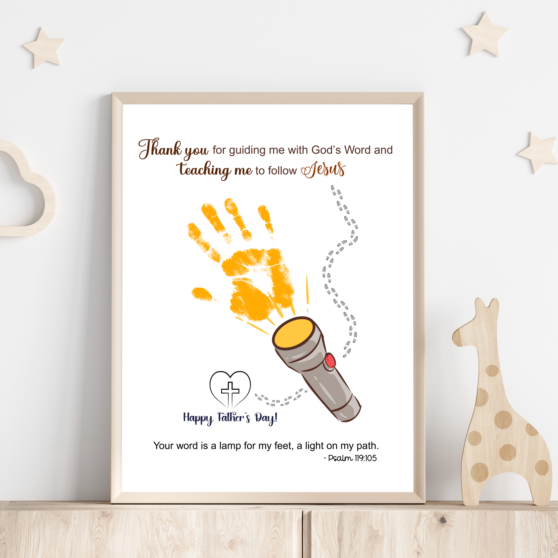 This special craft bundle is more than a gift — it’s a faith-filled memory to be cherished by Dad or Grandpa forever. Let your child’s tiny handprint/ footprint shine as a symbol of love, gratitude, and God’s guiding light. 🕊️