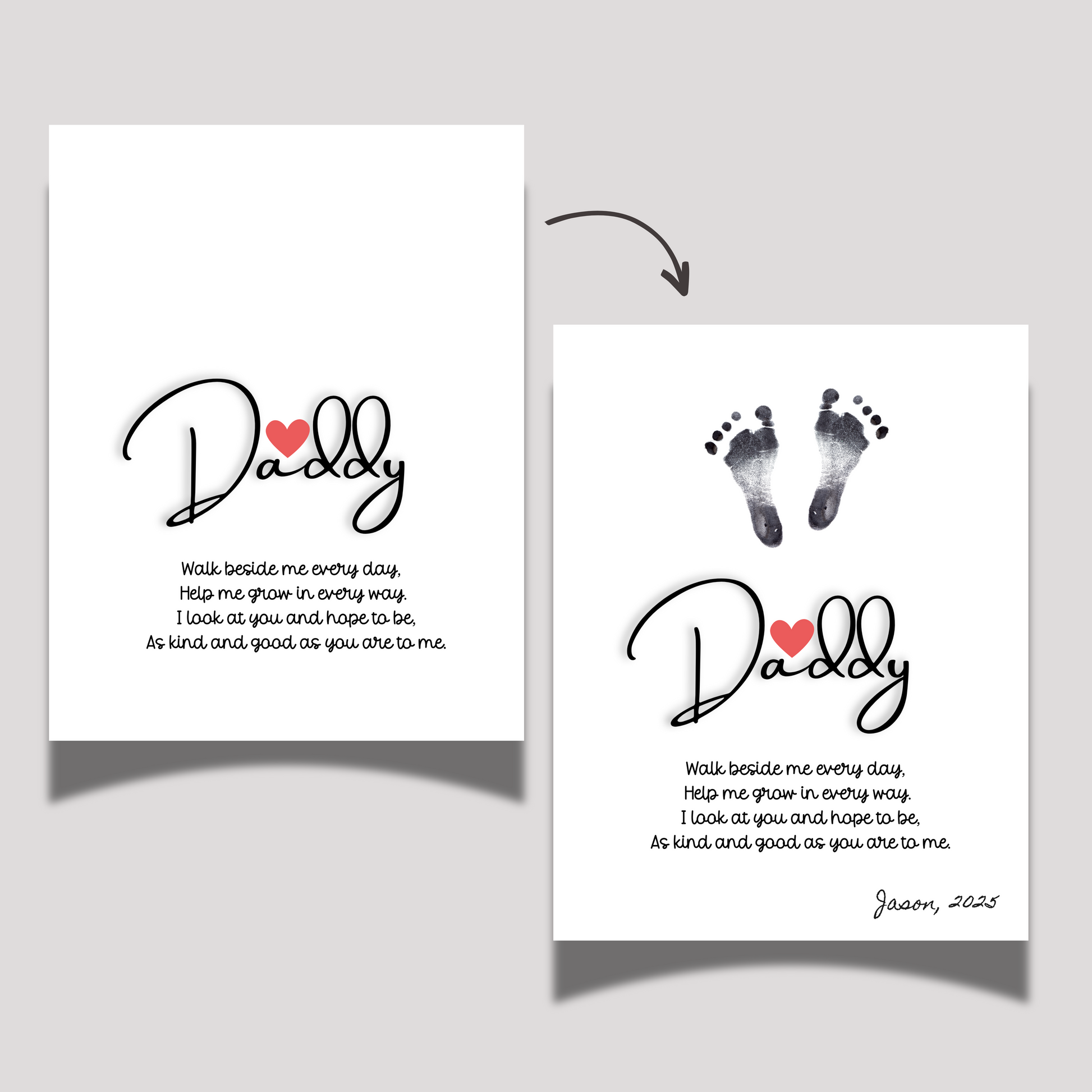 💕 Disclaimer: The art showcased in the listing photos may not be of the same size for every child. Each child has a unique size, and variations in handprints and footprints are to be expected. We strive to capture the essence and charm of your child's prints, but please understand that individual differences may influence the size and proportions. If you'd like to make any changes to the printables, please send me a message!