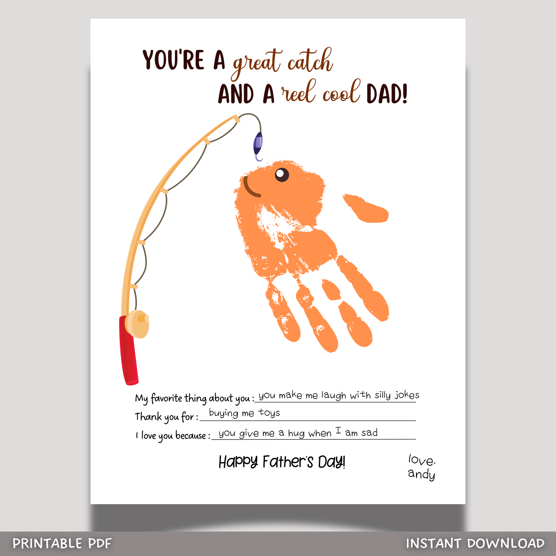 Fathers Day Handprint Craft for Kids Printable, DIY Dad Card Art Personalized Gift