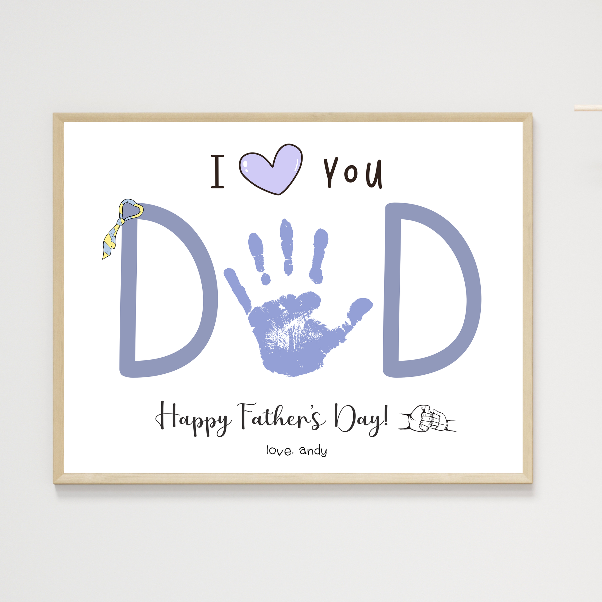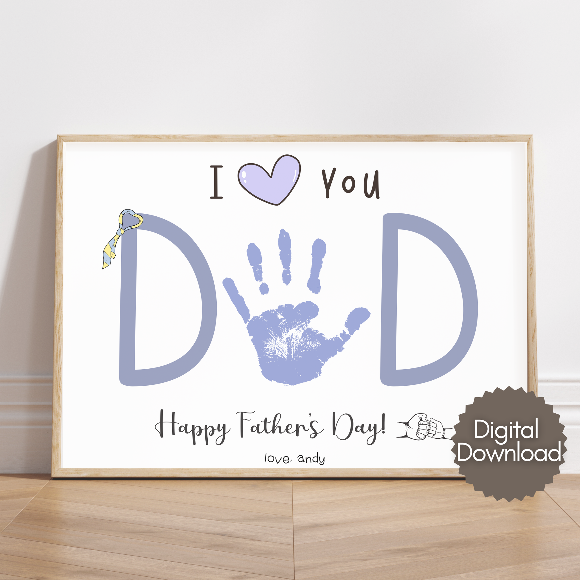 Father’s Day handprint craft, I love you dad printable, handprint gift from baby, toddler or kids, keepsake art for dad, birthday DIY gift for father, printable craft for preschool daycare kindergarten, Father’s Day activity for children, digital dad gift from kids, handprint art for dad