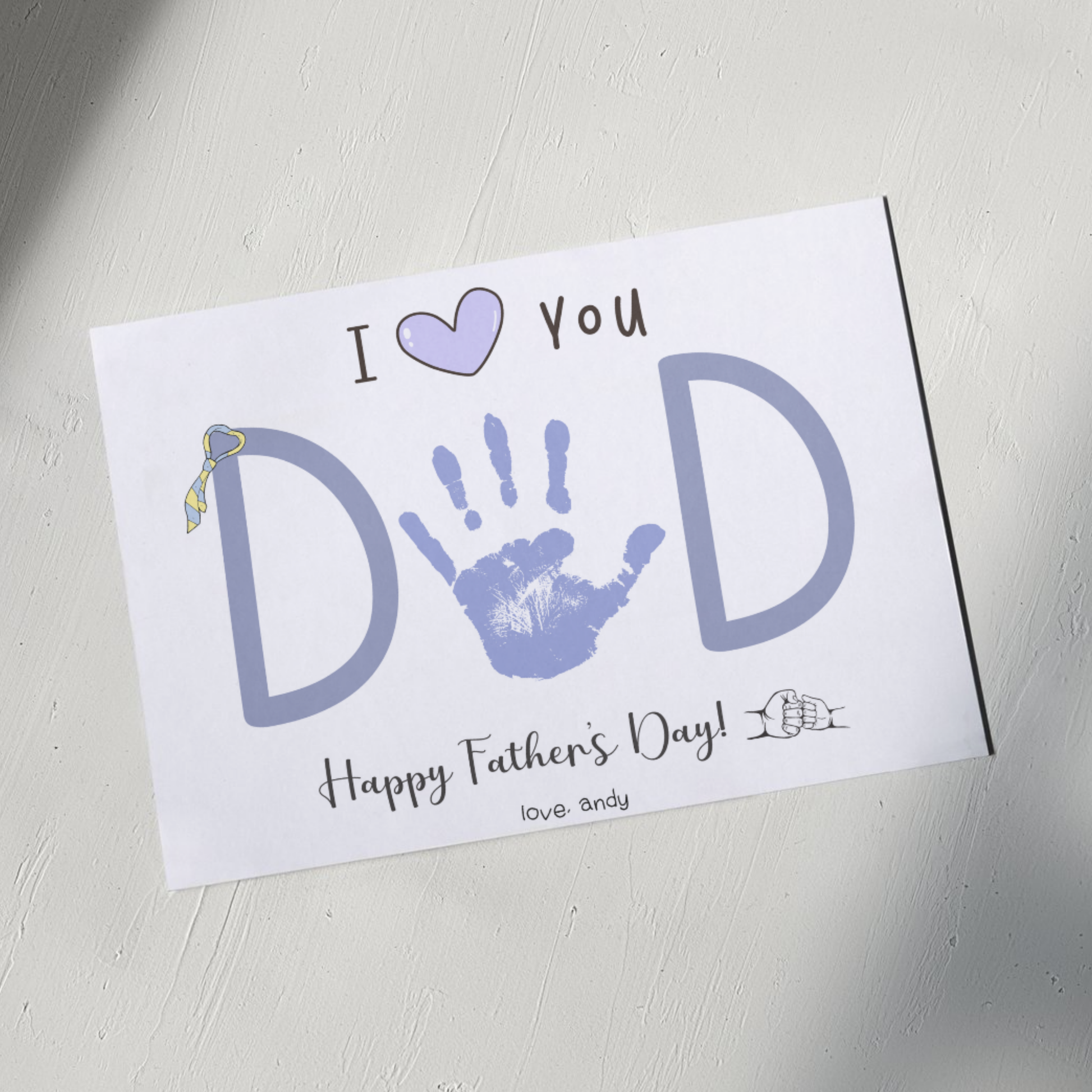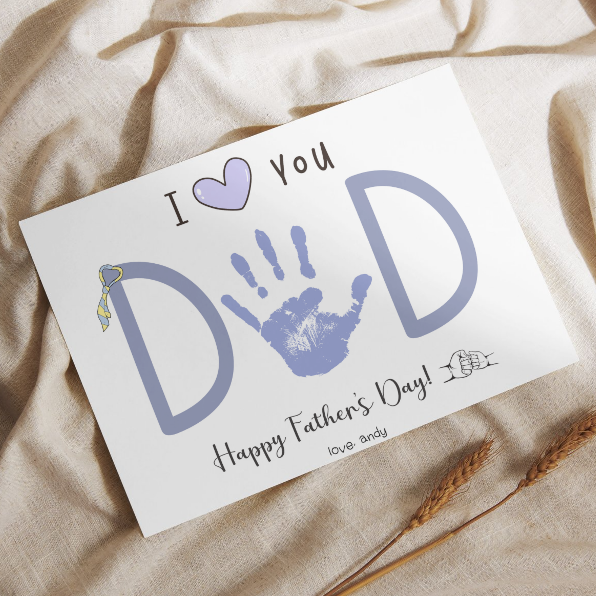 Fathers Day Handprint Craft Printable, DIY Art Gift for Dad from Baby Toddler Kids