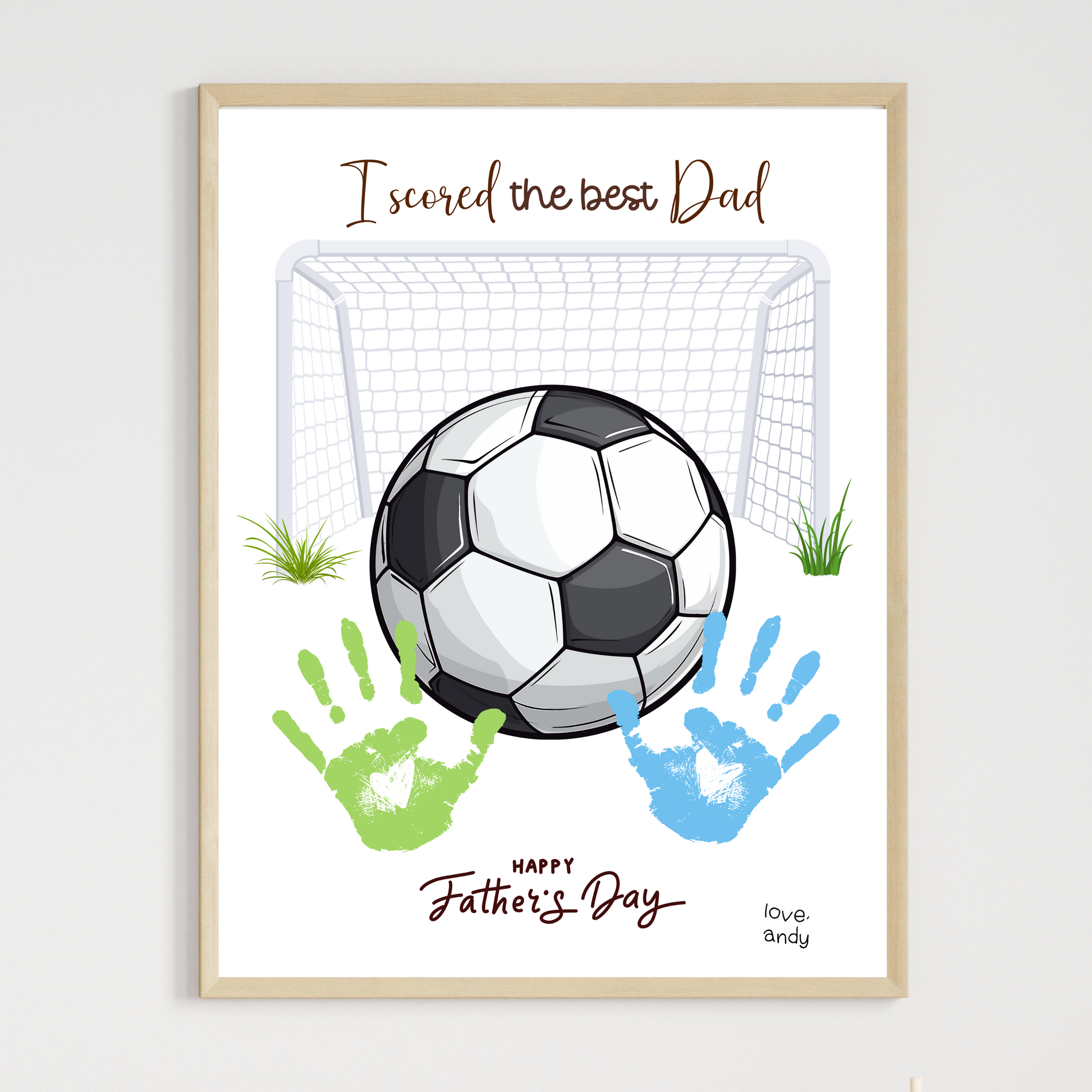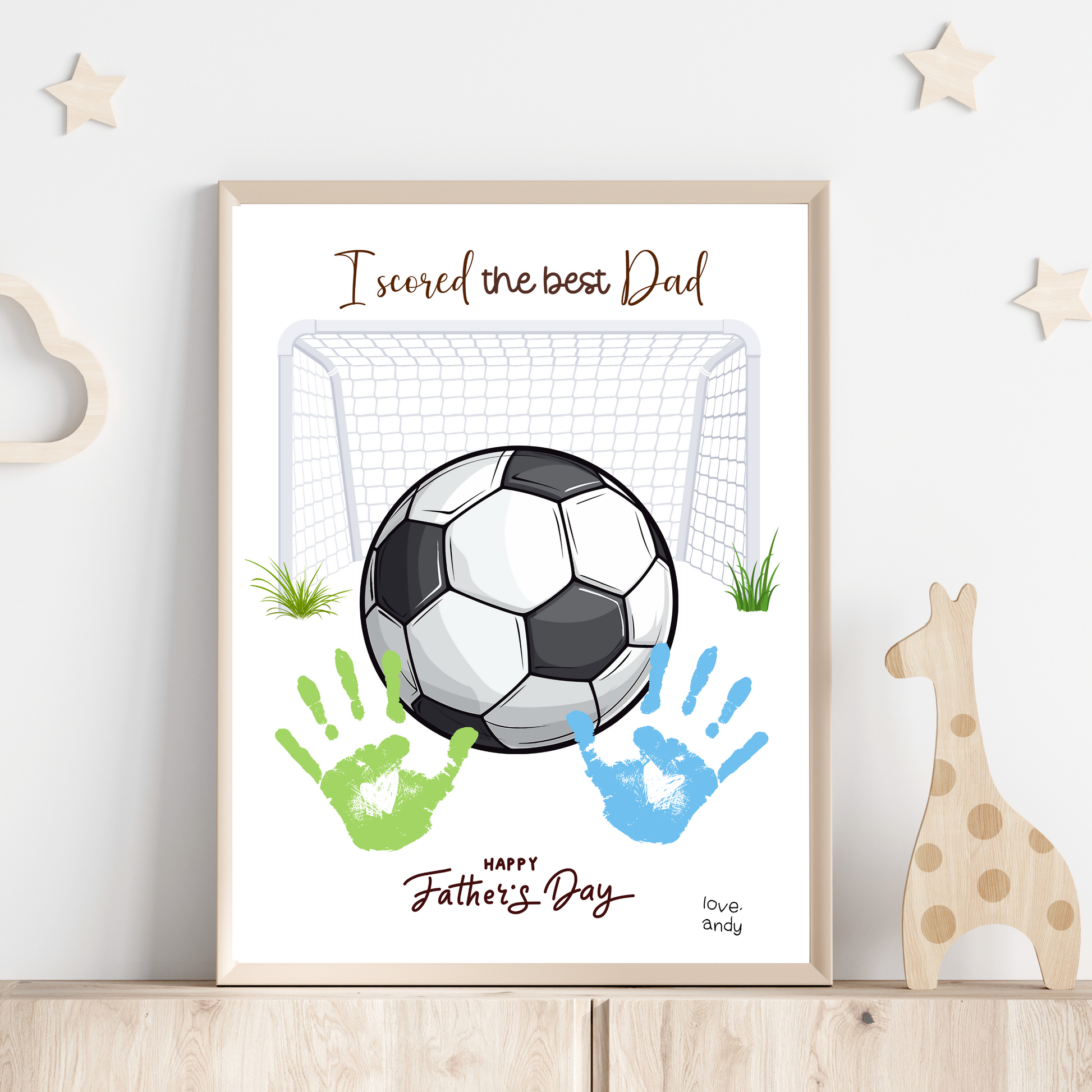 Father's Day Handprint Craft Printable, DIY Soccer Art Gift for Dad from Kids