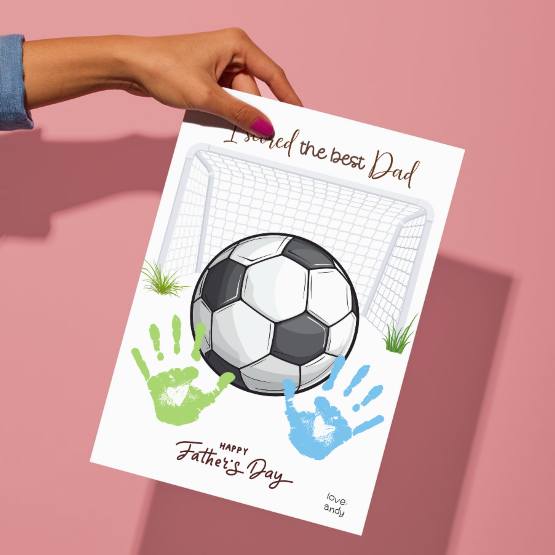 Father’s Day handprint craft for dad, soccer art printable for dad, sports-themed dad gift from toddler, birthday craft for dad from kids, preschool Father’s Day gift idea, DIY keepsake for soccer dad, Father’s Day footprint art, printable card for dad, custom baby handprint gift, personalized Father’s Day activity template