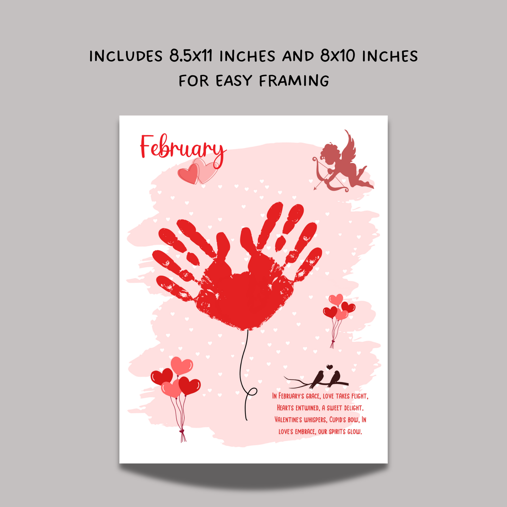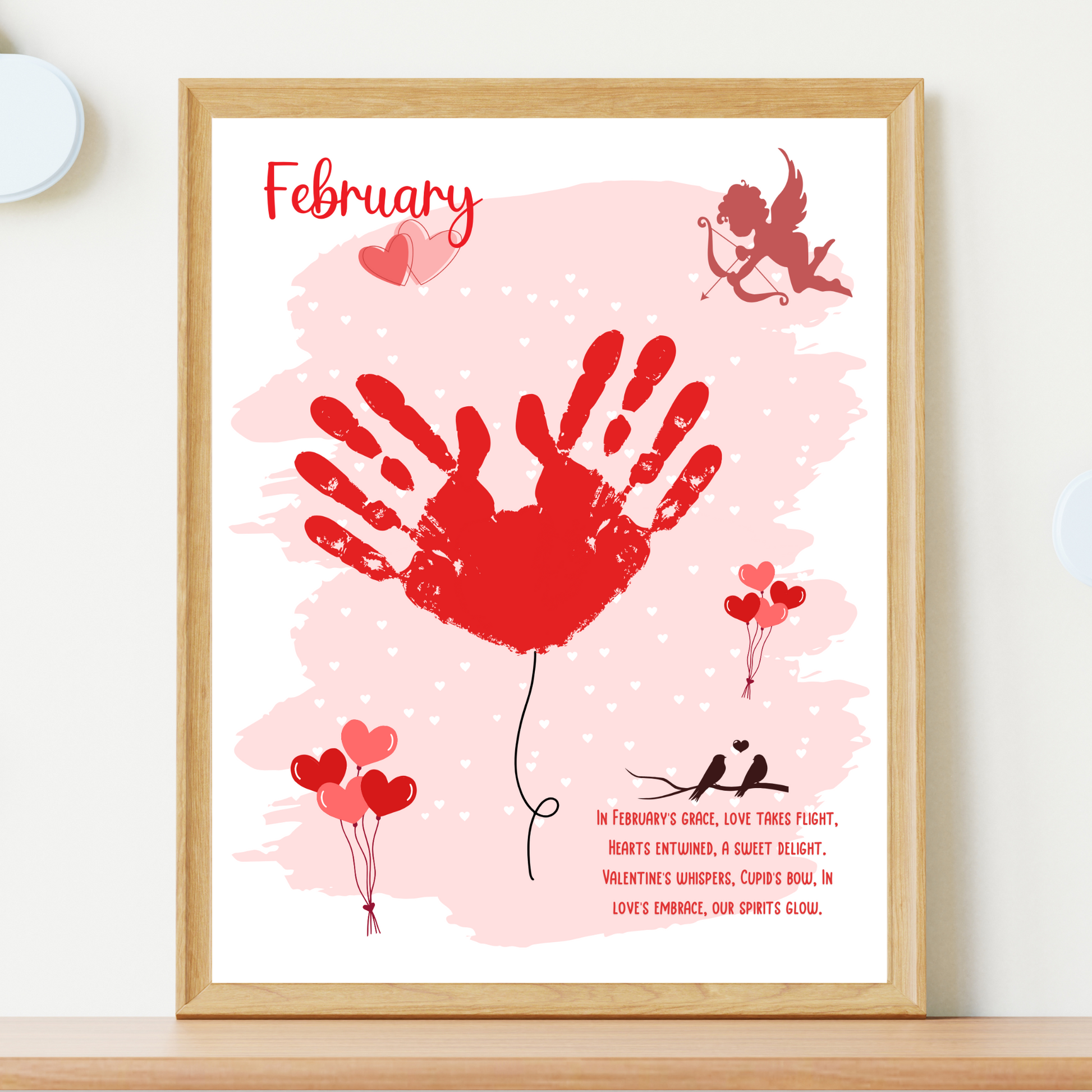 Celebrate your child’s growth and creativity with this adorable February handprint and footprint craft printable! Perfect for babies, toddlers, preschool, pre-k and kindergarten kids, this easy-to-use activity captures the magic of childhood while keeping little ones entertained. A wonderful keepsake to treasure forever, this craft is ideal for framing, gifting, or displaying at home or in the office. Just download, print, apply non-toxic washable paint to the child's hand/foot, and start creating memories! 💖
